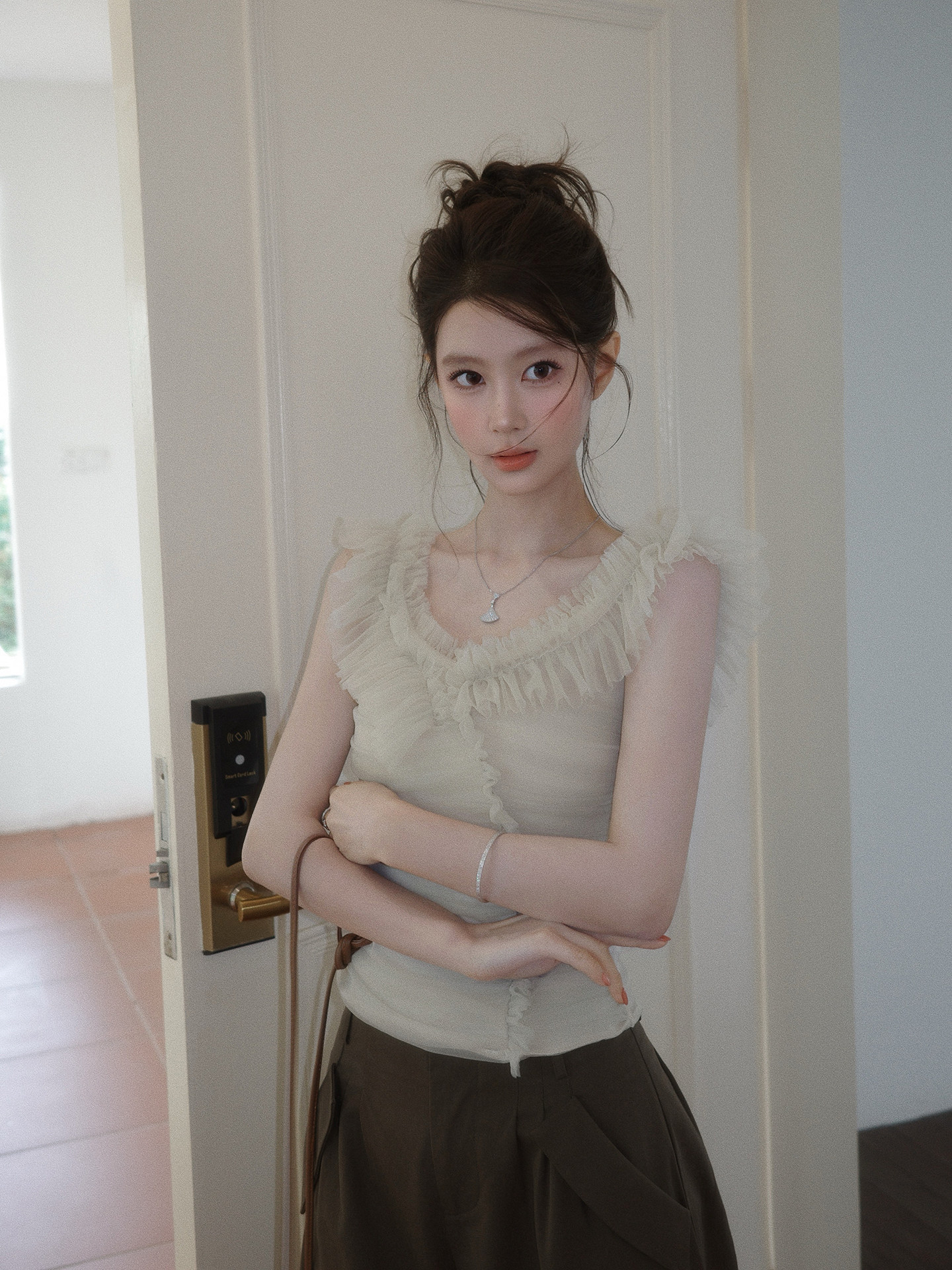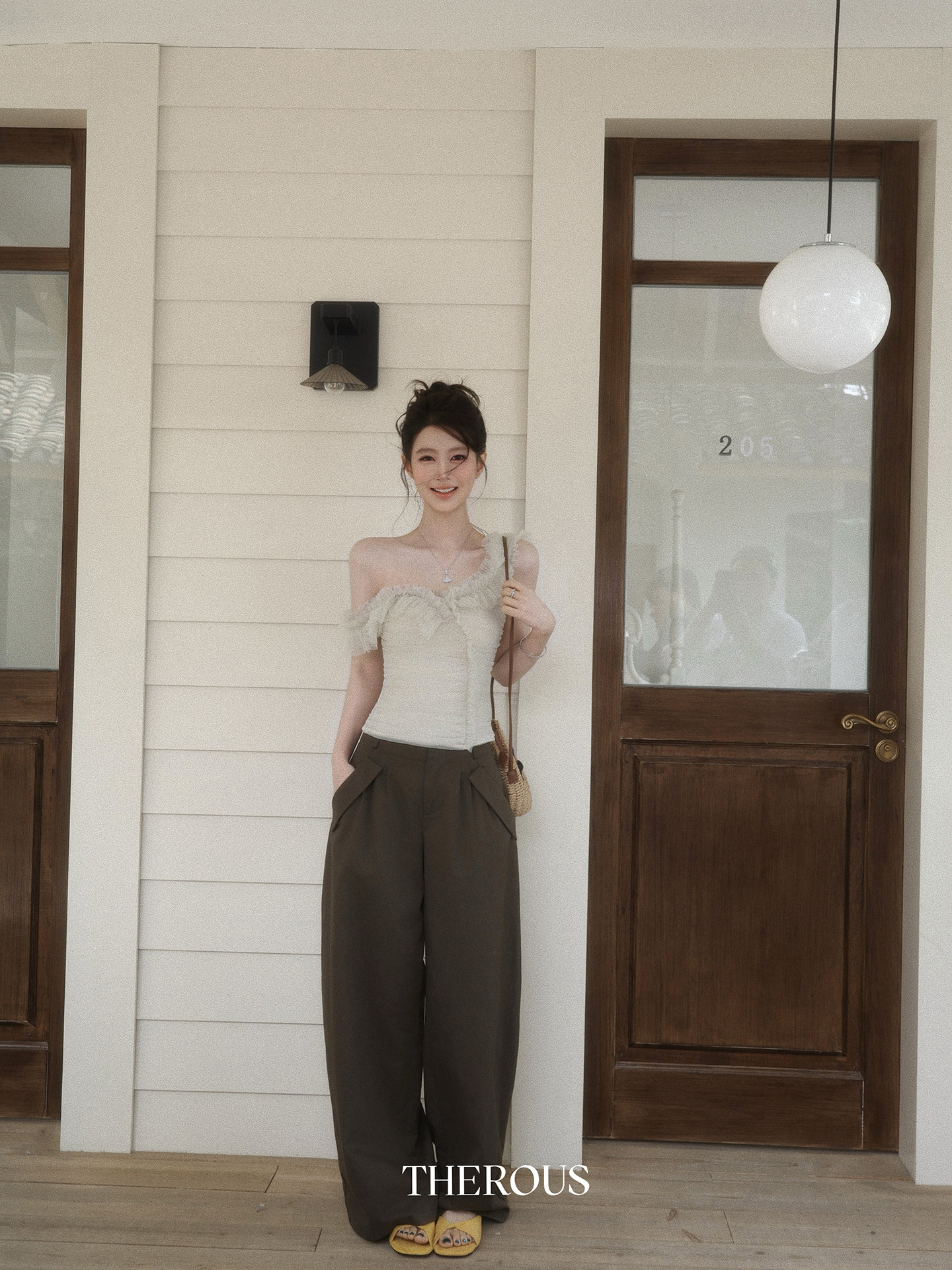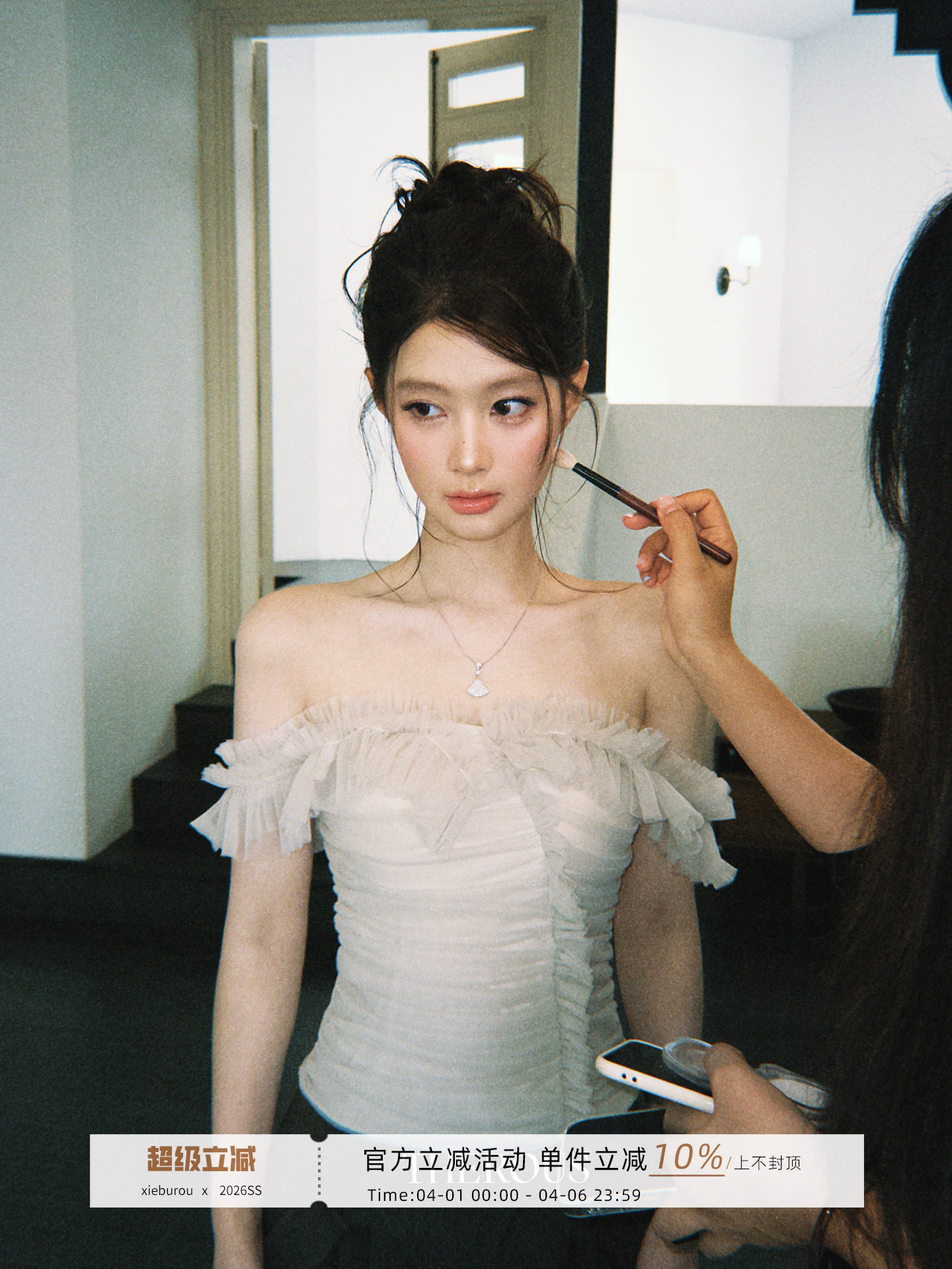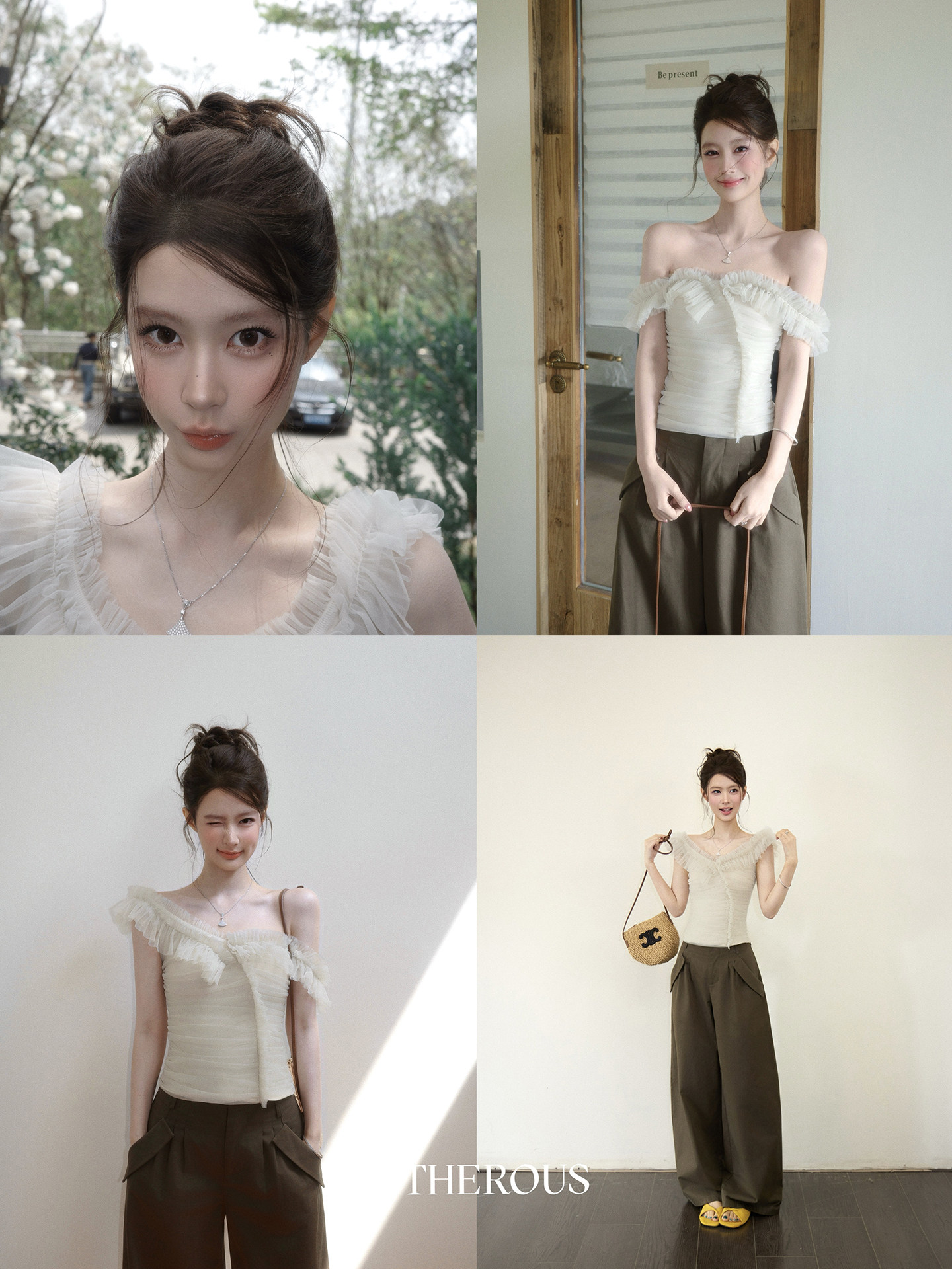 밤나무 코코아 bankelili 천 새싹 뮤즈 라이 경기 서울 프랑스식 프릴 오프숄더 맨위 여성 봄 여름