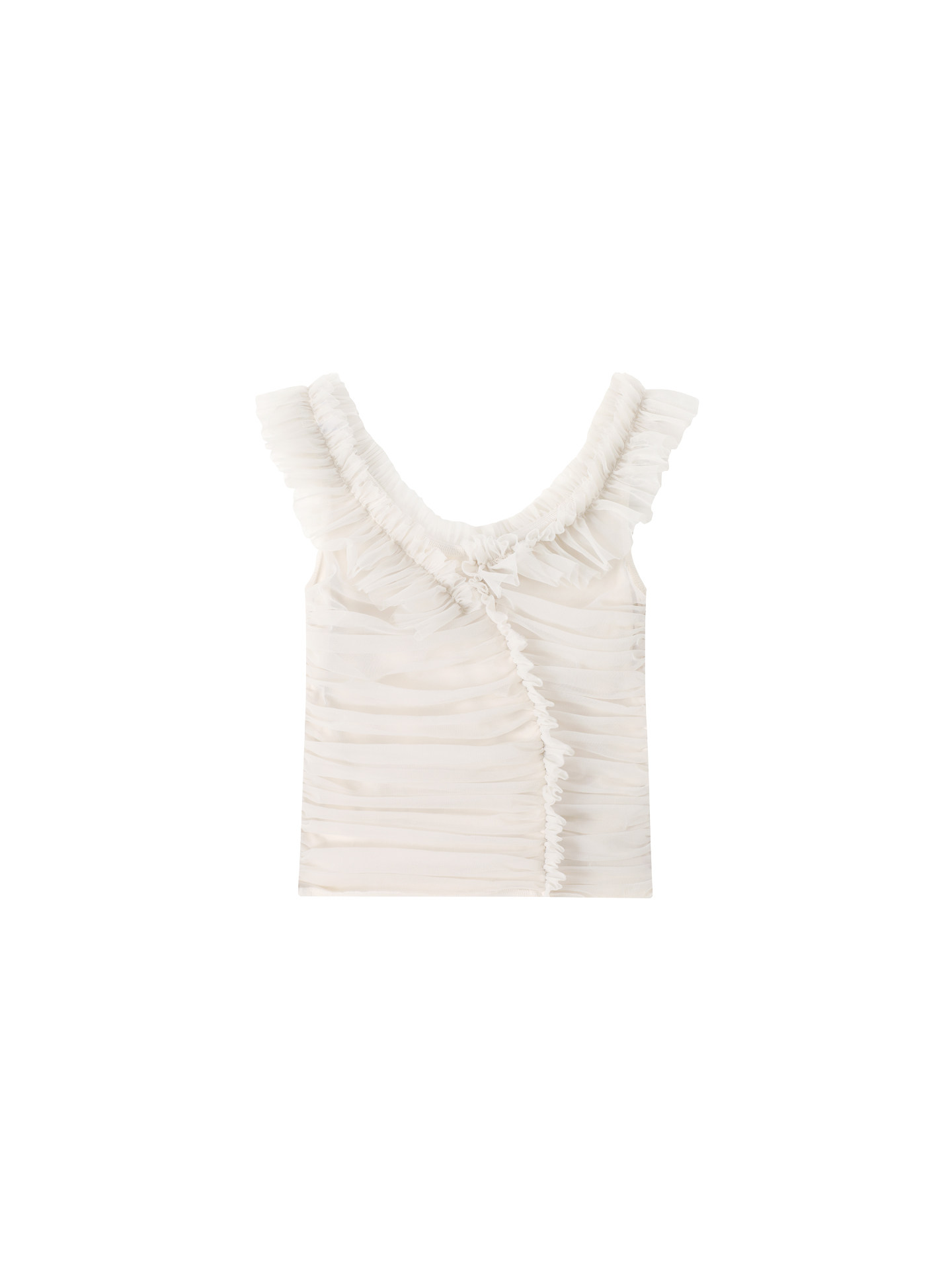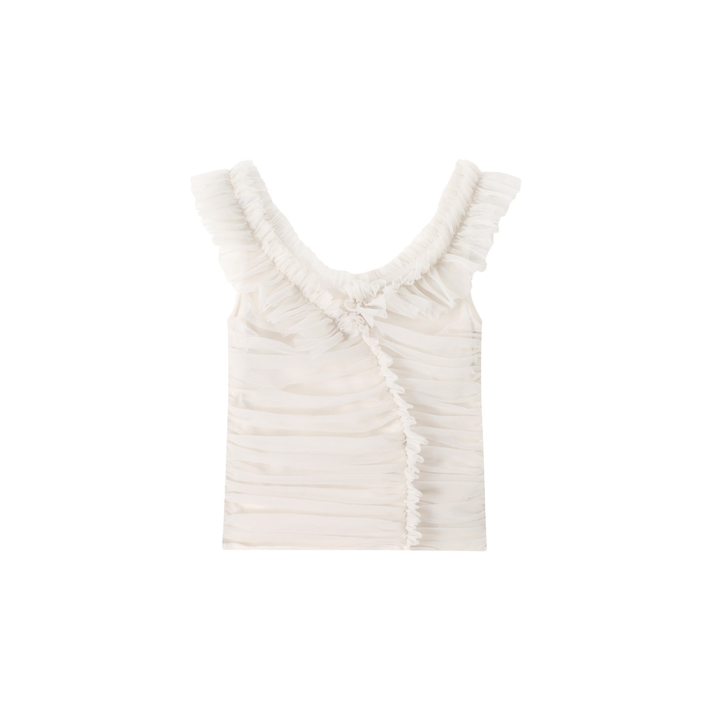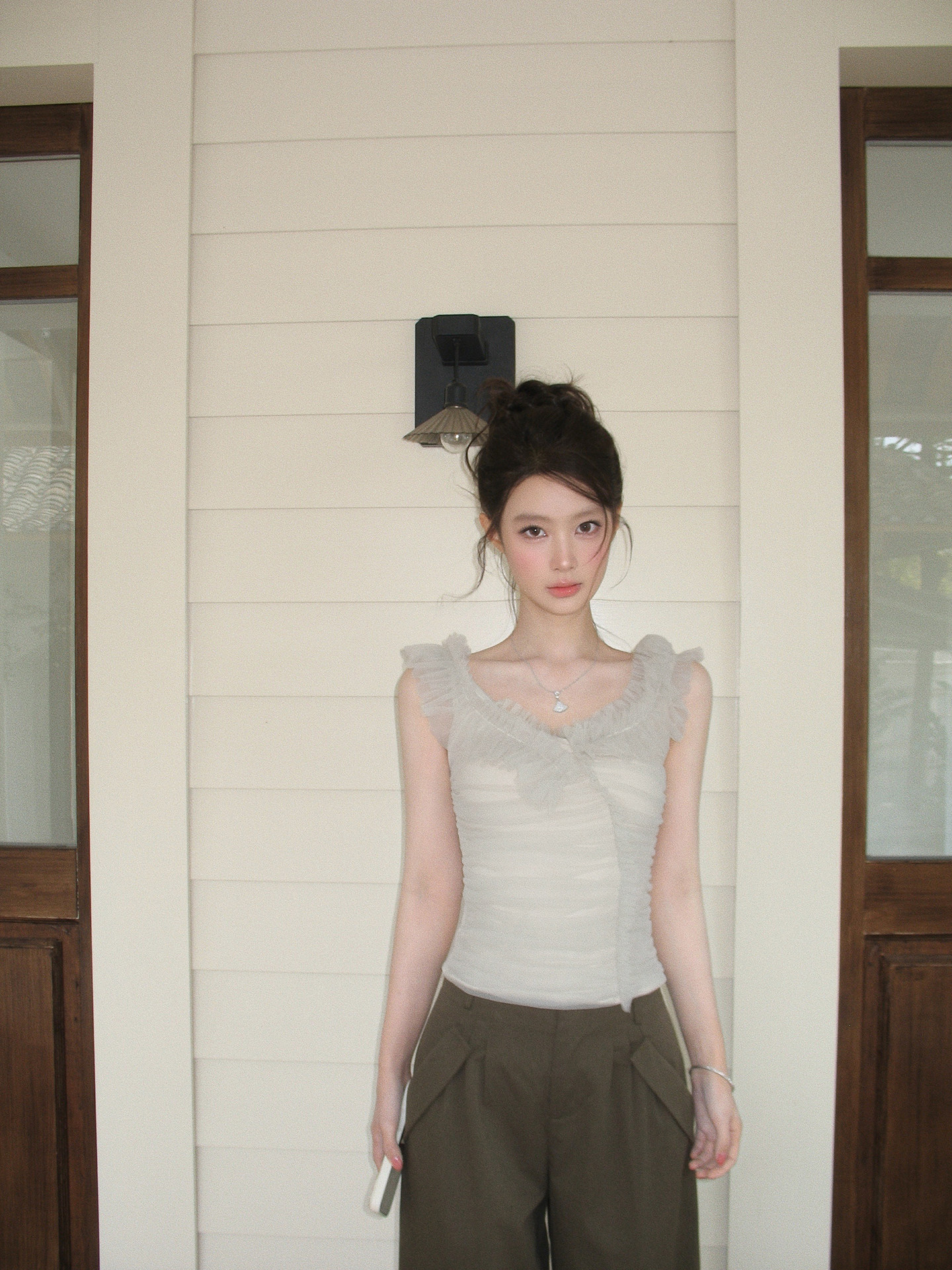 화이트 고급 센스 비틀림 민소매 티셔츠 여성 2026 여름 새로운 고유 한 차가운 센스 억압 박테리아 세련된 반팔