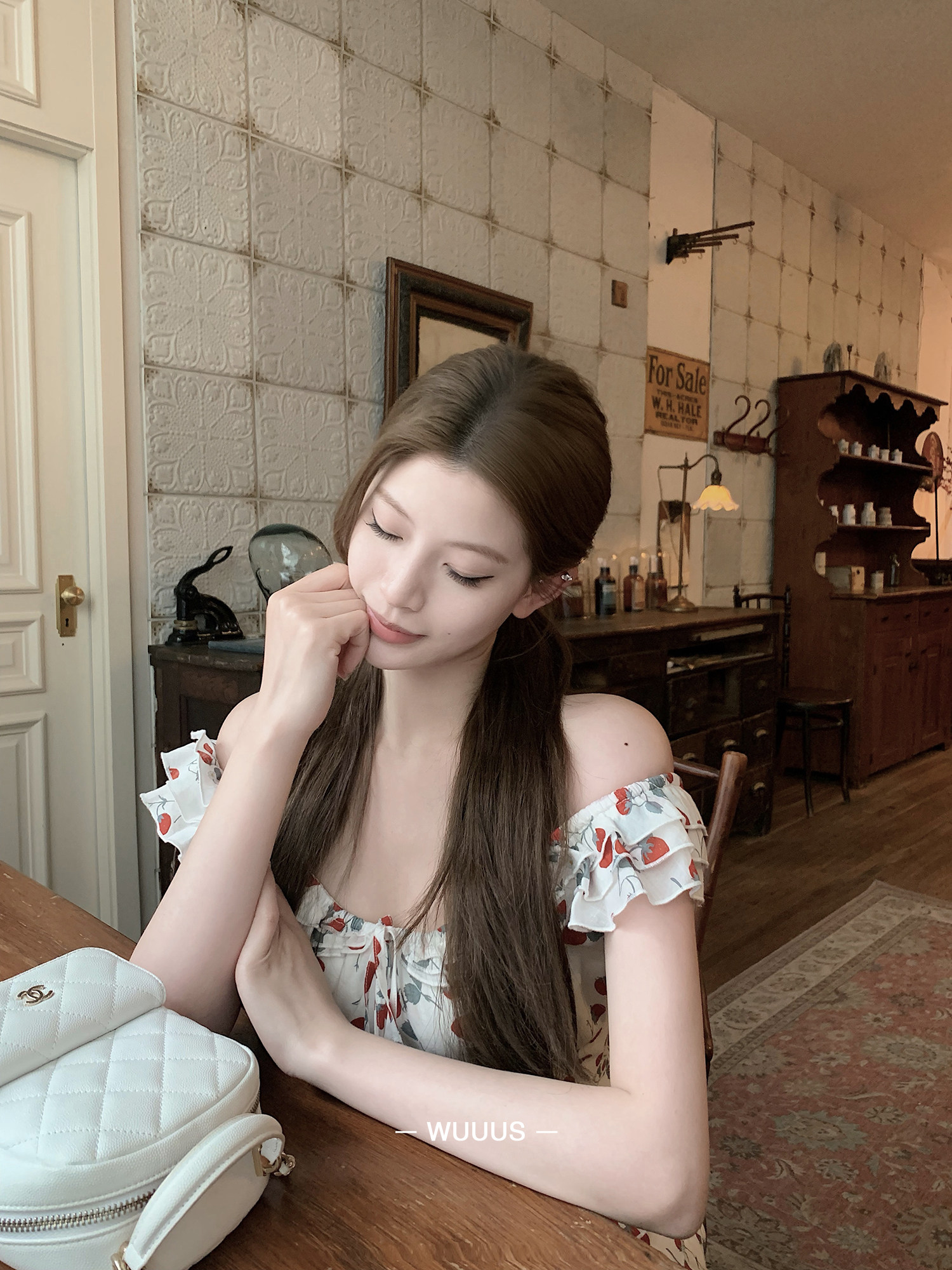 웨이 눈 같은 단락 꽃 오프숄더 비스듬한 어깨 의류 행침 목 꽃밭 캐미솔