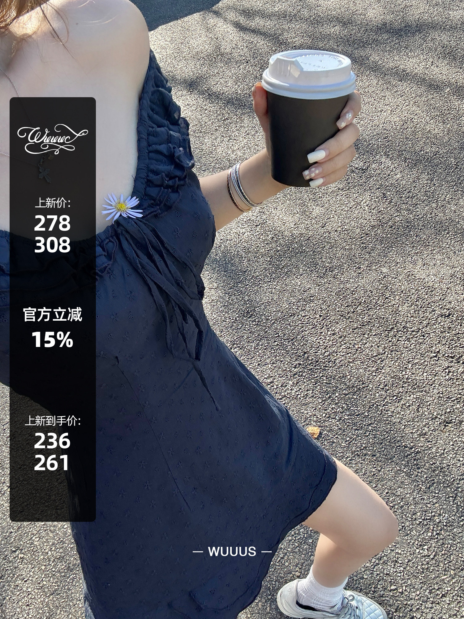 세븐 작은 세븐 sicily 黛 색상 암퇘지 측면 새로운 중식 레이스 조각 여성 드레스 여름 품격 고급 센스