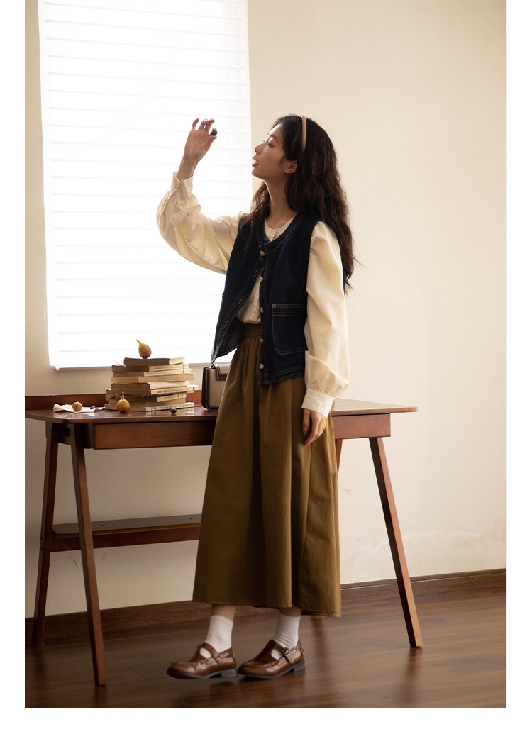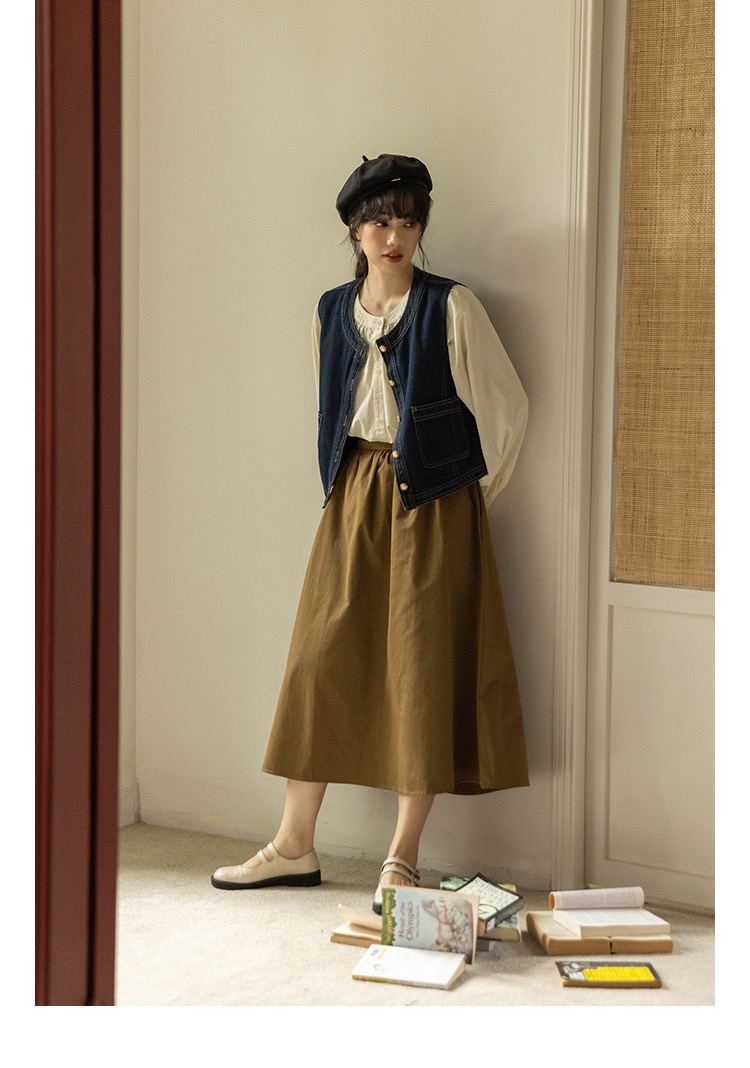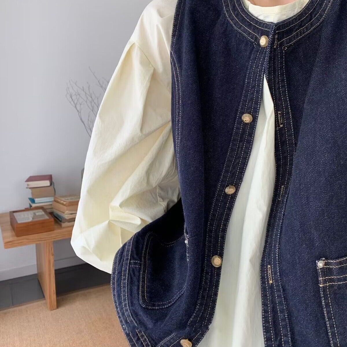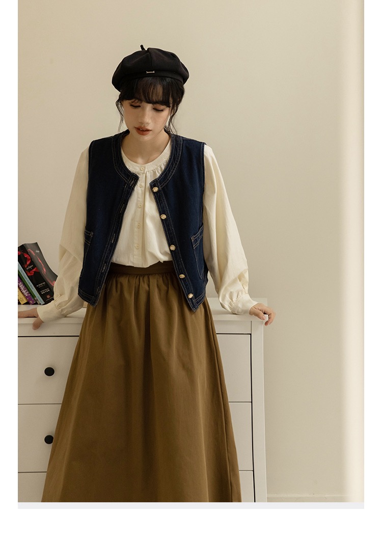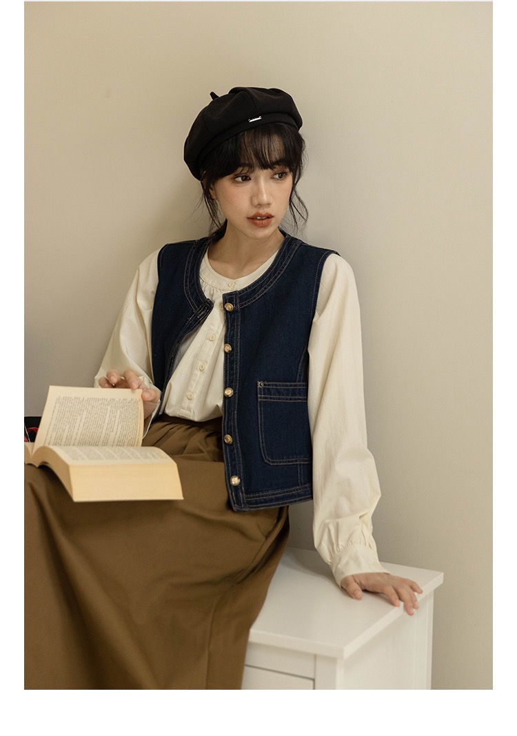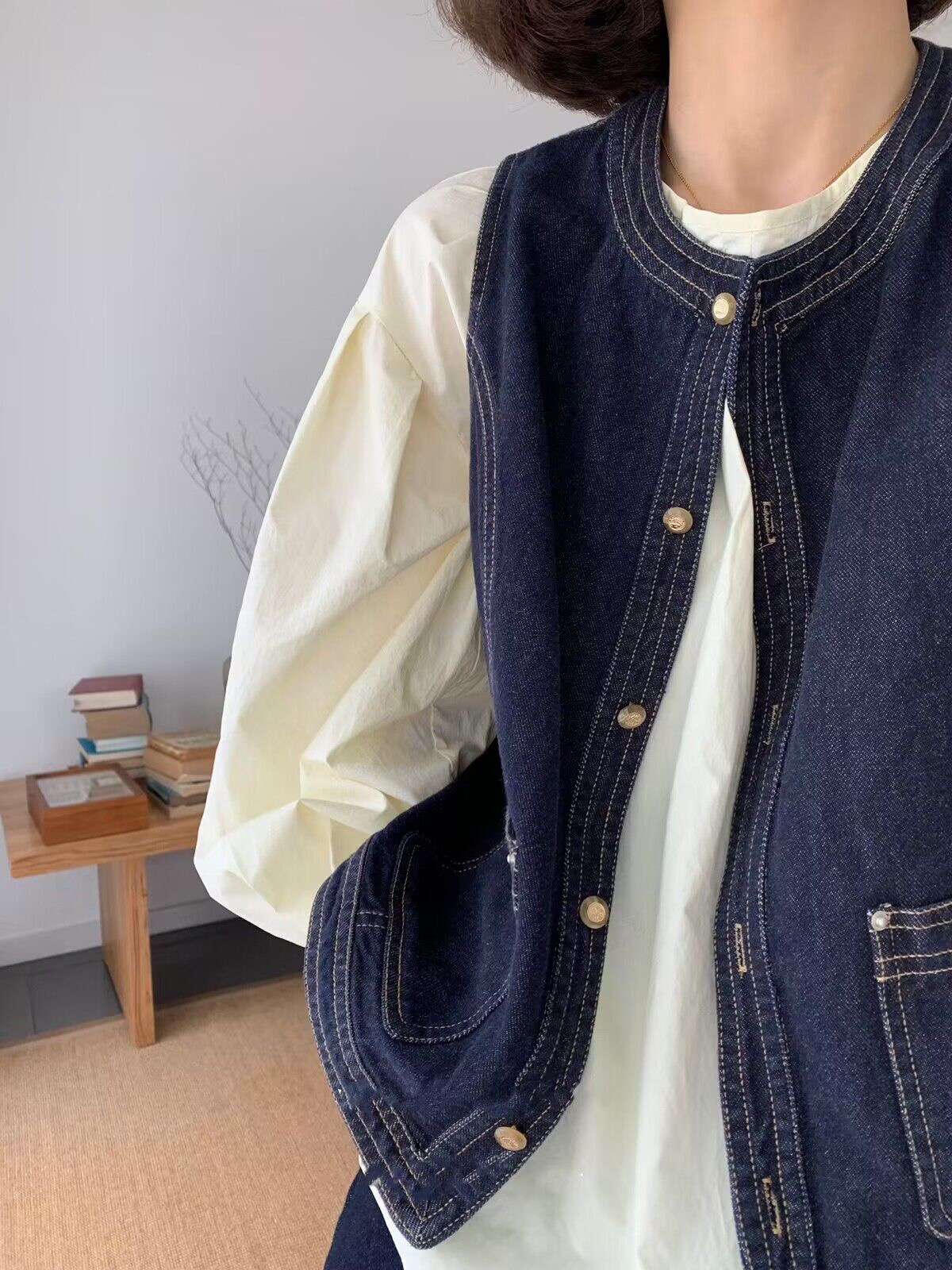 일본식 외부 가져 가라. 스택 착용 셔츠 데님 베스트 조끼 여성 봄 가을 2026 새로운 작은 키 레트로 어깨 조끼