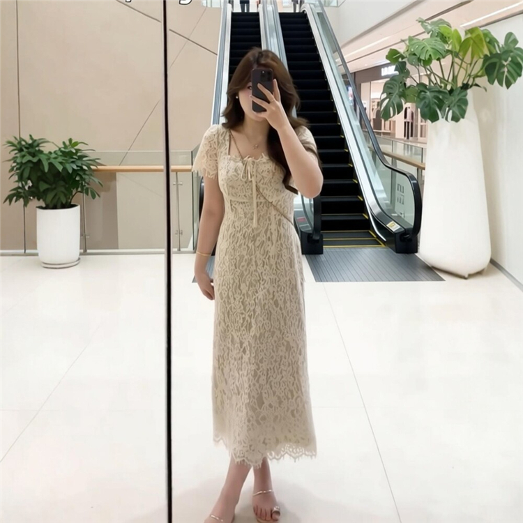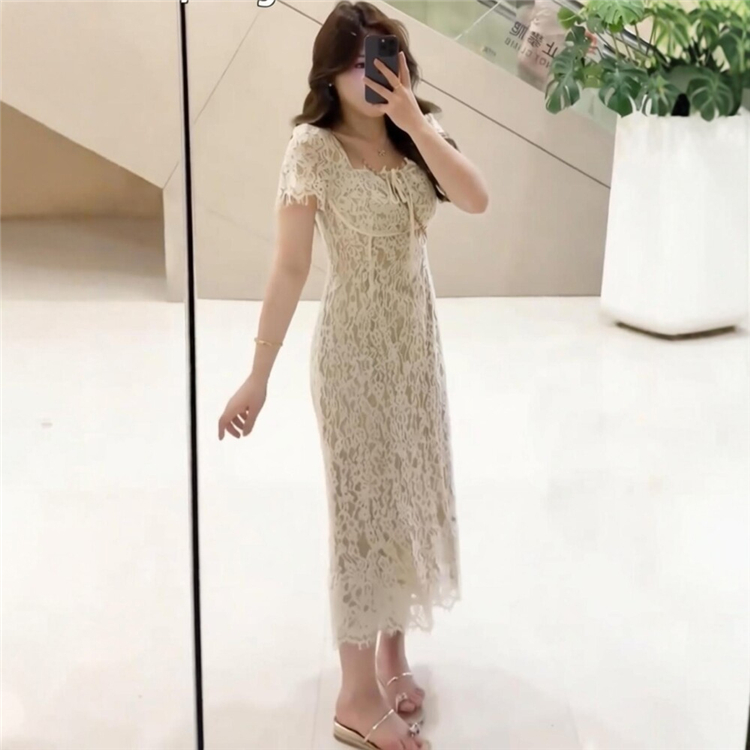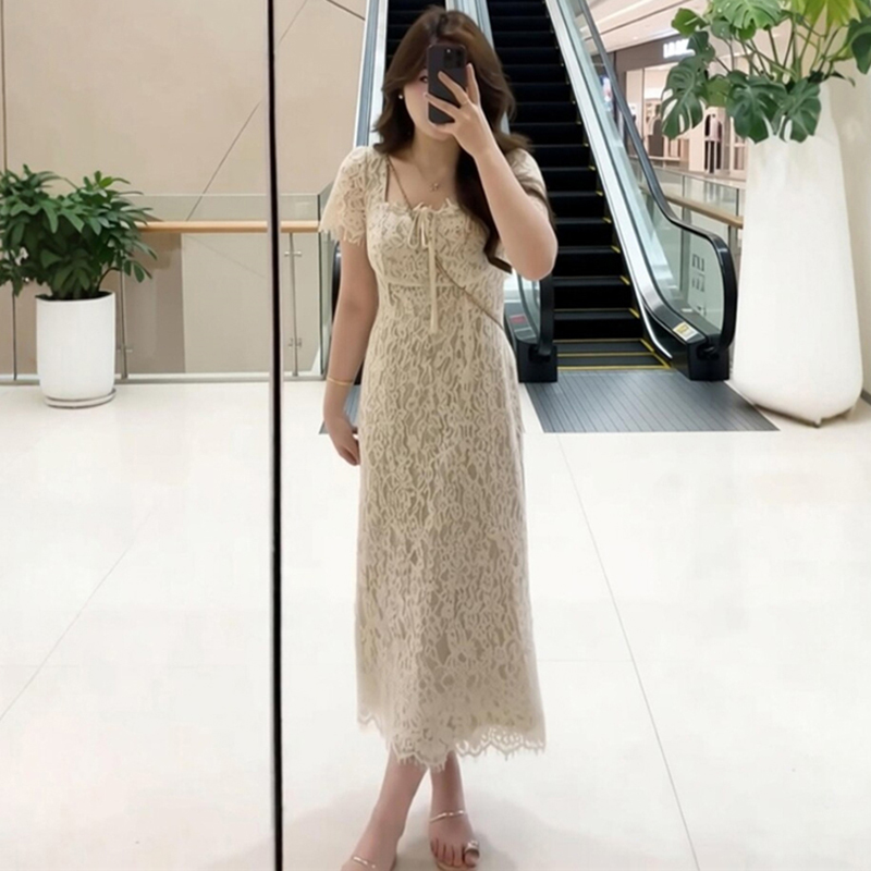 빅 사이즈 여성 의류 지방 mm 작은 대중 디자인 센스 레이스 질감 곡물 조끼 여성 드레스 여름 품격 슬림해 보이는 롱 스커트