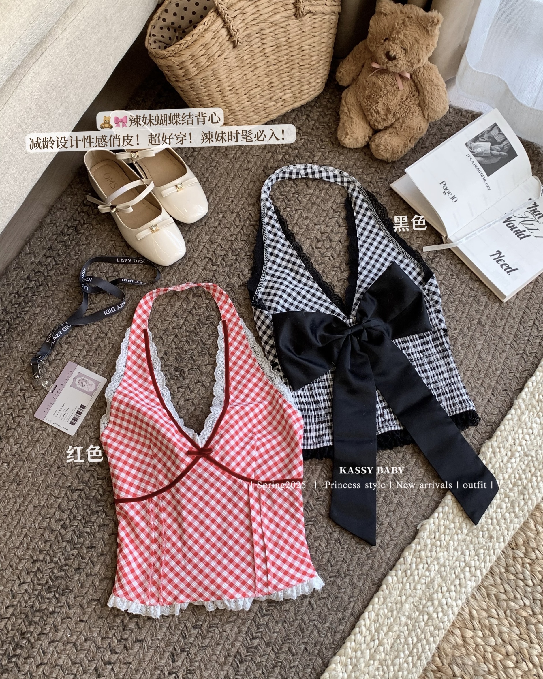 실사 레트로 품격 단색 리본 민소매 조끼 여성 레오파드 무늬 반신 스커트 미니 스커트 투피스 세트