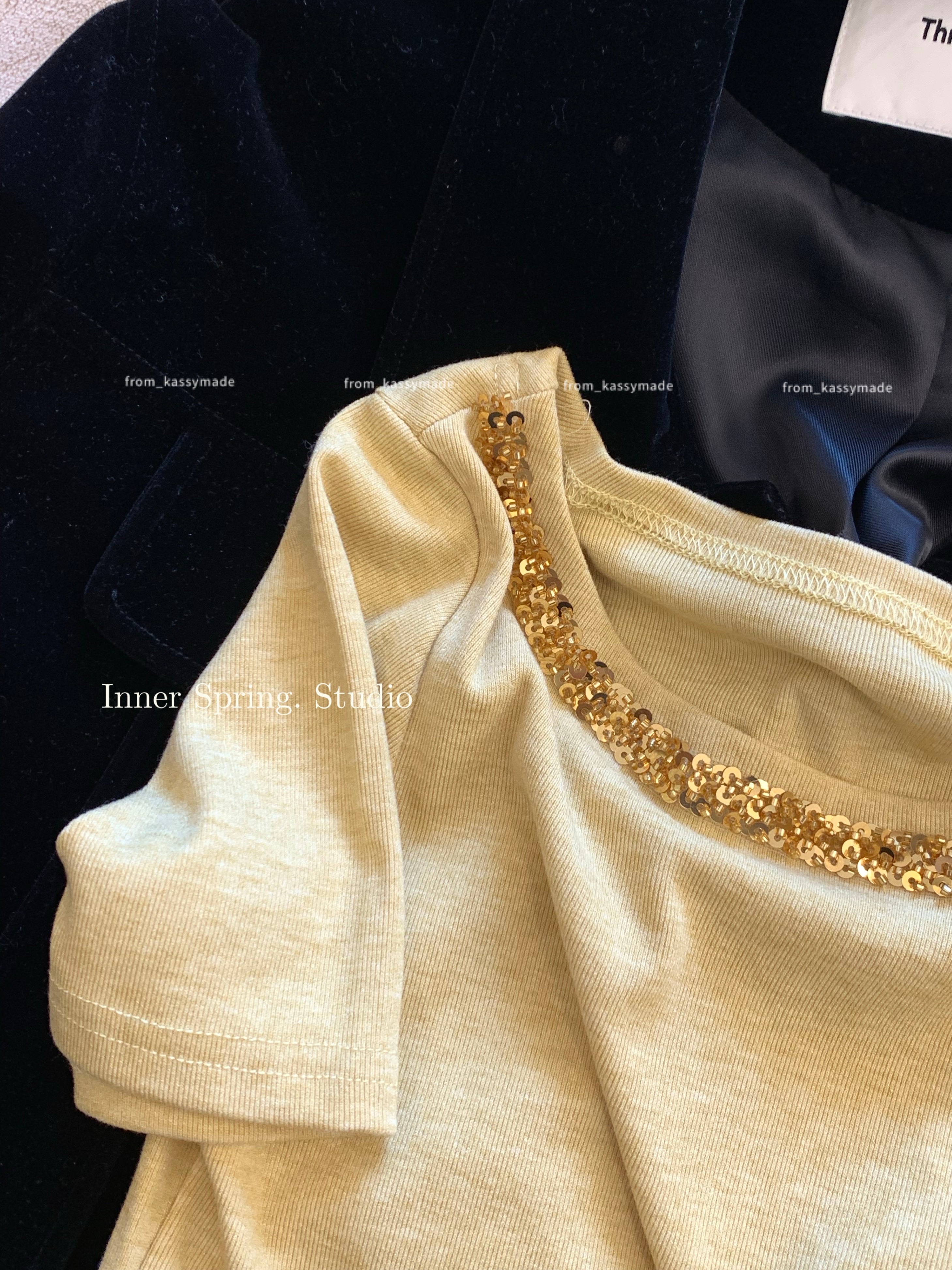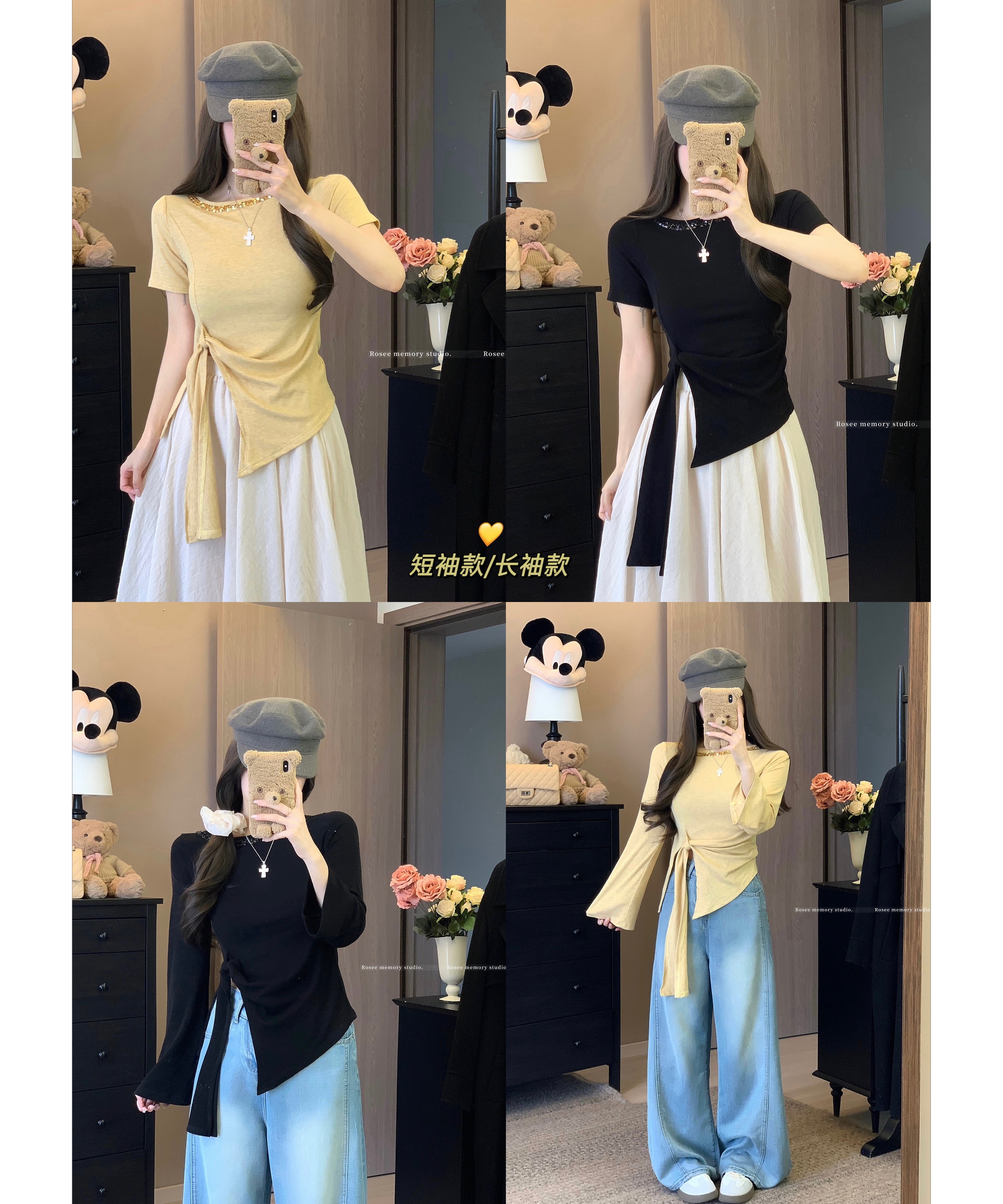 실사 정가 몸매 가꾸기 슬림해 보이는 다용도 기초 섹션 주름 맨위 섹시함 V넥 반팔 티셔츠