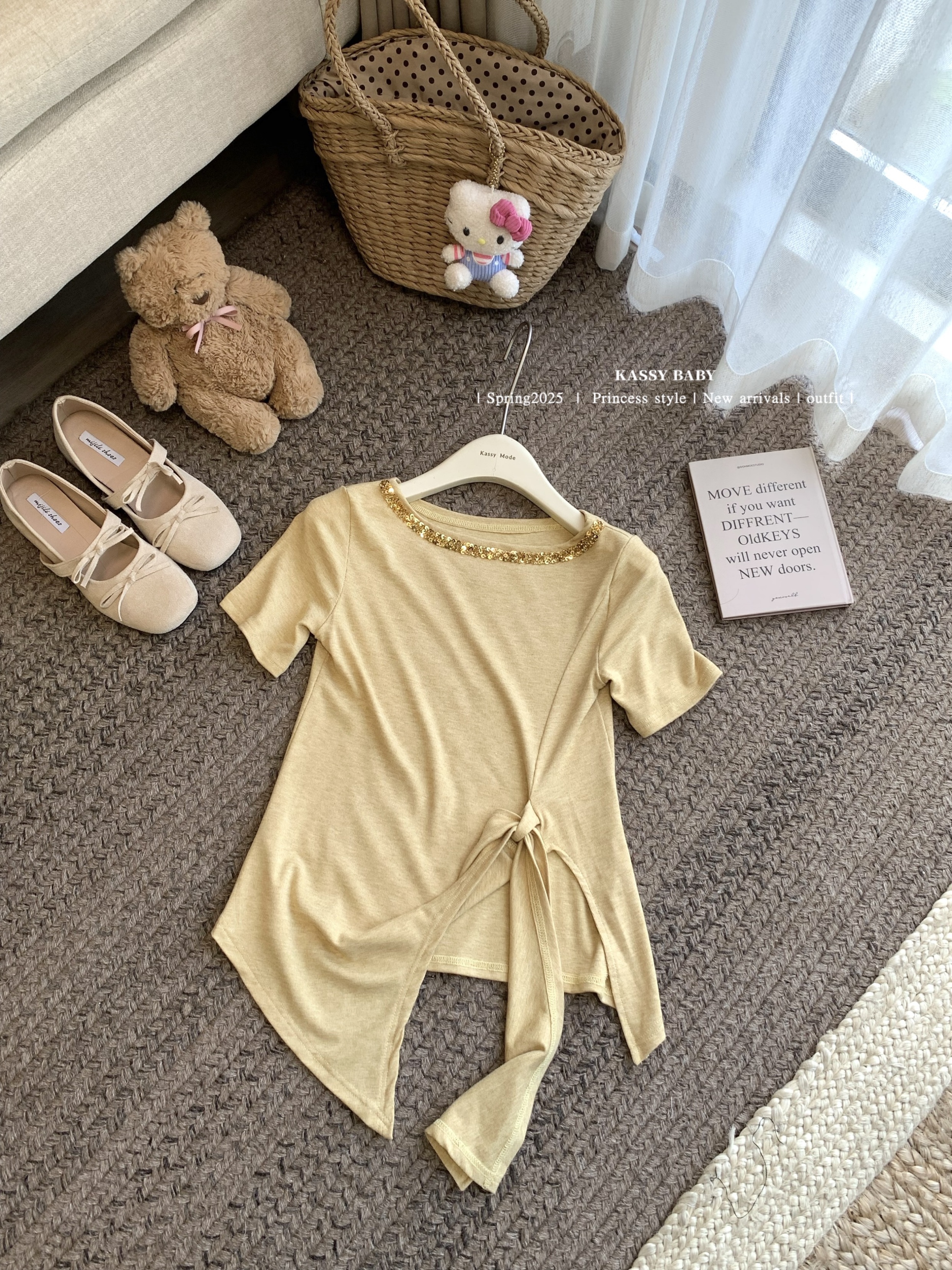 실사 여름 새로운 개성 핫걸 알파벳 핫픽스 스트랩 비스듬한 어깨 디자인 반팔 티셔츠 여성