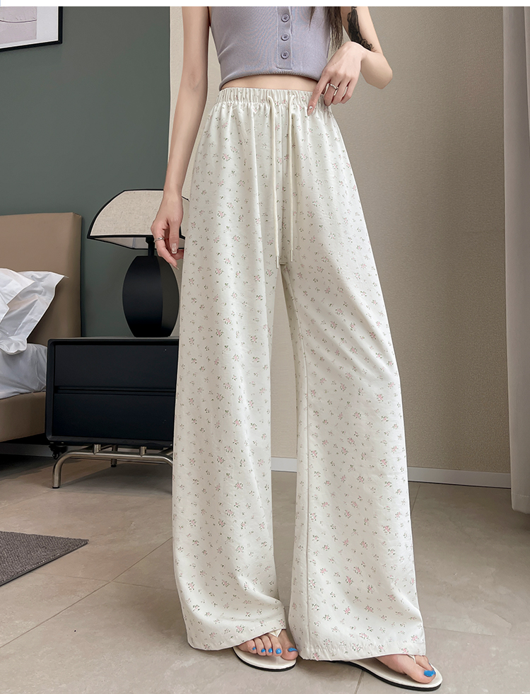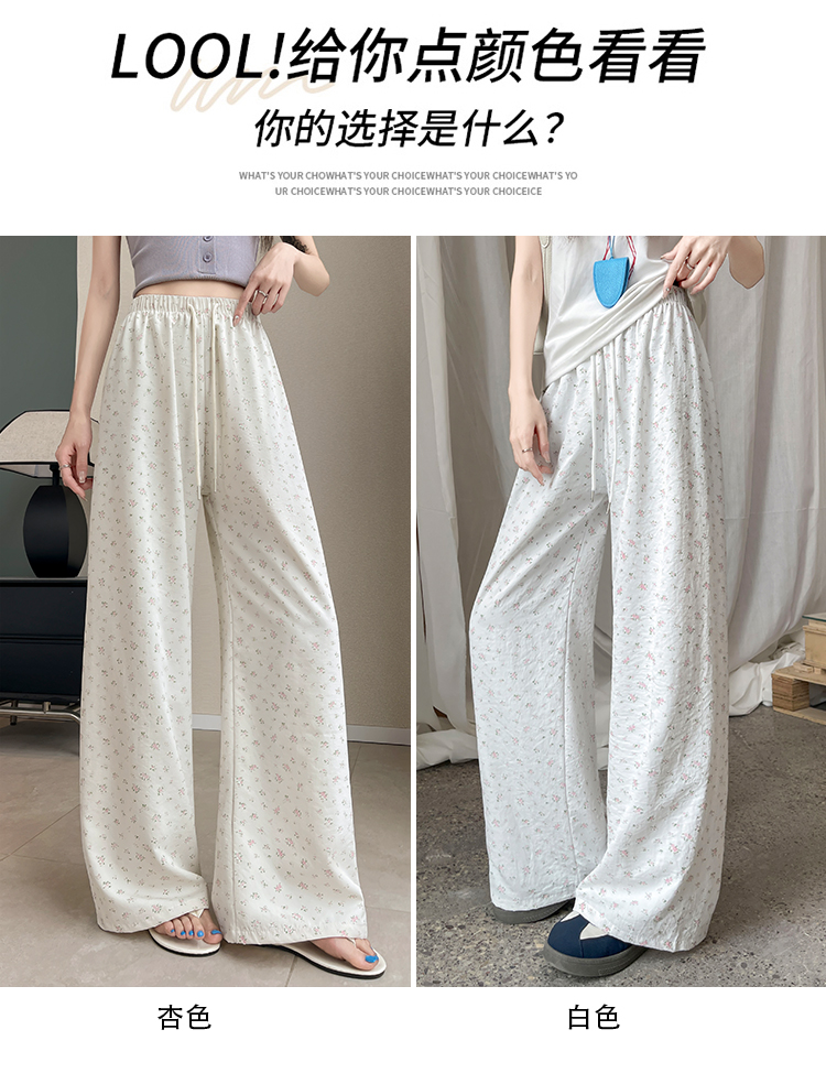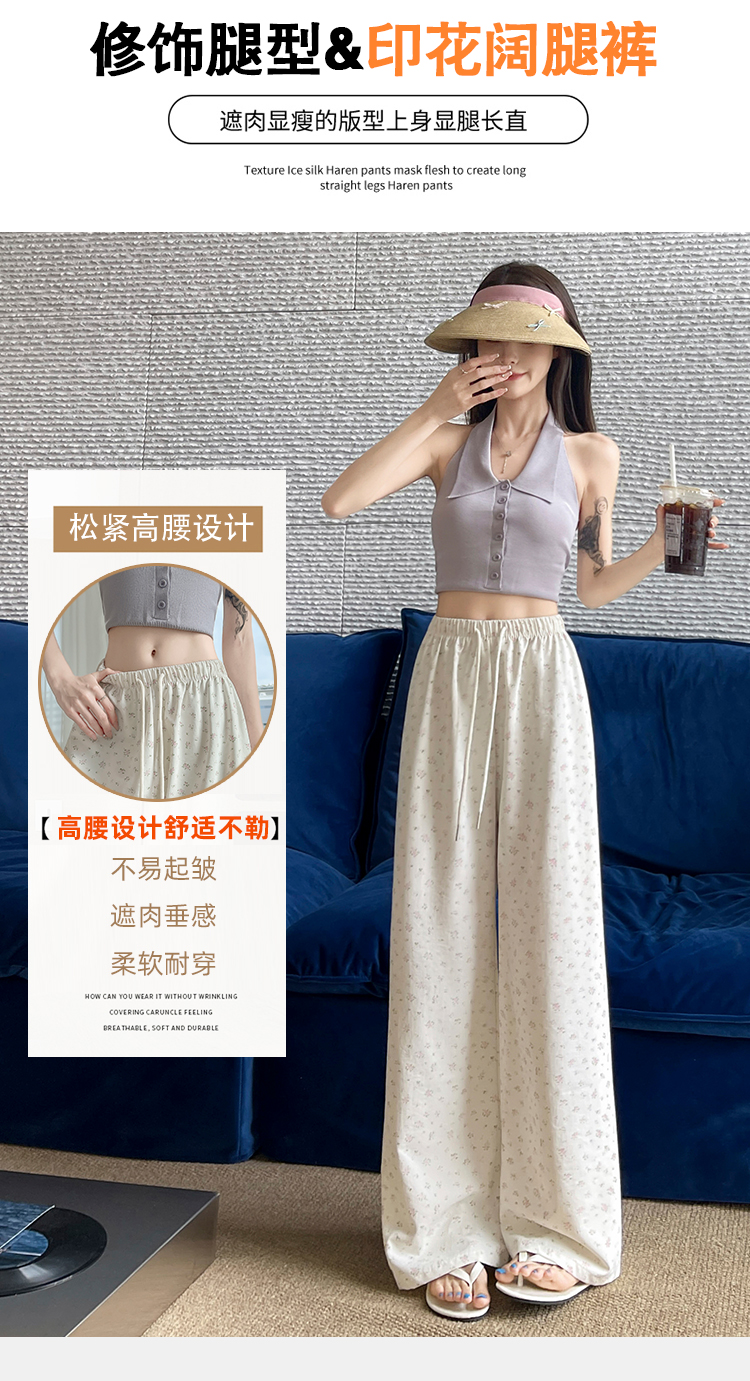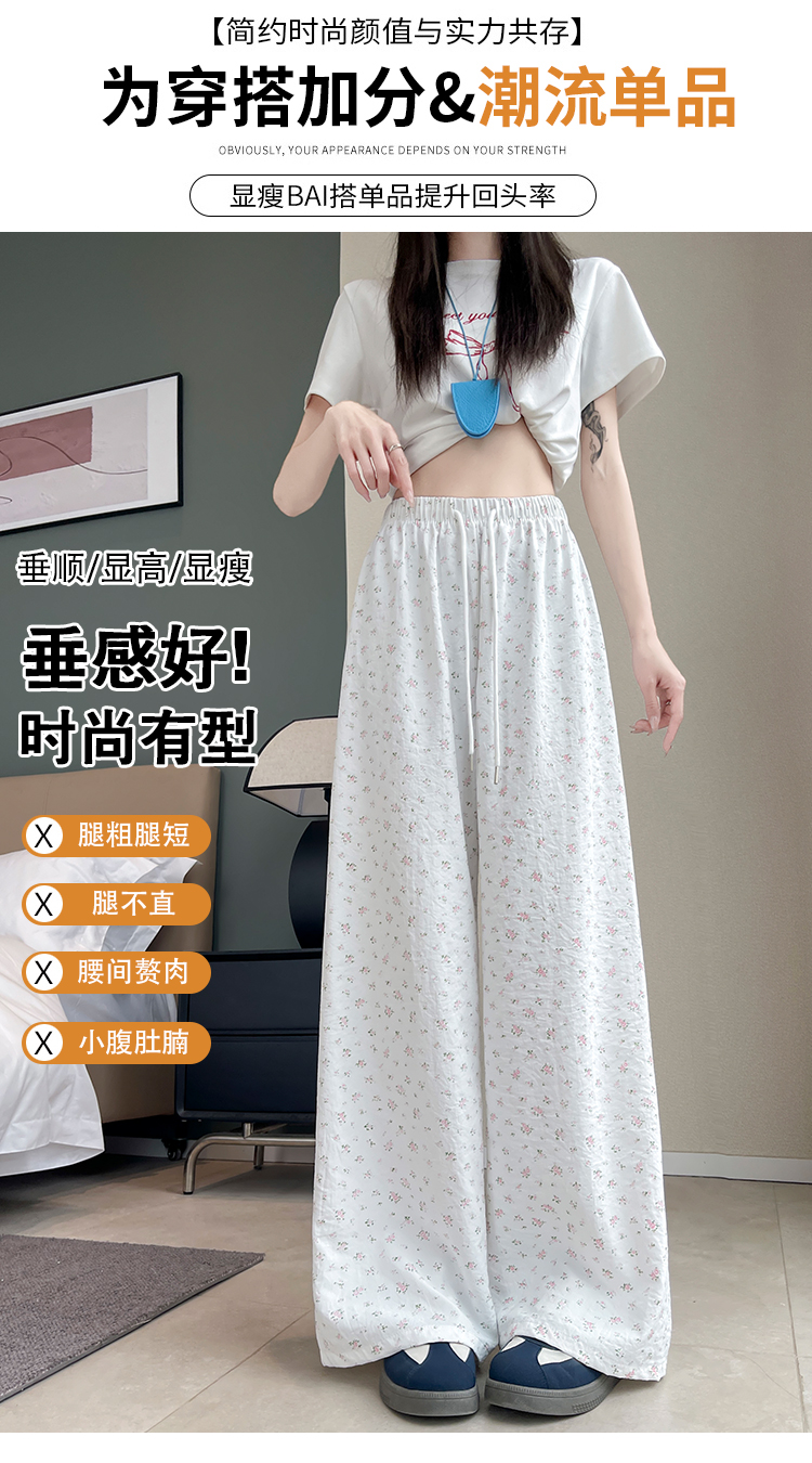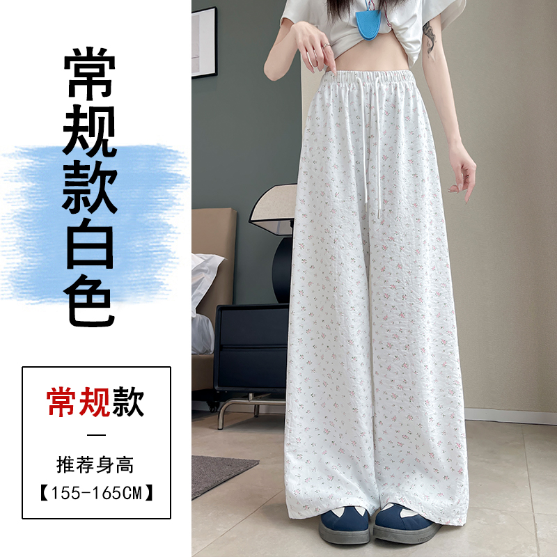 얼음 실크 아세트산 캐주얼 바지 여성 2026 여름 새로운 프린트 와이드 레그 팬츠 오래된 돈 바람 차가운 굴곡 벽오동 바지