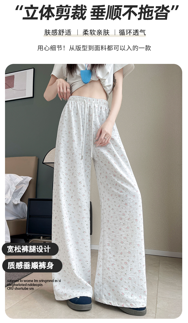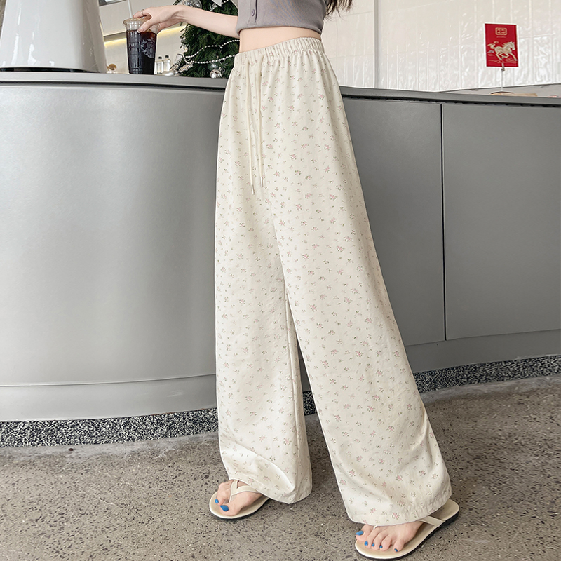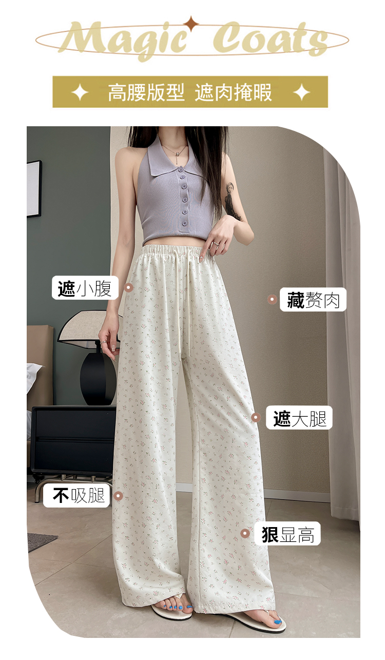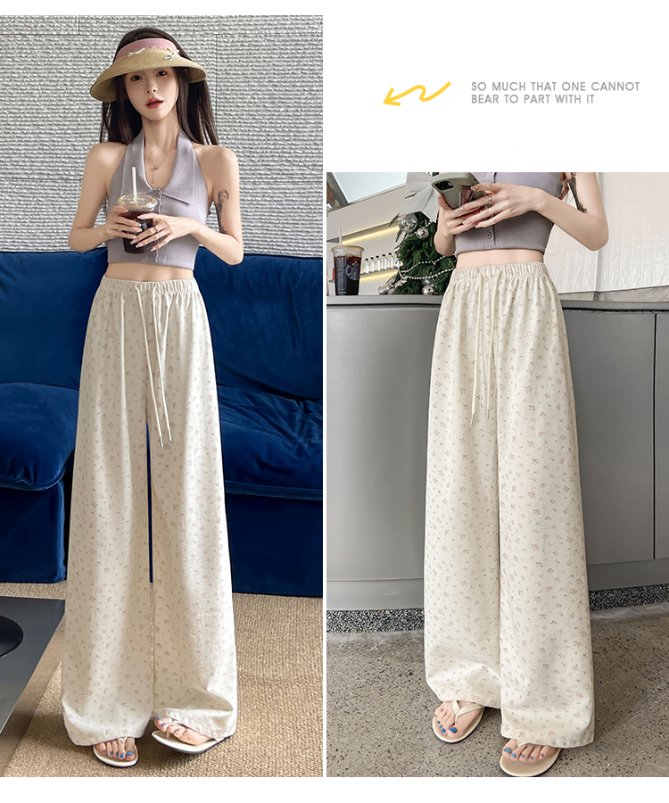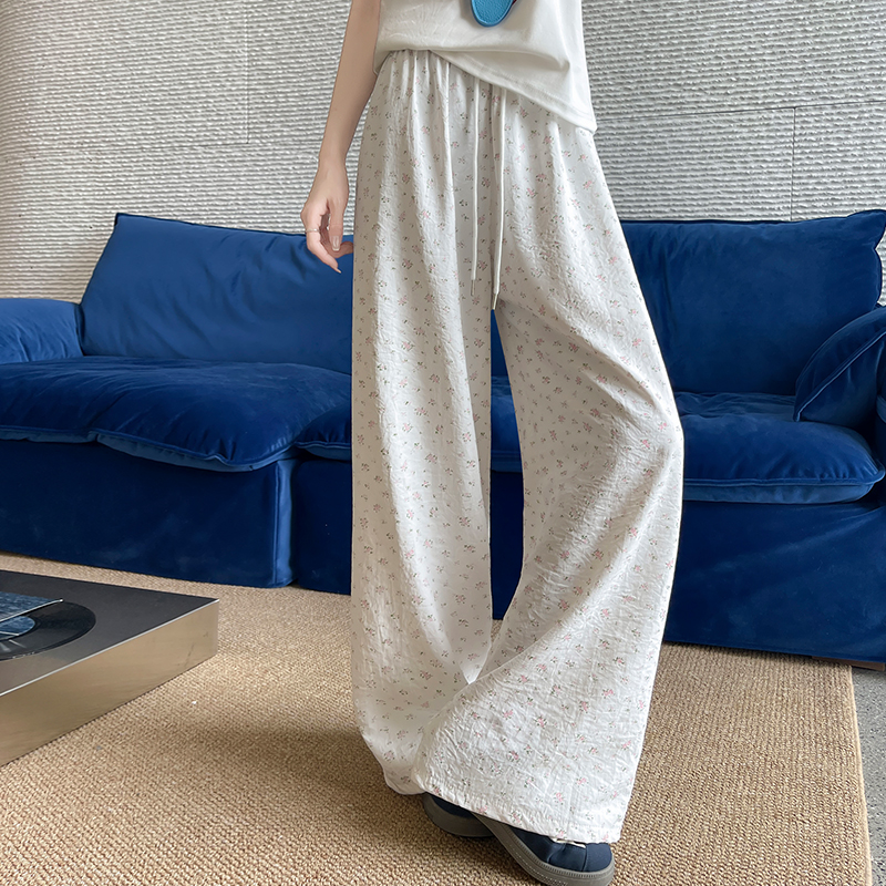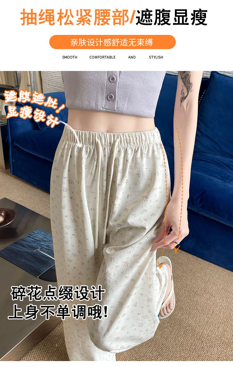 얼음 실크 아세트산 캐주얼 바지 여성 2026 여름 새로운 프린트 와이드 레그 팬츠 오래된 돈 바람 차가운 굴곡 벽오동 바지