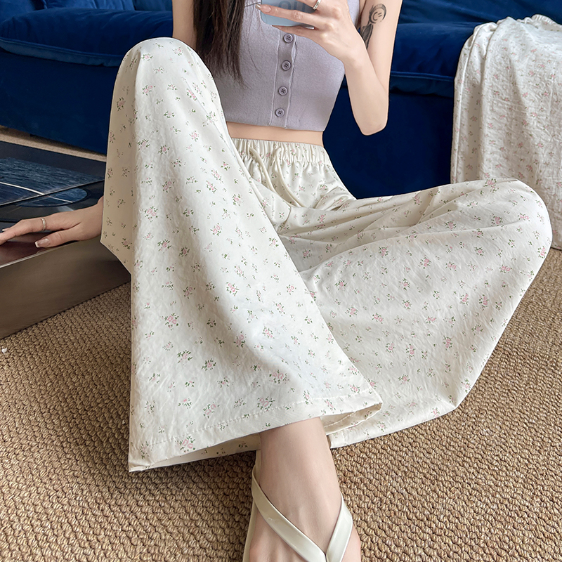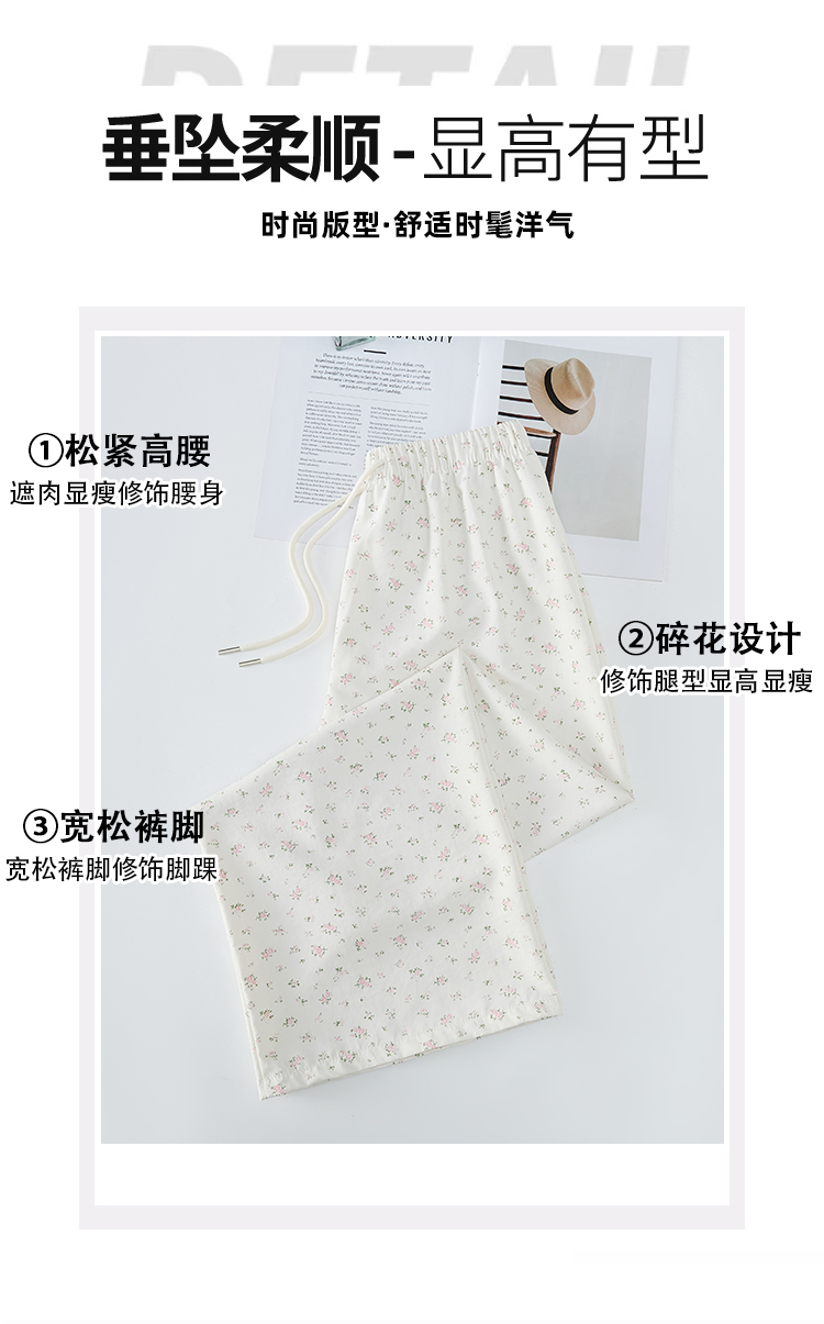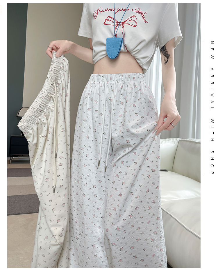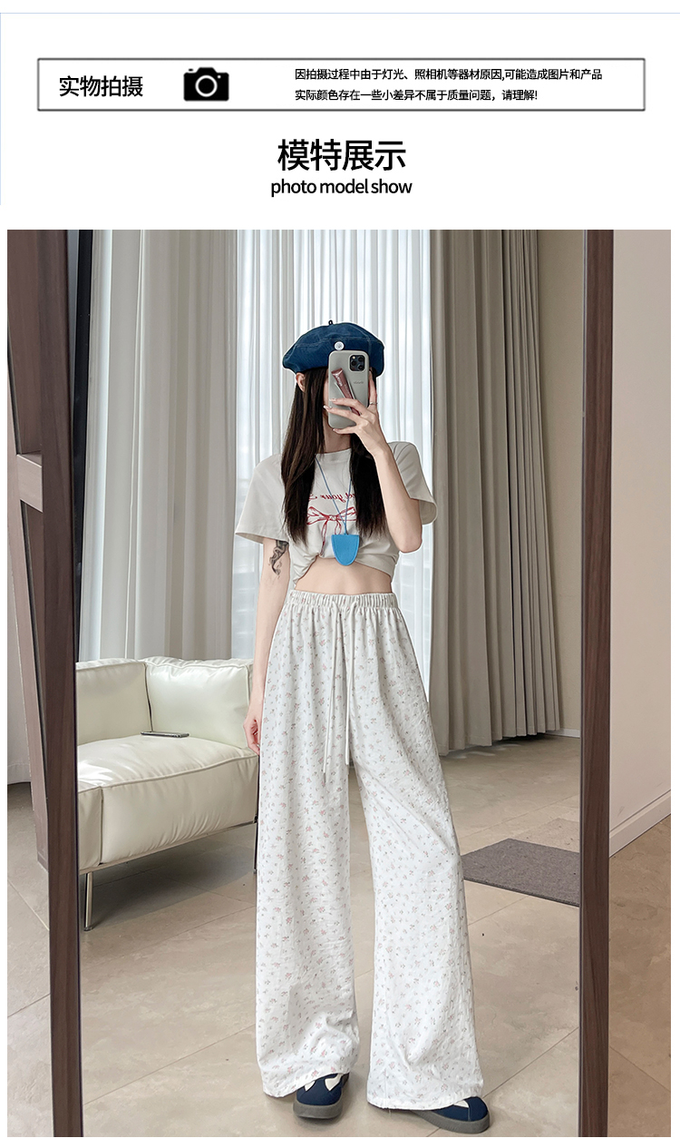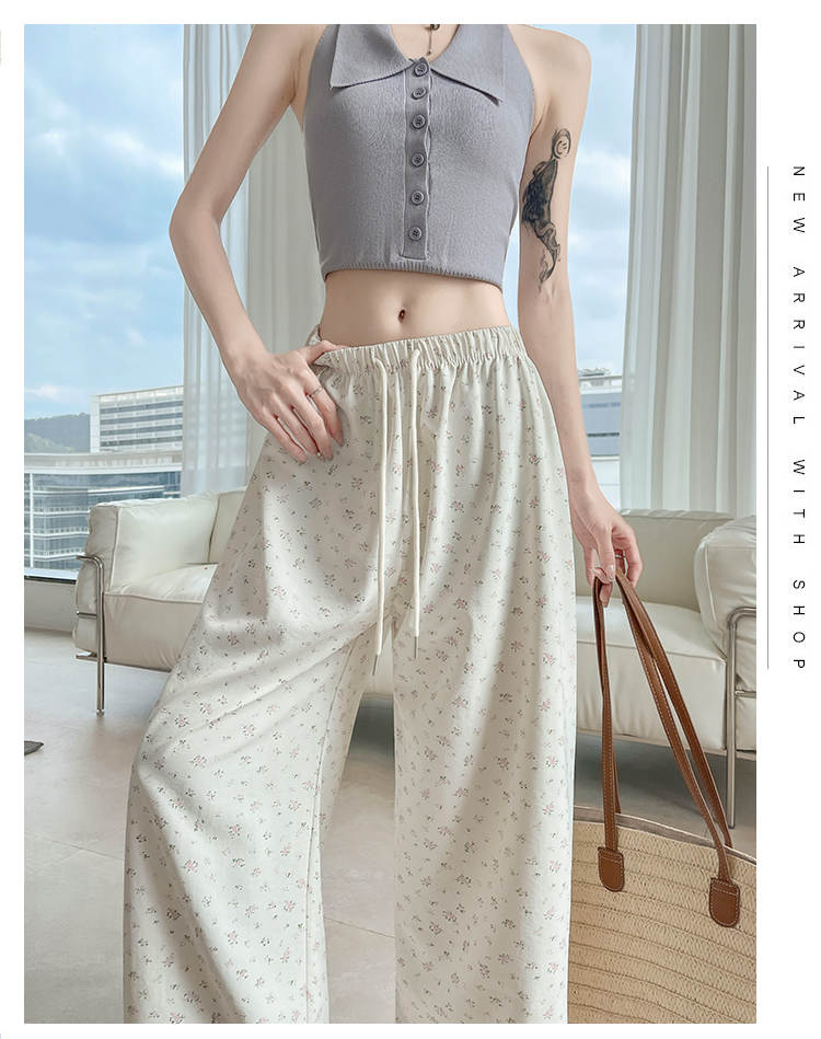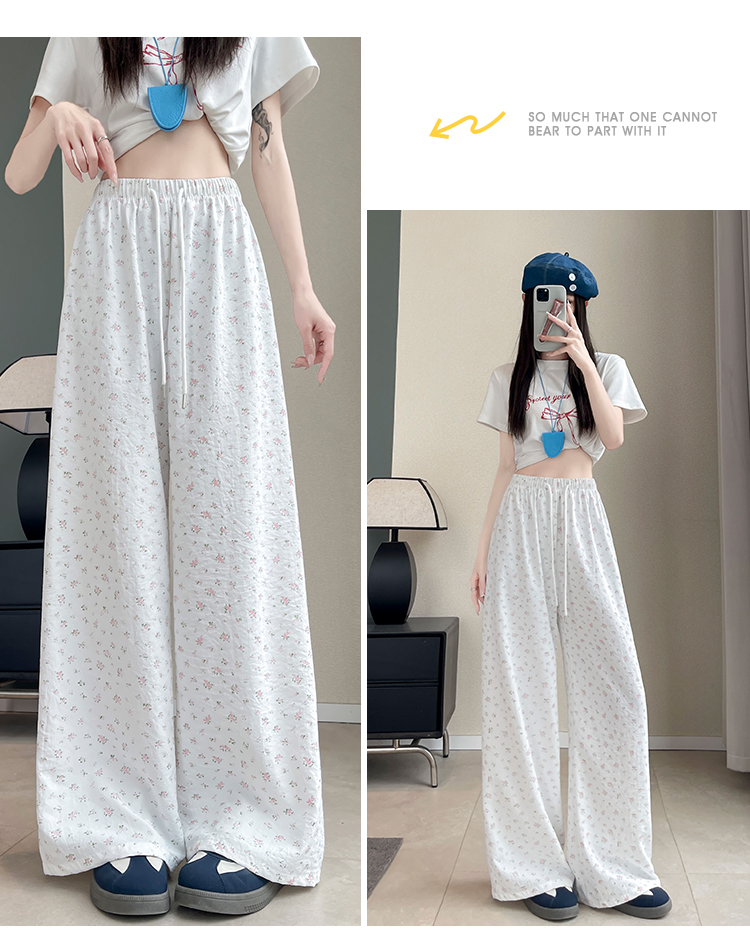 얼음 실크 아세트산 캐주얼 바지 여성 2026 여름 새로운 프린트 와이드 레그 팬츠 오래된 돈 바람 차가운 굴곡 벽오동 바지