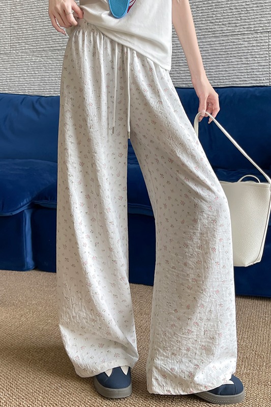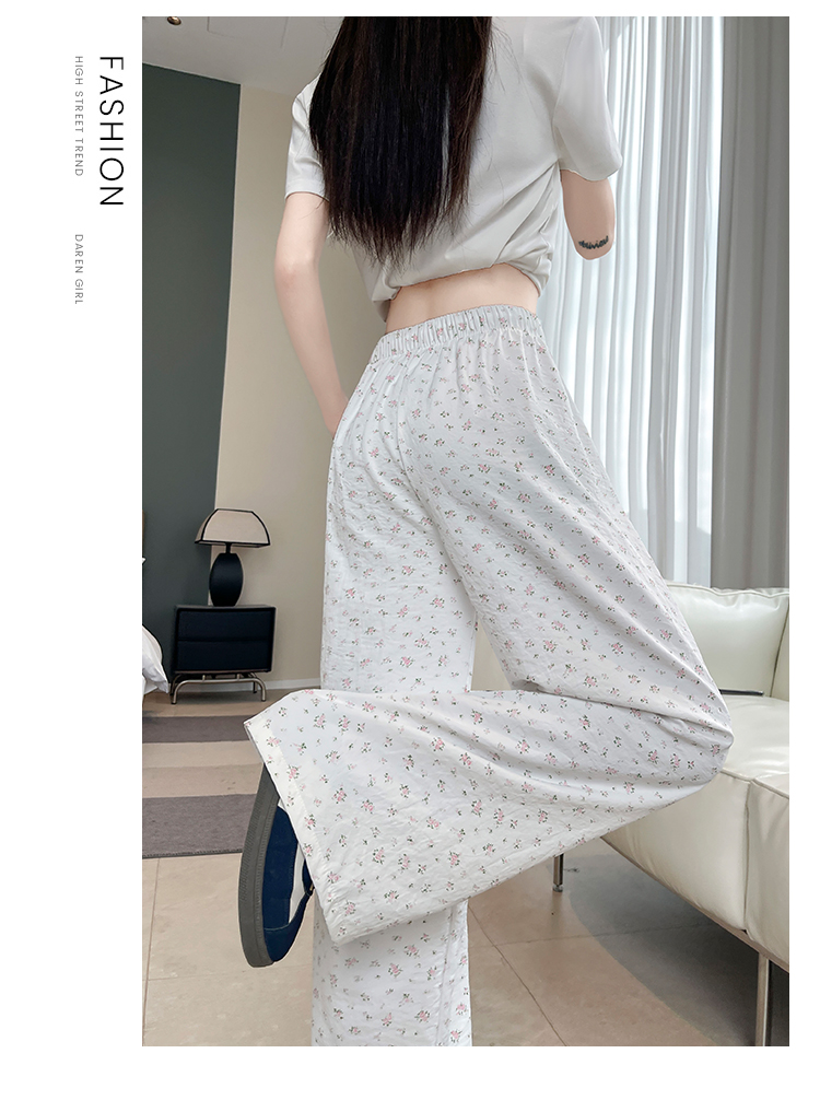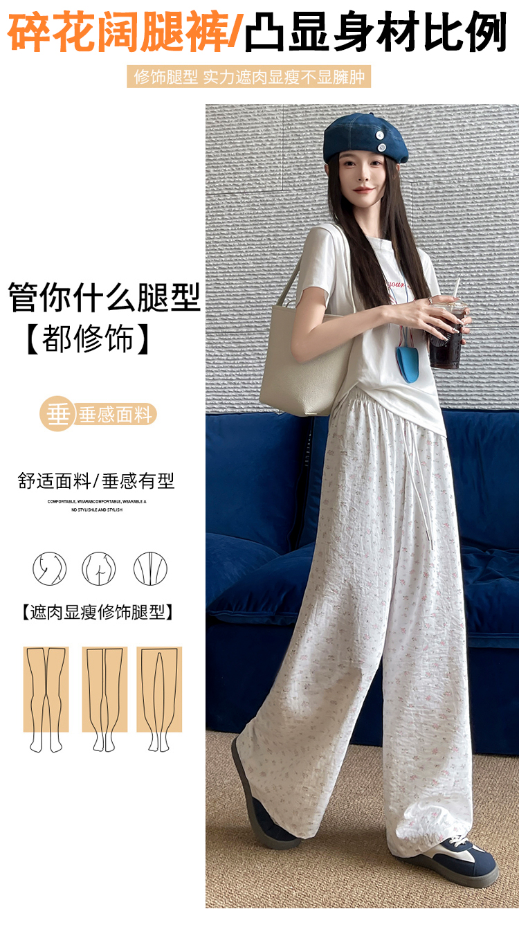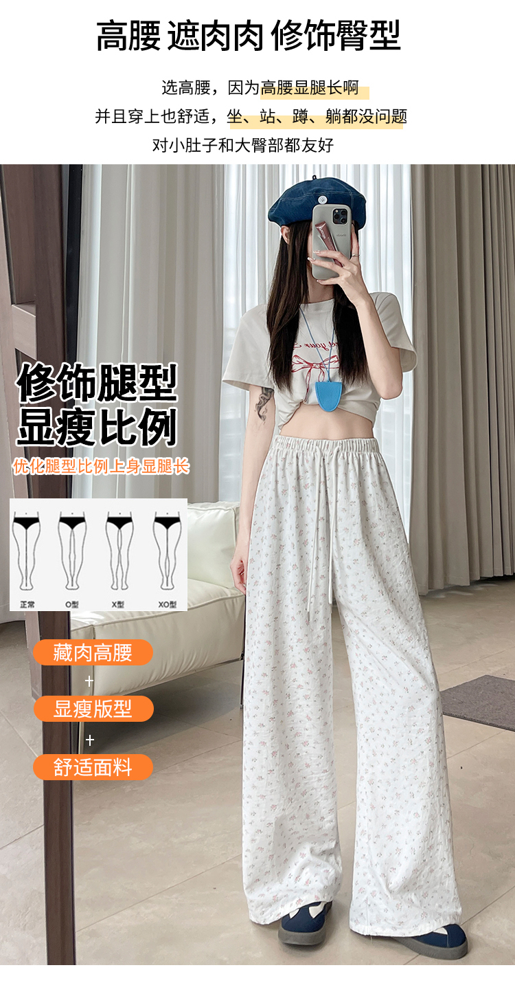 파란색 꽃밭 바지 여성 2026 여름 새로운 하이웨이스트 루즈핏 슬림해 보이는 도루 센스 배기 바지 캐주얼 와이드 레그 팬츠