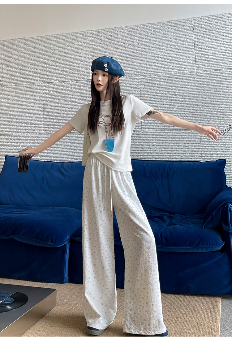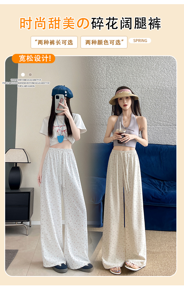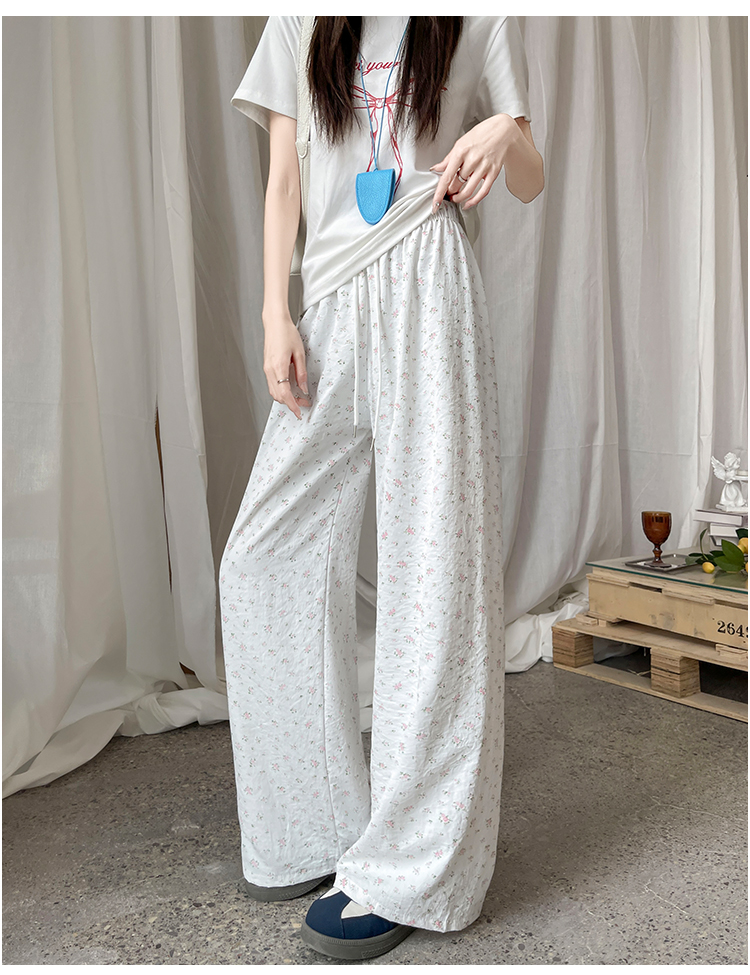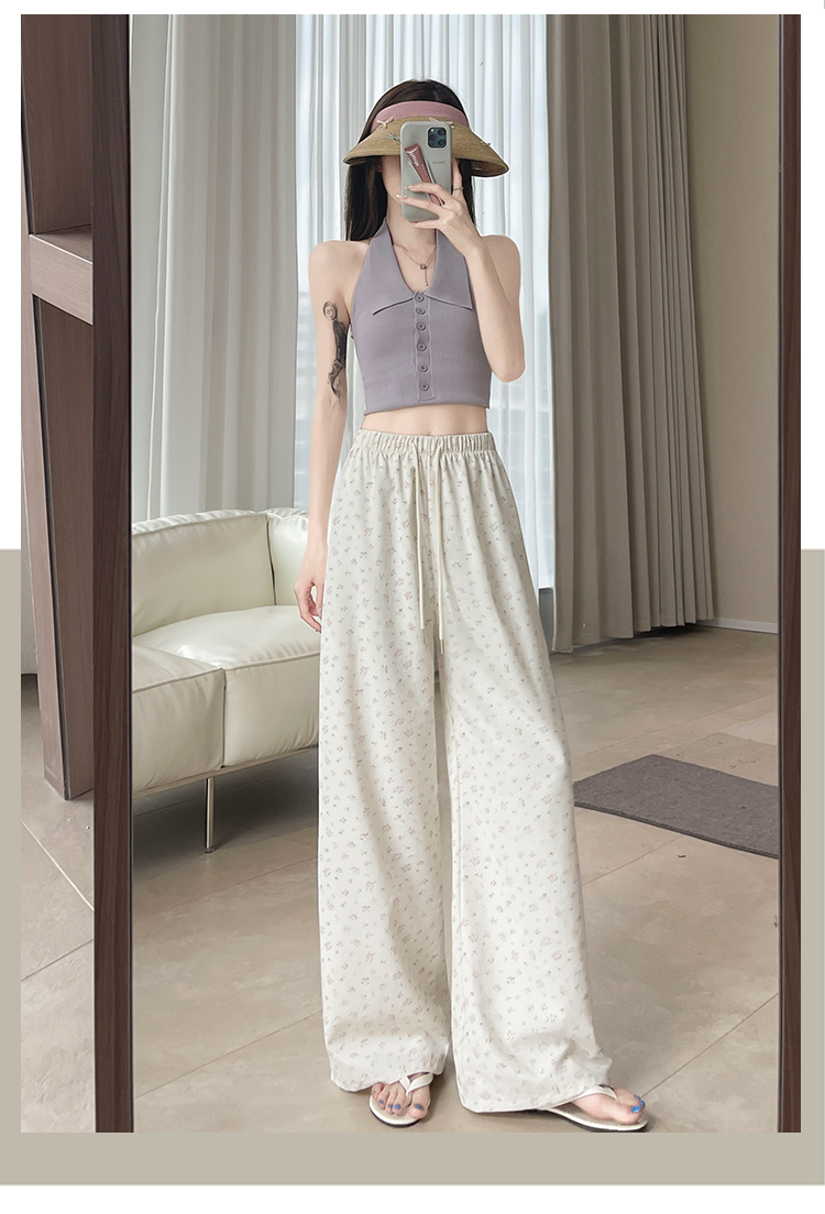 파란색 꽃밭 바지 여성 2026 여름 새로운 하이웨이스트 루즈핏 슬림해 보이는 도루 센스 배기 바지 캐주얼 와이드 레그 팬츠