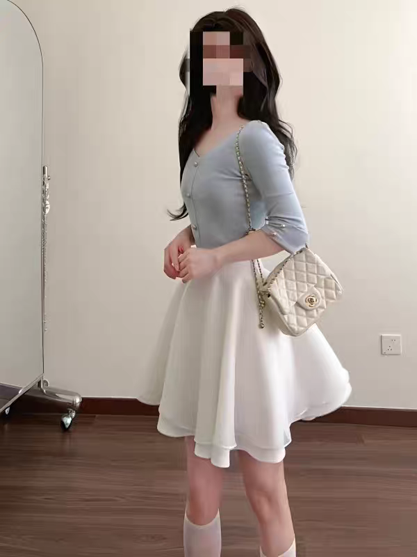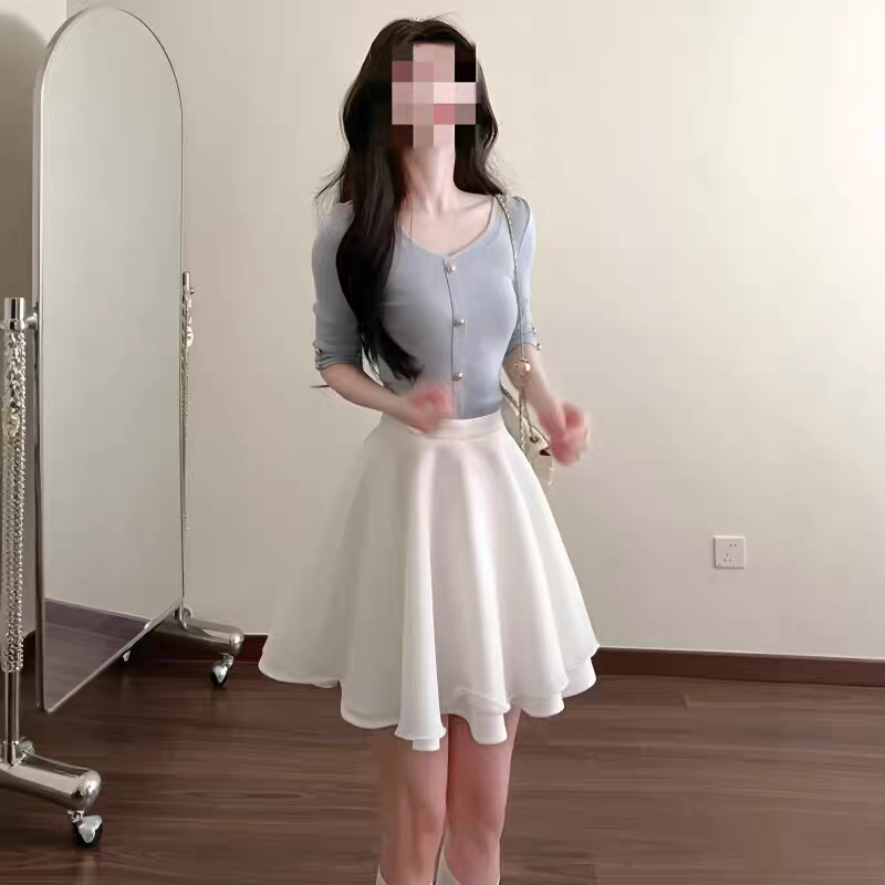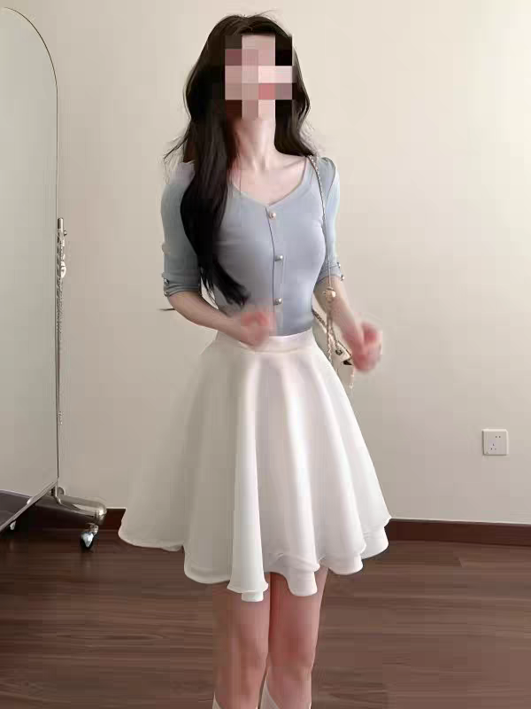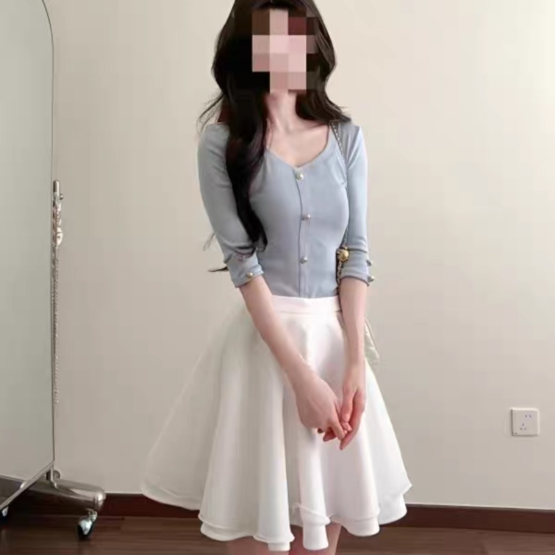 출퇴근 센스 품격 V넥 니트 티셔츠 여름 새로운 높음 지혜 품격 몸매 가꾸기 다용도 중간 소매 맨위 여성