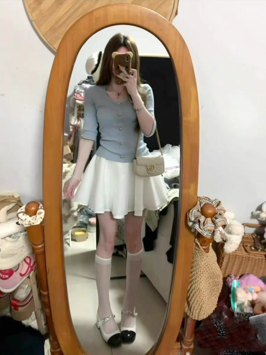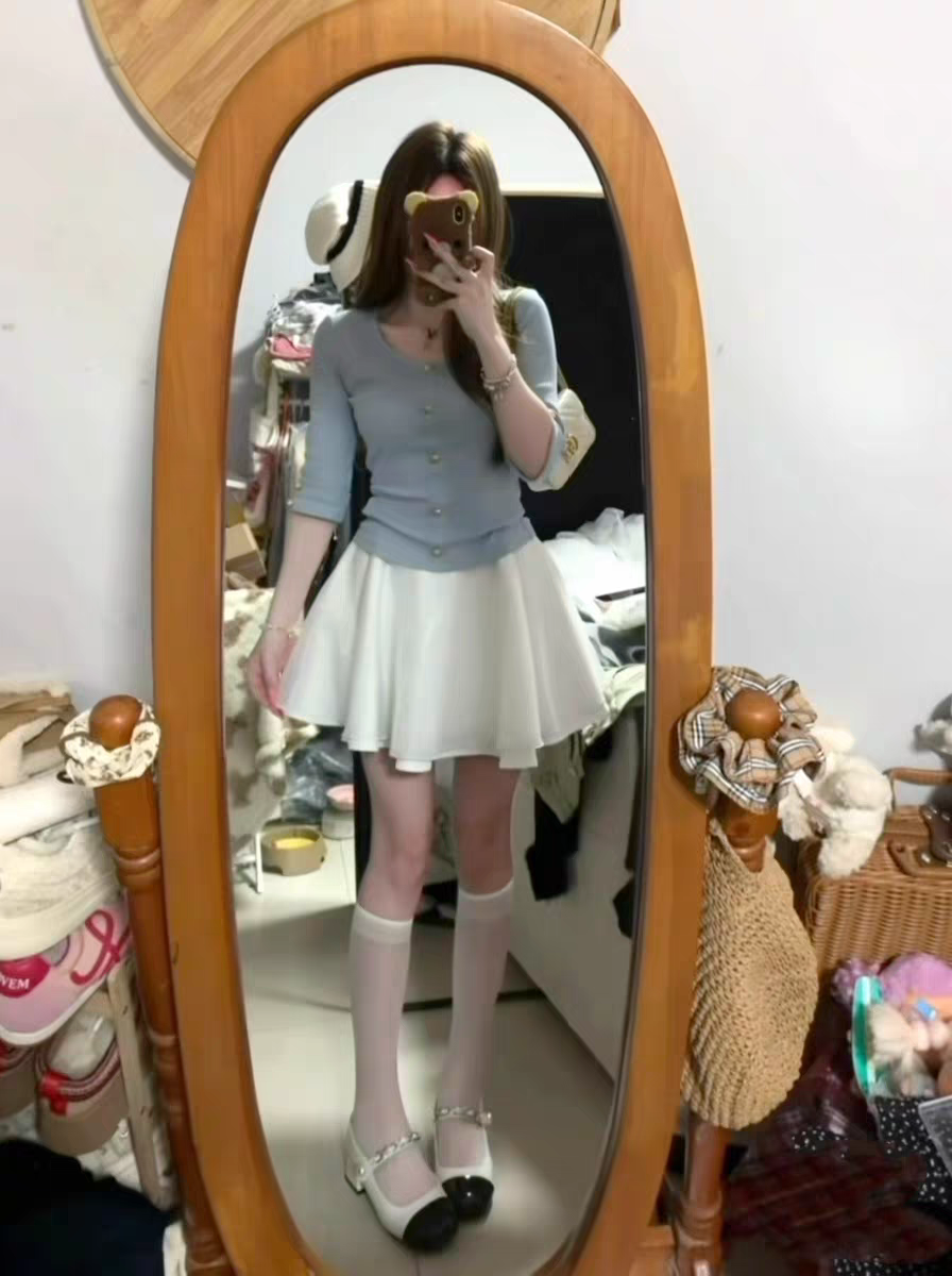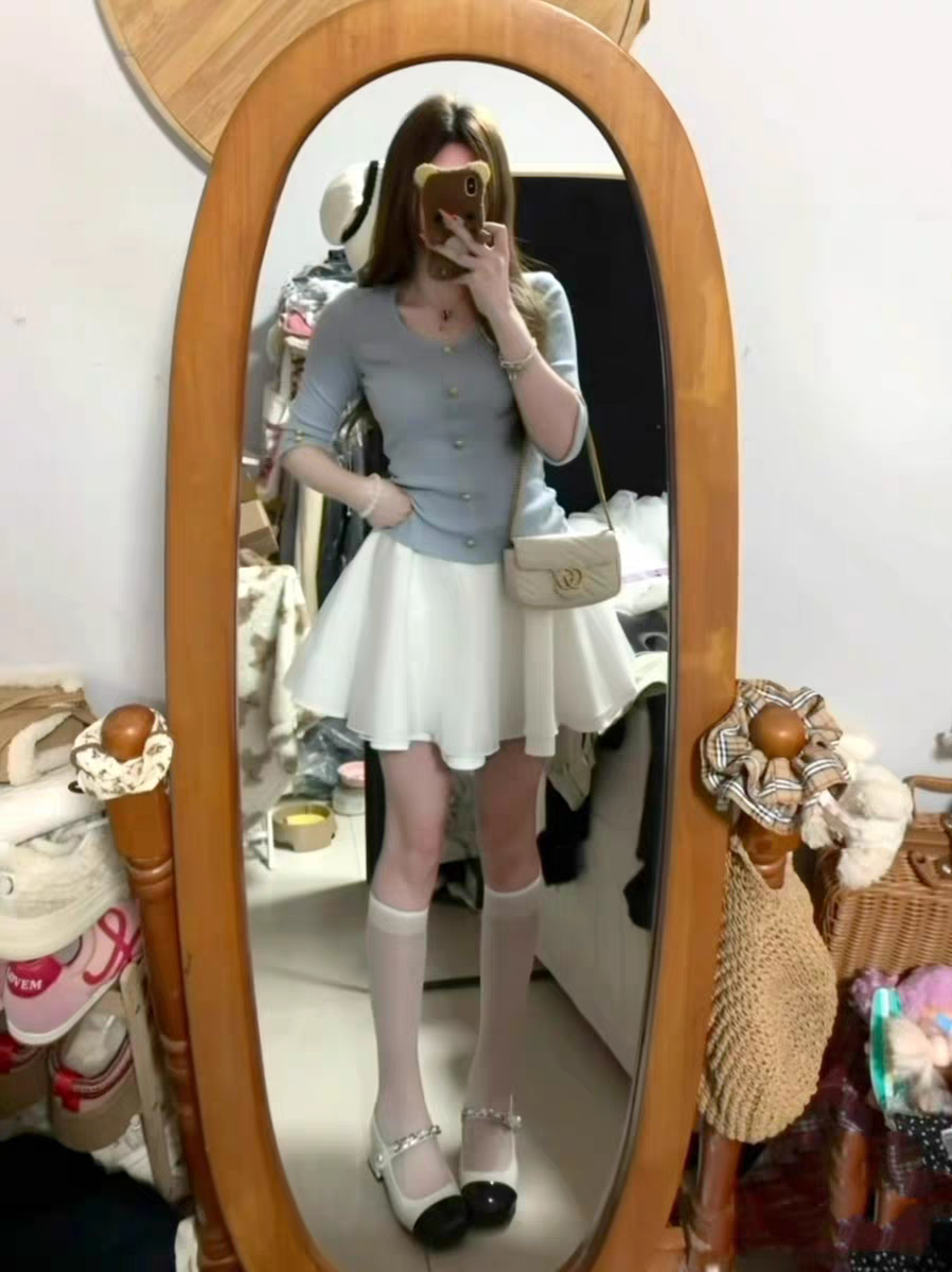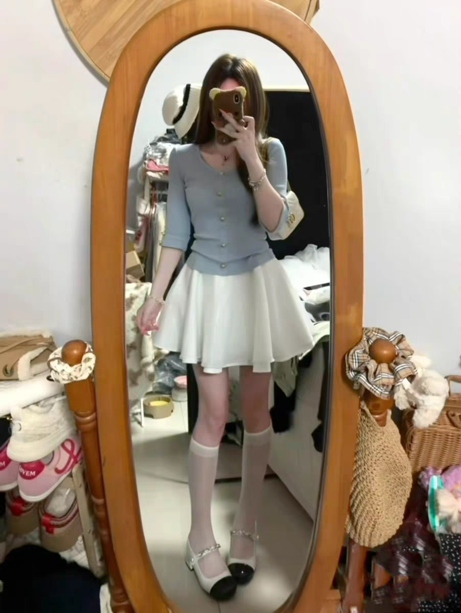 여름 초여름 아름다운 세트 여성 여름 2026 새로운 작은 키 니트 맨위 반 스커트 우산 치마 투피스 세트 치마