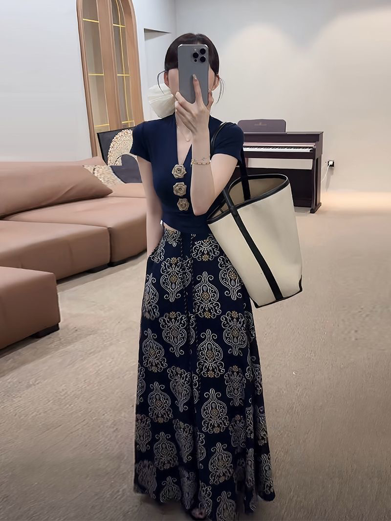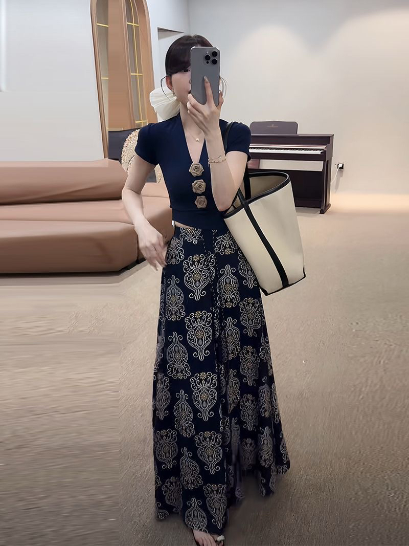2026 여름 새로운 한 부서 순수한 욕망 바람 몸매 가꾸기 슬림해 보이는 맨위 경기 하이웨이스트 꽃무늬 반신 스커트 투피스 세트