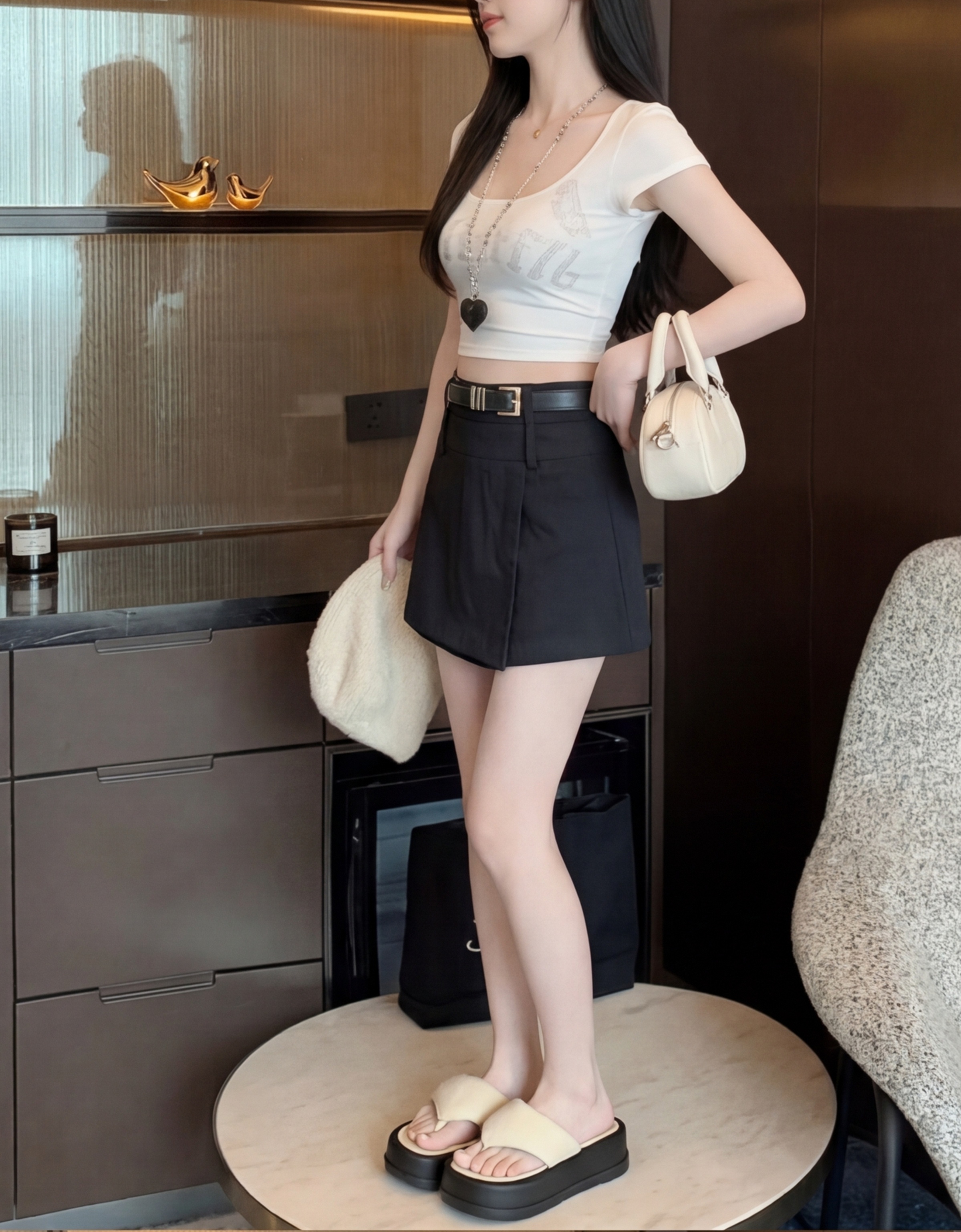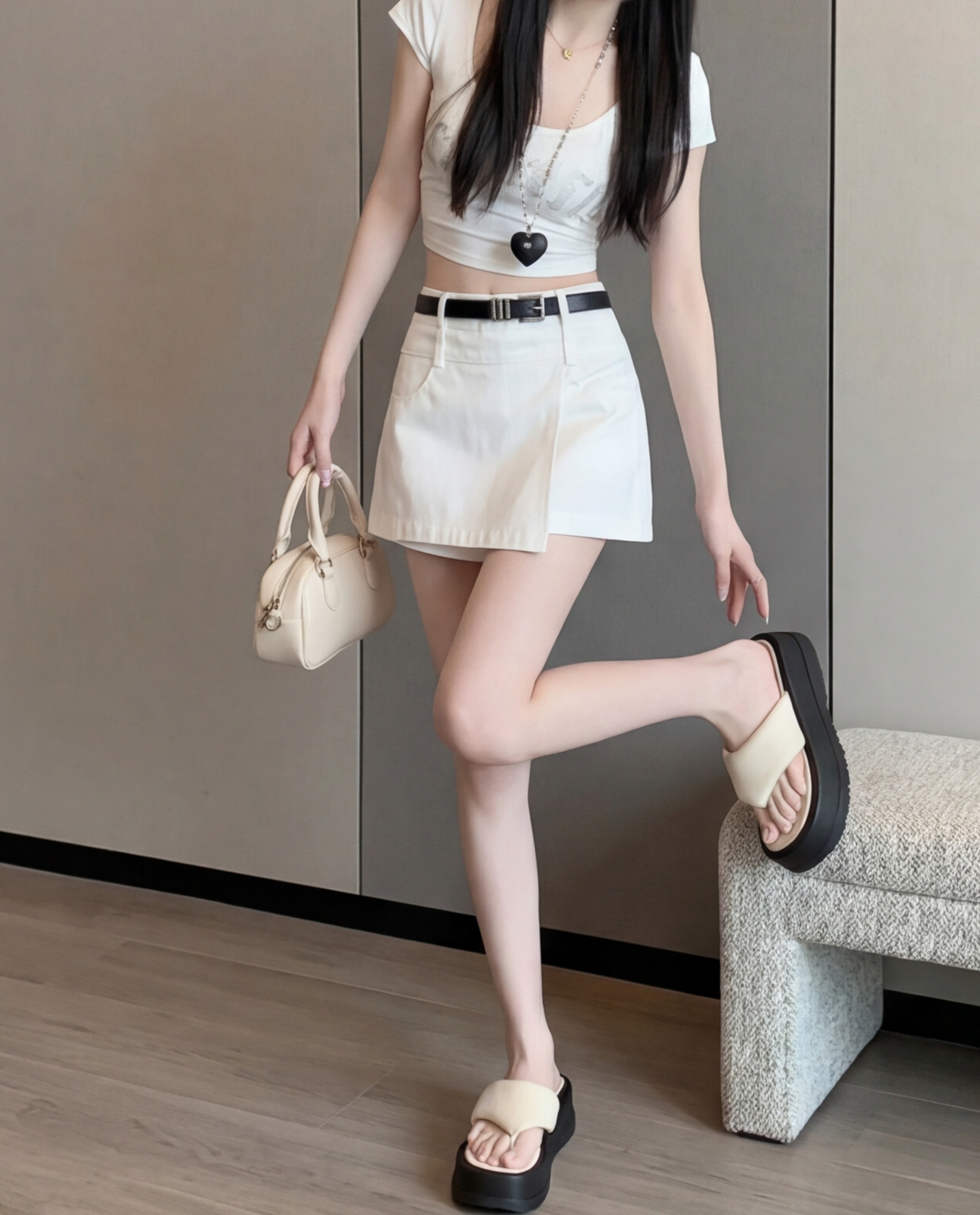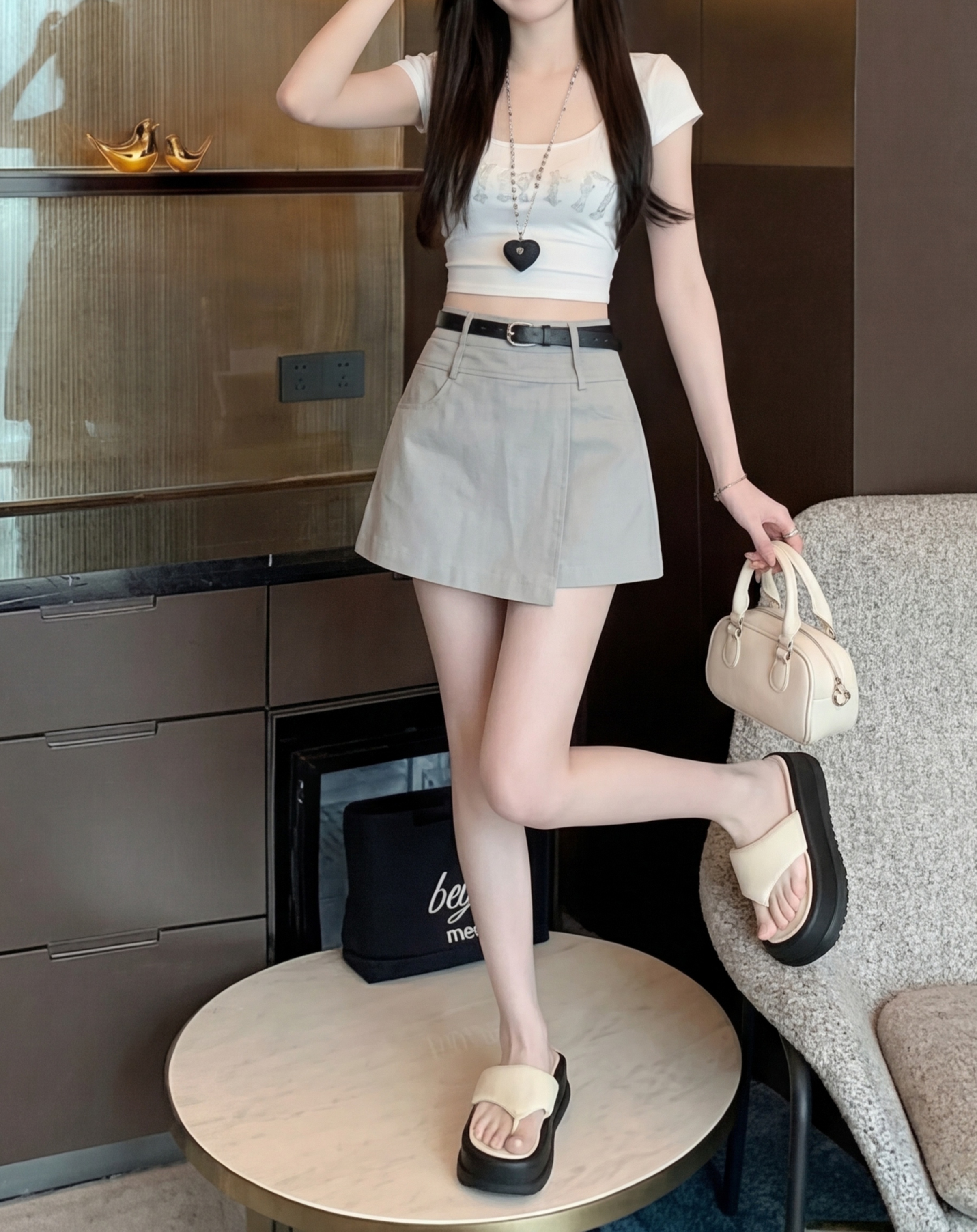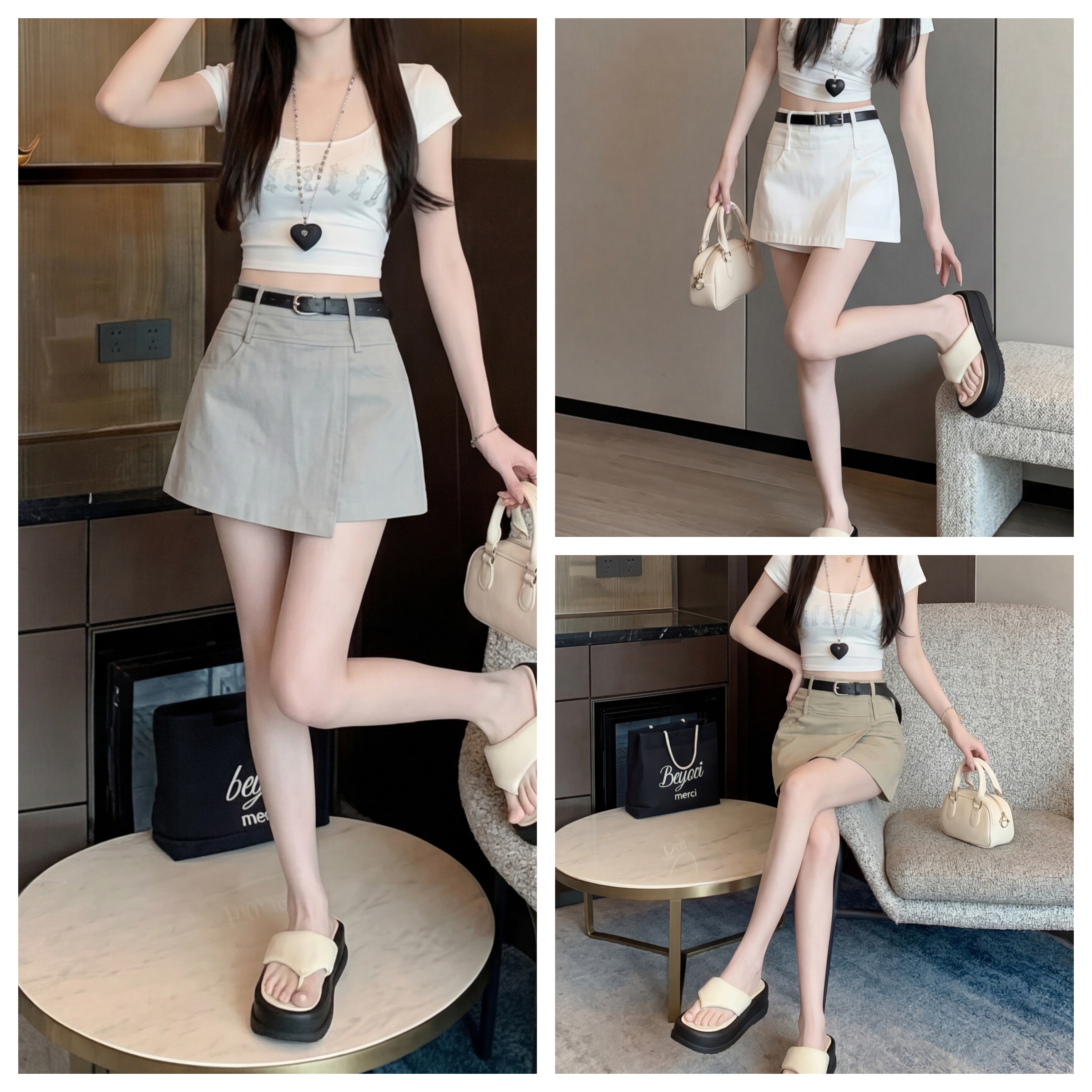 실사 2026 여름 새로운 반신 스커트 패션 몸매 가꾸기 미니멀리즘 바지 A라인 스커트