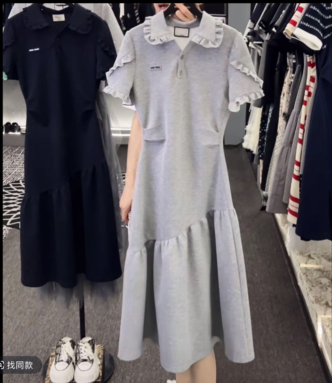 느슨한 여가 레이스 빈 스티칭 큰 사이즈 여성 의류 지방 mm 블랙 짧은 소매 드레스 여름 새로운 넓은 아내