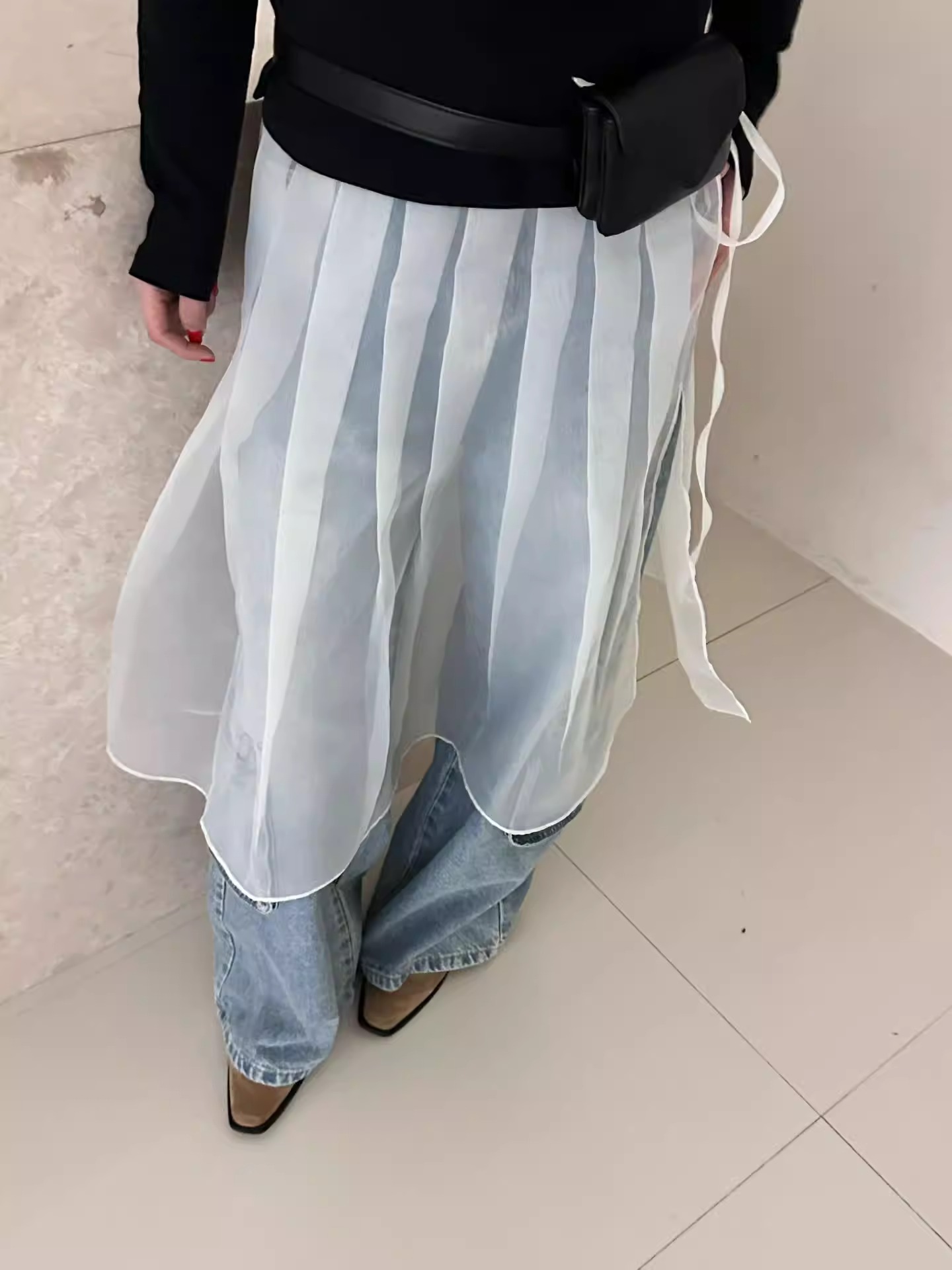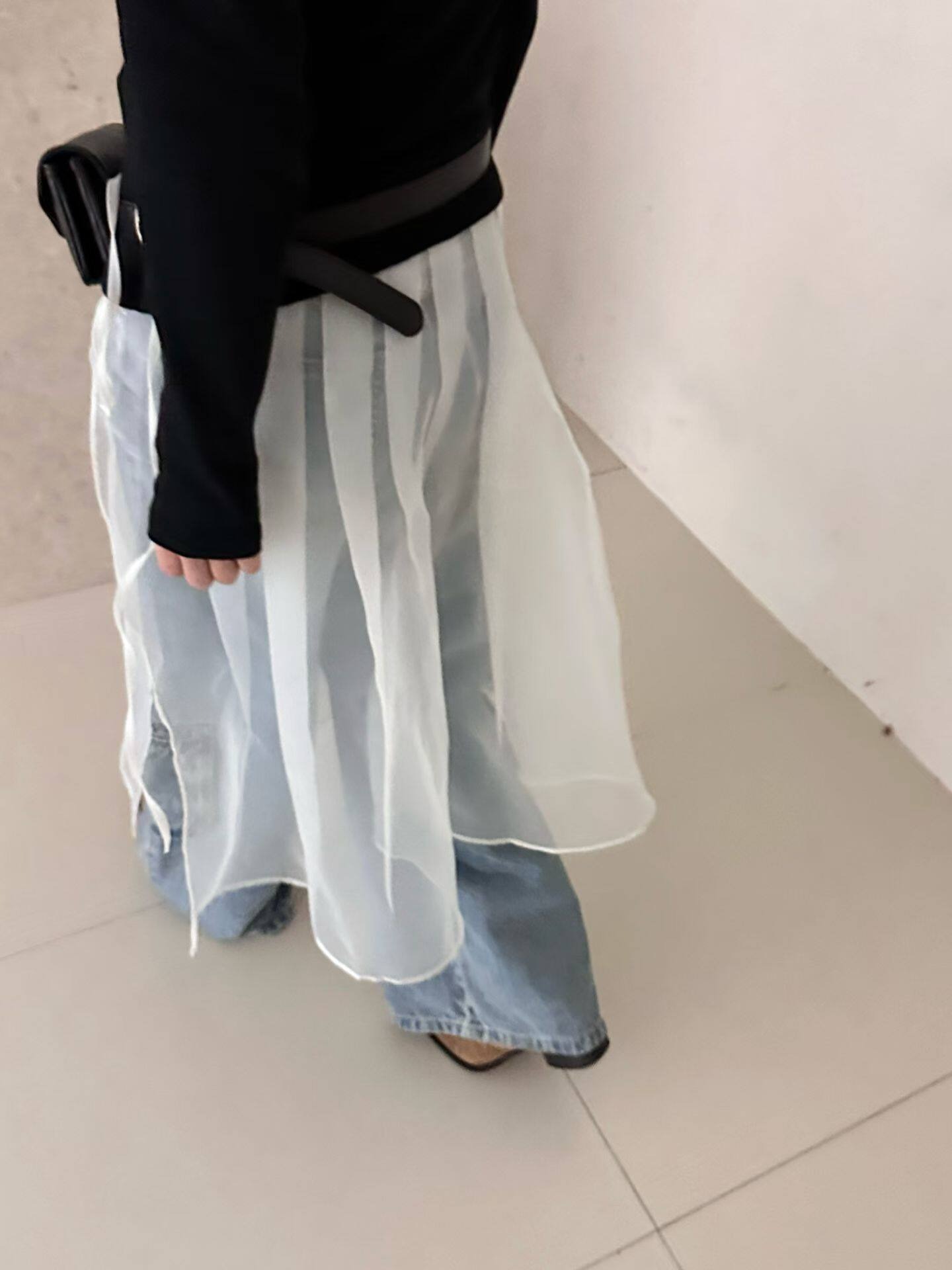 2026 봄 여름 새로운 한국 스타일 하이웨이스트 다용도 디자인 센스 이중층 치마 원사 반신 스커트 여성