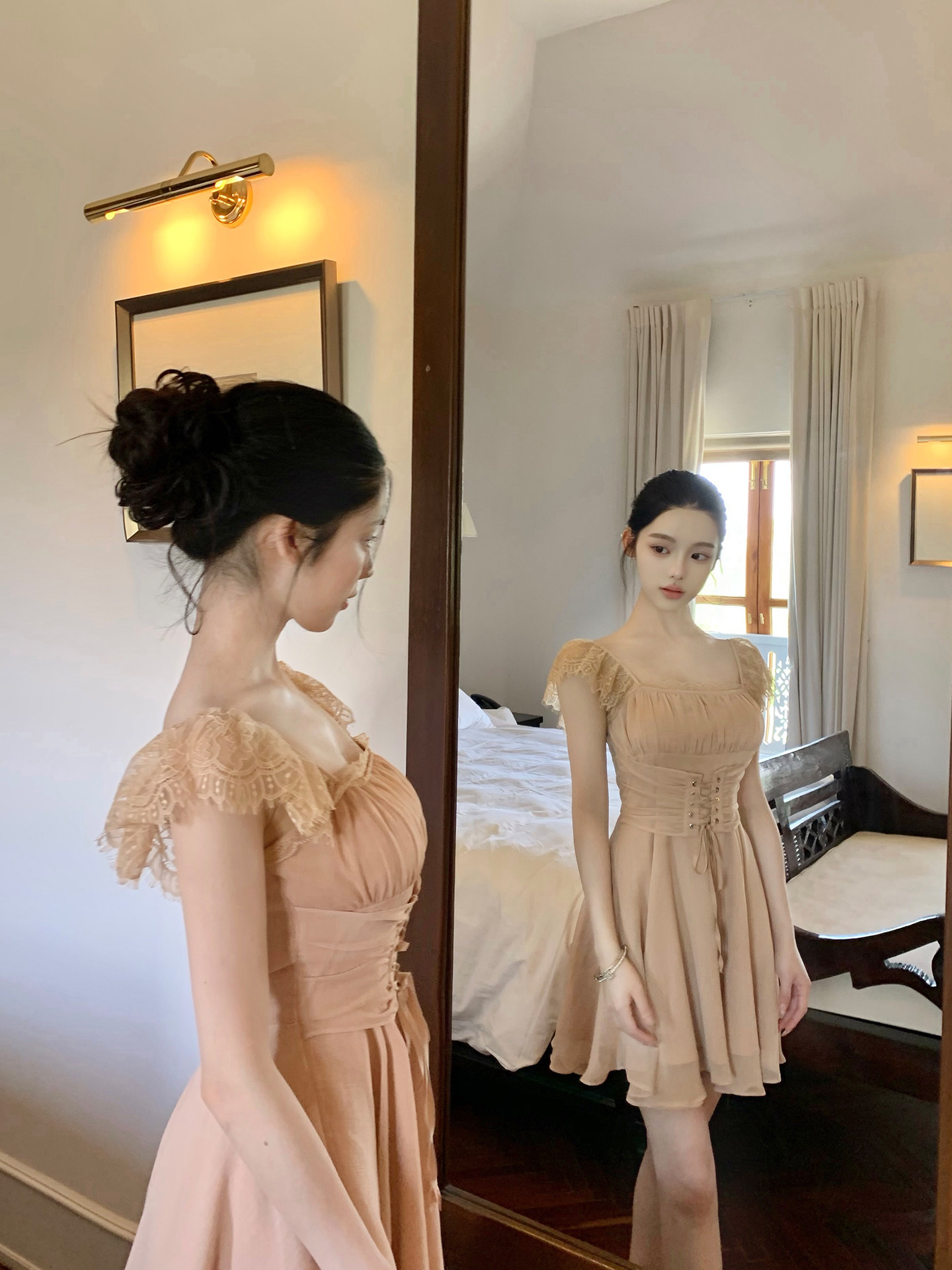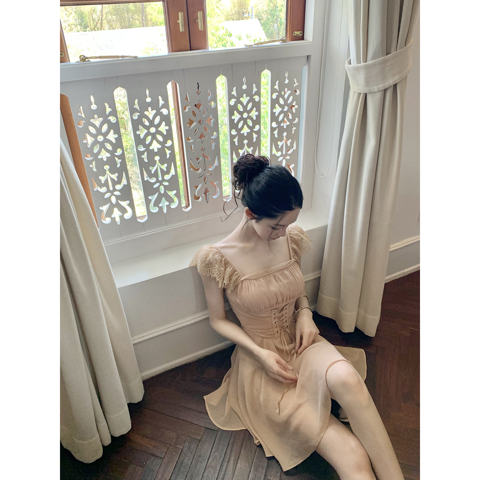 인터넷 그림 봄날 약속으로 이동 달콤한 욕망 바람 섹시함 슬립 여성 드레스 봄 여름 품격 데이트 미니 스커트