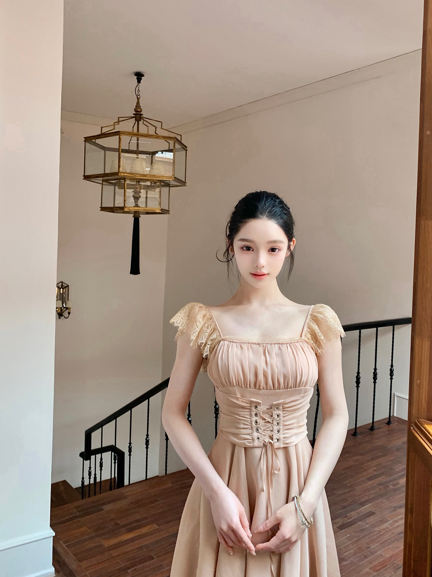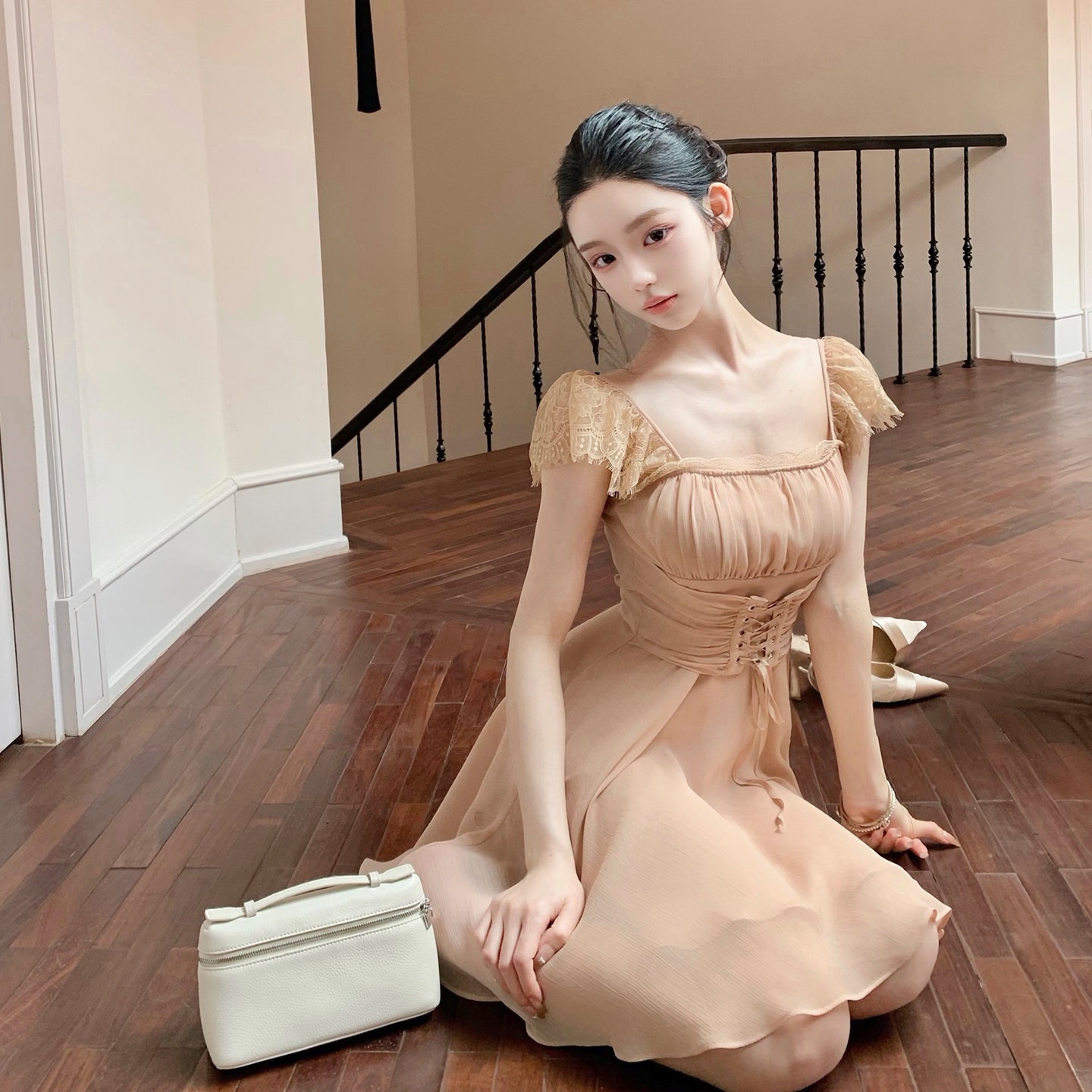 실사 정가 여름 헤일로 염색 부드러운 바람 쉬폰 오프숄더 생선뼈 코르셋 맨위