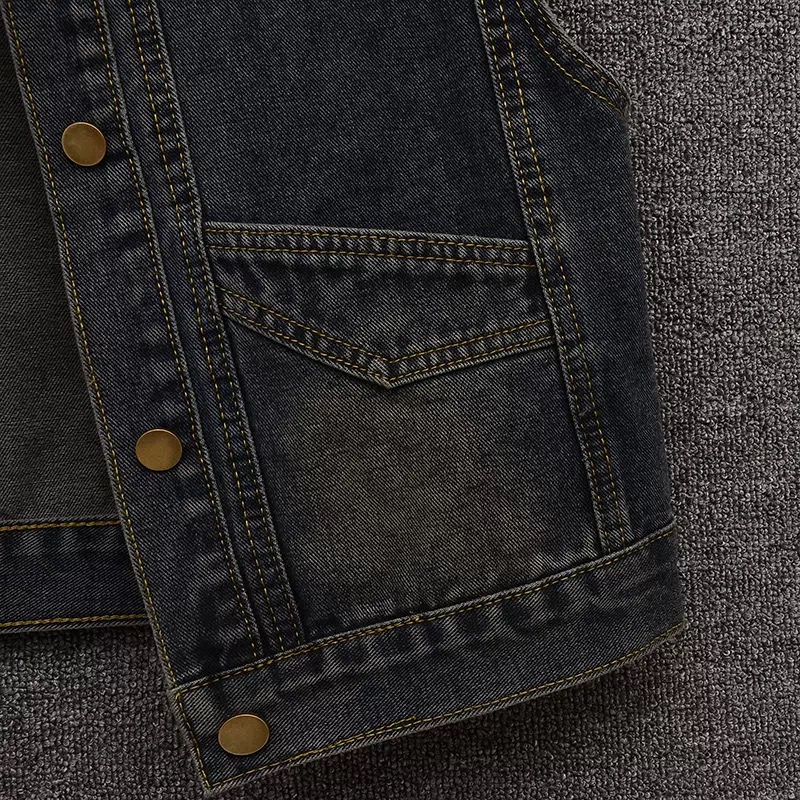 꿀 실크 어린이 양 2026 새로운 작은 대중 미니멀리즘 고급 레트로 워싱 데님 하이웨이스트 허리 수축 긴팔 재킷 맨위