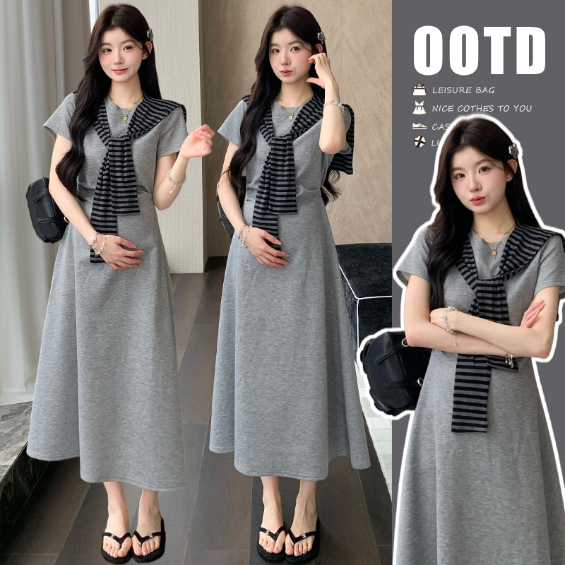 실사 새로운 출산 착용 여름 드레스 패션 미니멀리즘 다용도 루즈핏 슬림해 보이는 연령 감소 캐주얼 디자인 센스 트임 맨위