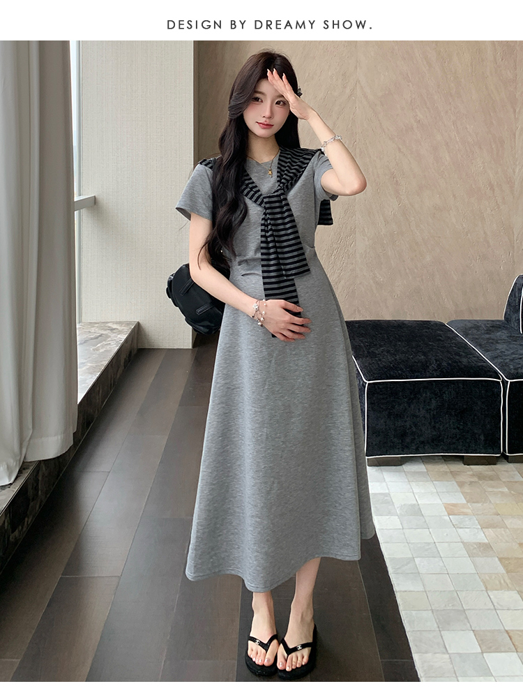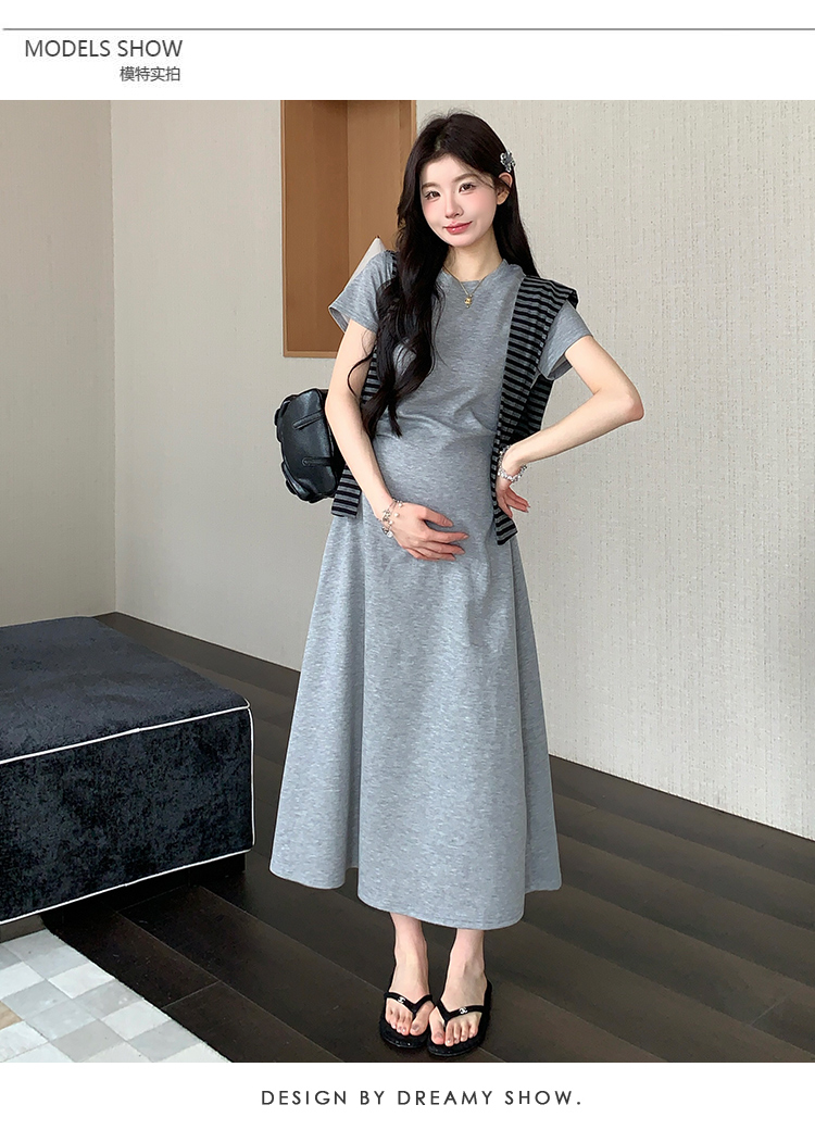 실사 새로운 출산 착용 순면 스트라이프 임산부 조끼 스커트 한국 스타일 느슨함 센스 빅 사이즈 임산부 드레스