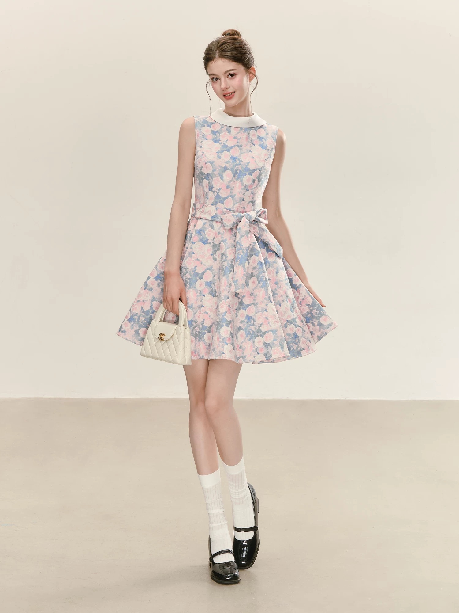 3 월 23 일 신제품 annatto 화이트 레이스 자수 폴로 칼라 드레스 몸매 가꾸기 허리 수축 한 마디 미니 스커트
