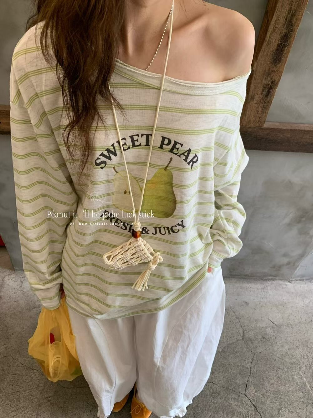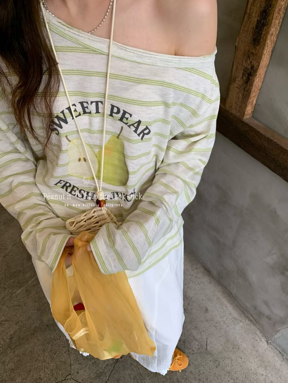 순수한 욕망 비스듬한 어깨 레이스 측면 반팔 티셔츠 여성 여름 달콤함 만화 프린트 허리 수축 슬림해 보이는 디자인 센스 작은 대중 맨위