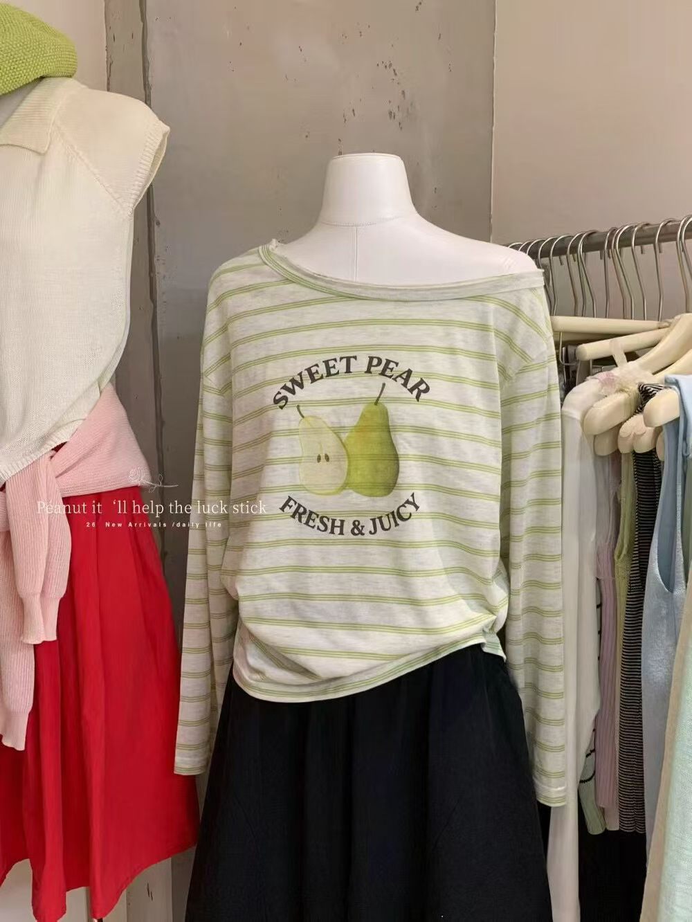 부드럽다 프로 피부 비스듬한 어깨 리본 디자인 센스 슬림해 보이는 반팔 티셔츠 리본 아니요 철거 도트 반신 스커트
