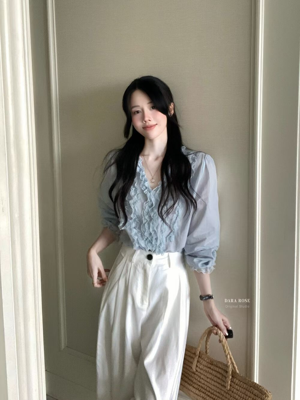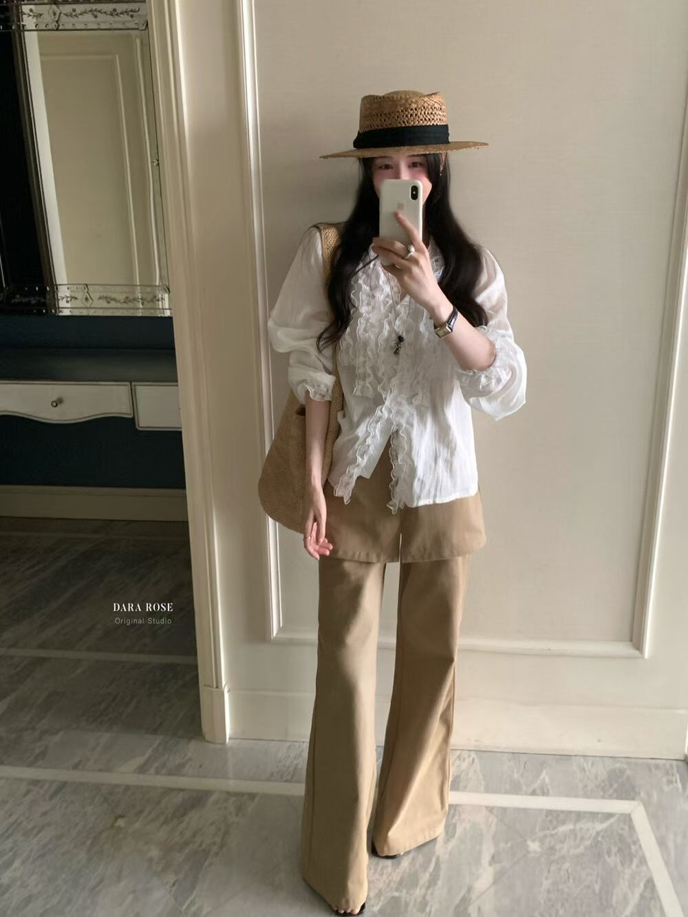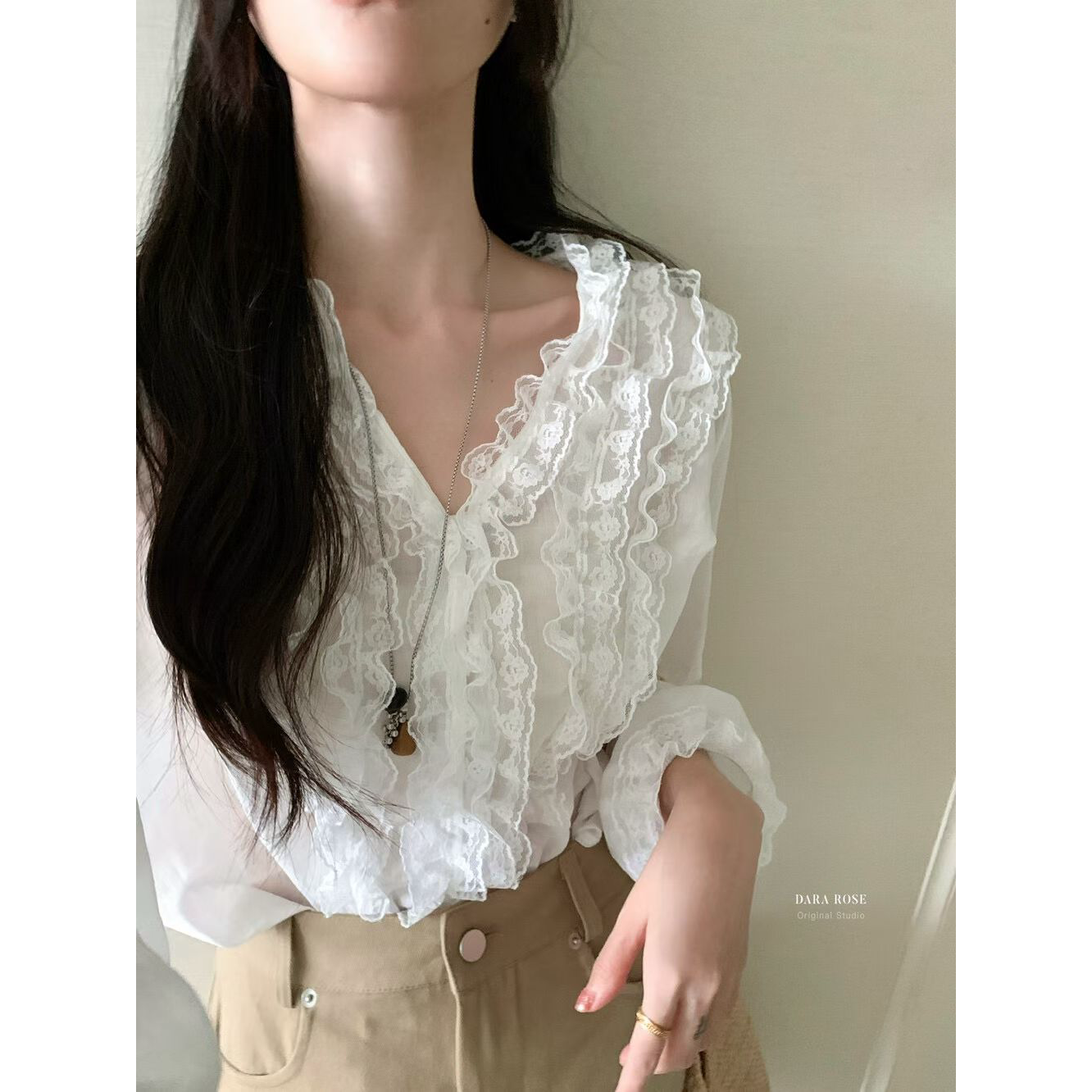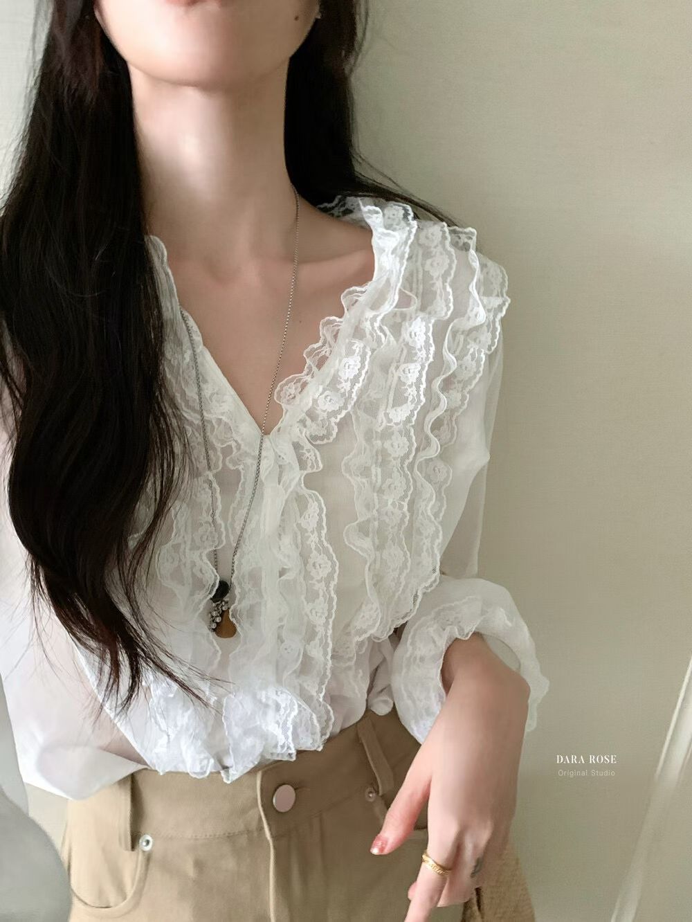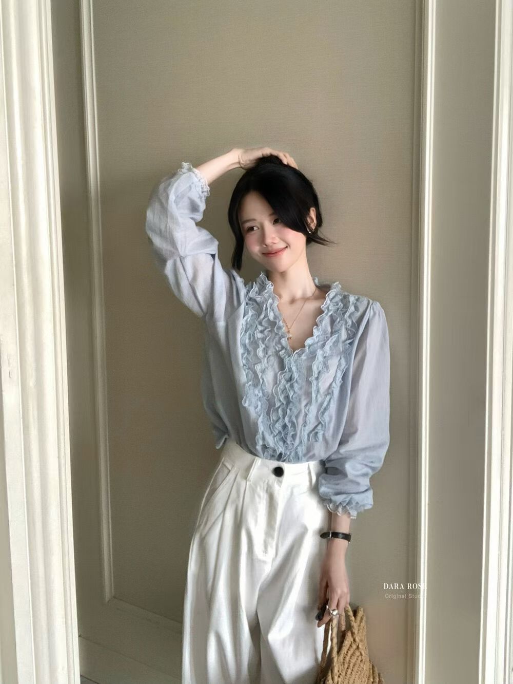 프랑스식 자이언트 잘 생긴 ~ 중 프릴 비스듬한 어깨 의류 여성 2026 년 여름 새로운 쉬폰 작은 셔츠 디자인 센스 작은 대중
