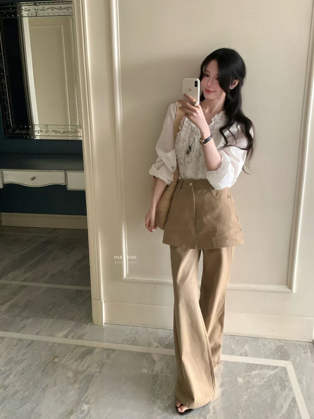 omelet 에그 롤 한 부서 디자인 센스 다용도 레이스업 측면 나비 매듭 8 점 와이드 레그 팬츠 캐주얼 바지