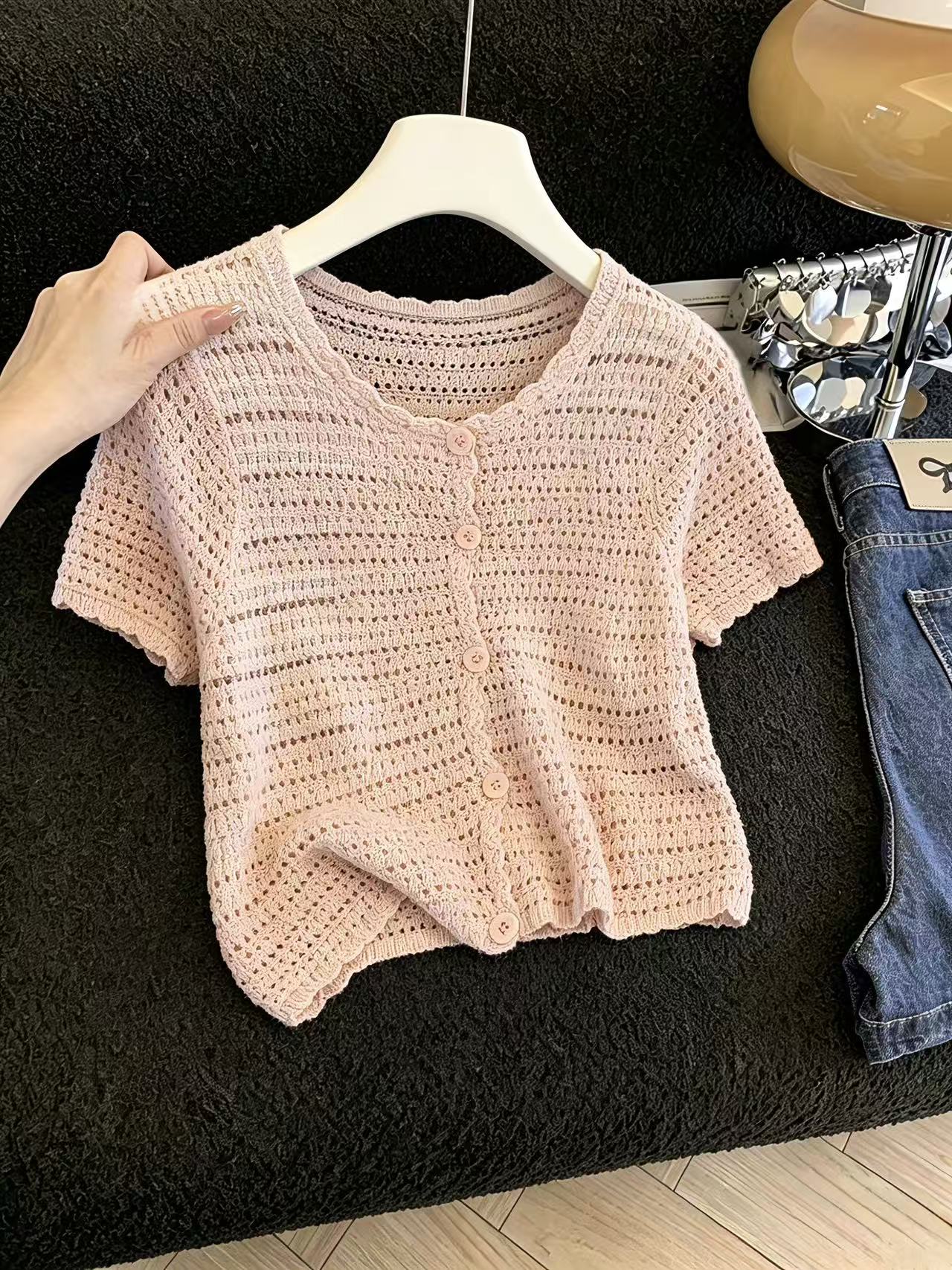 실사 홀로우 아웃 니트 오픈 가디건 여성 여름 얇은 스타일 품격 달콤함 에어컨 셔츠 맨위 chic