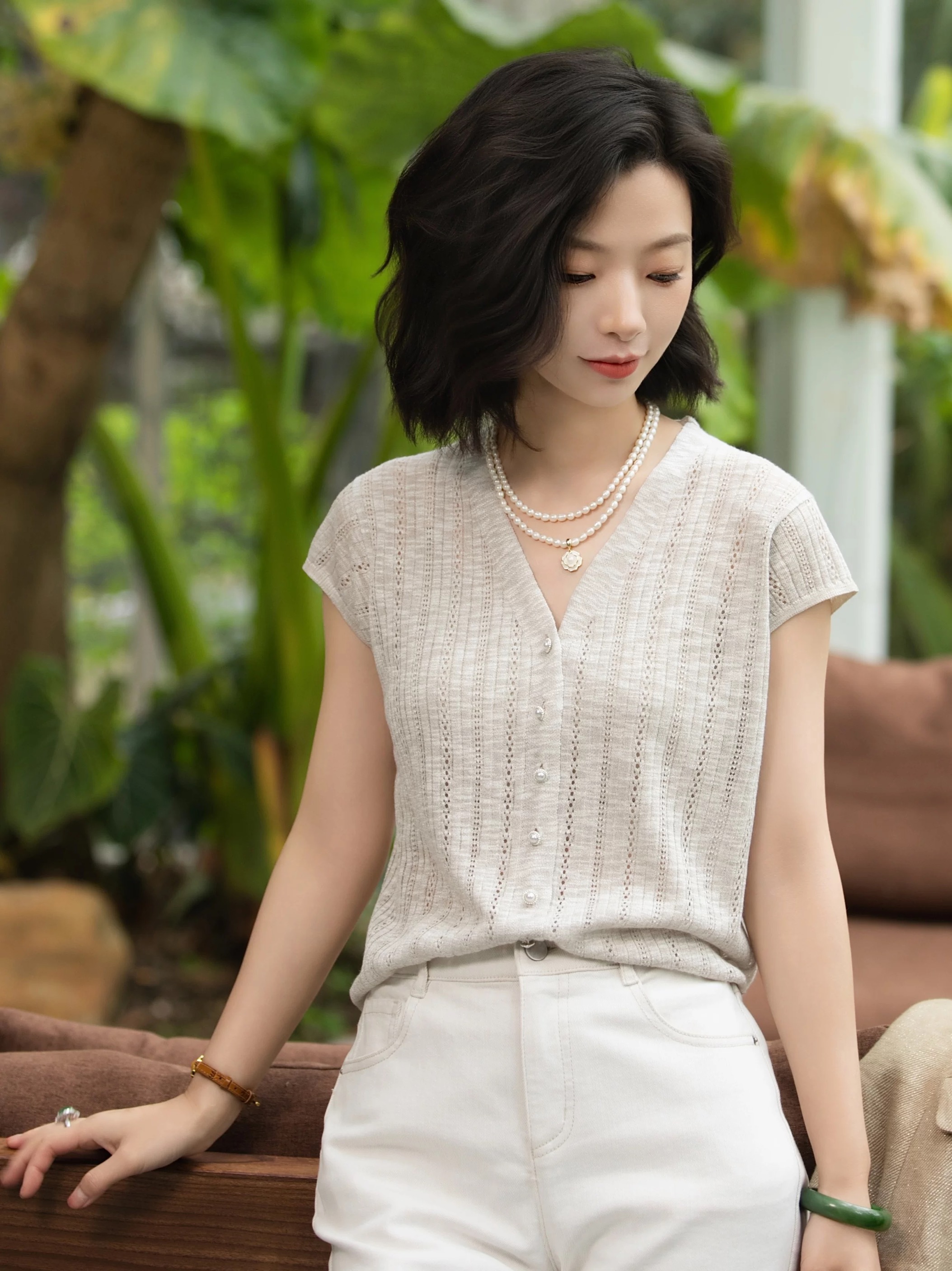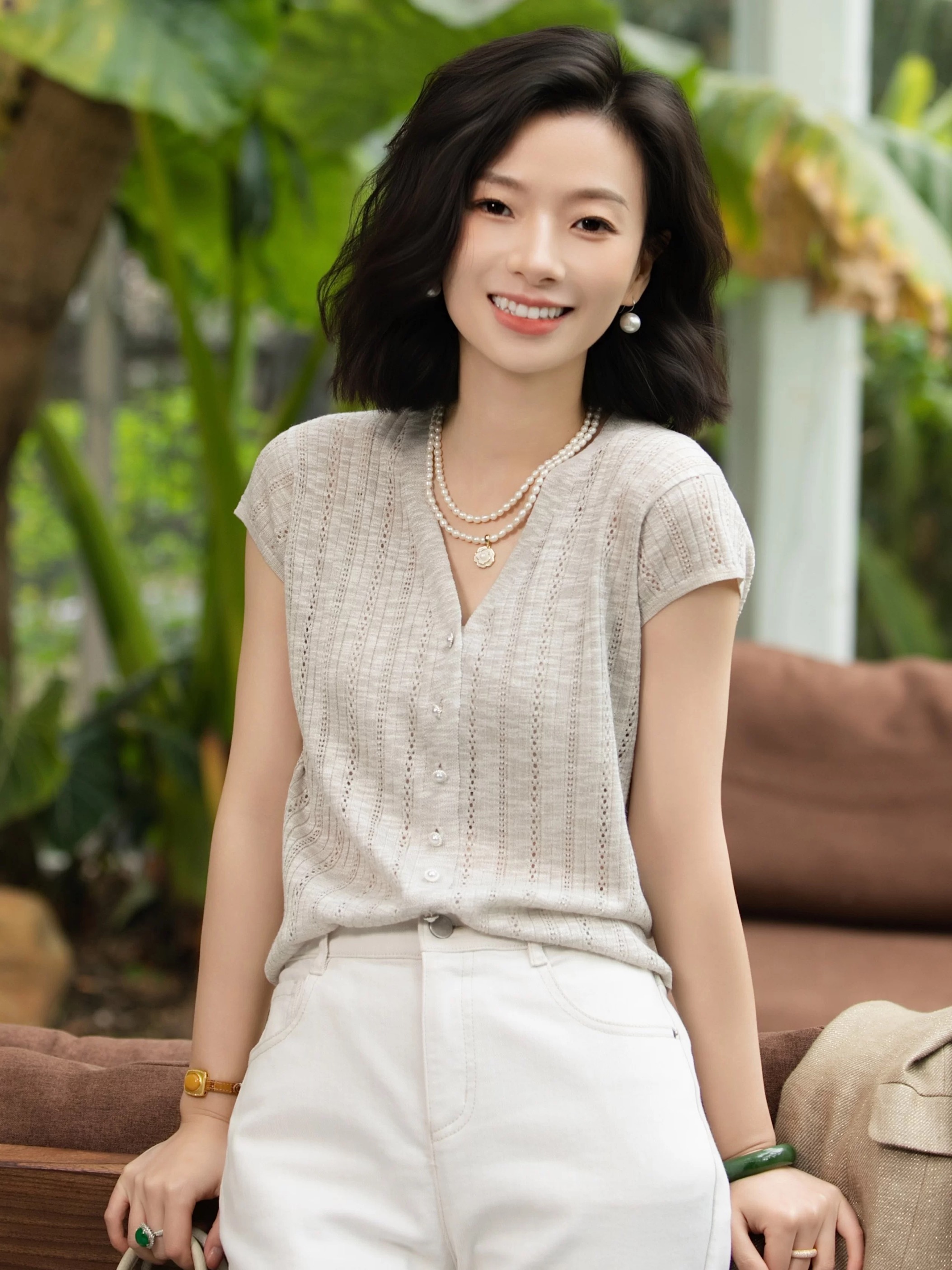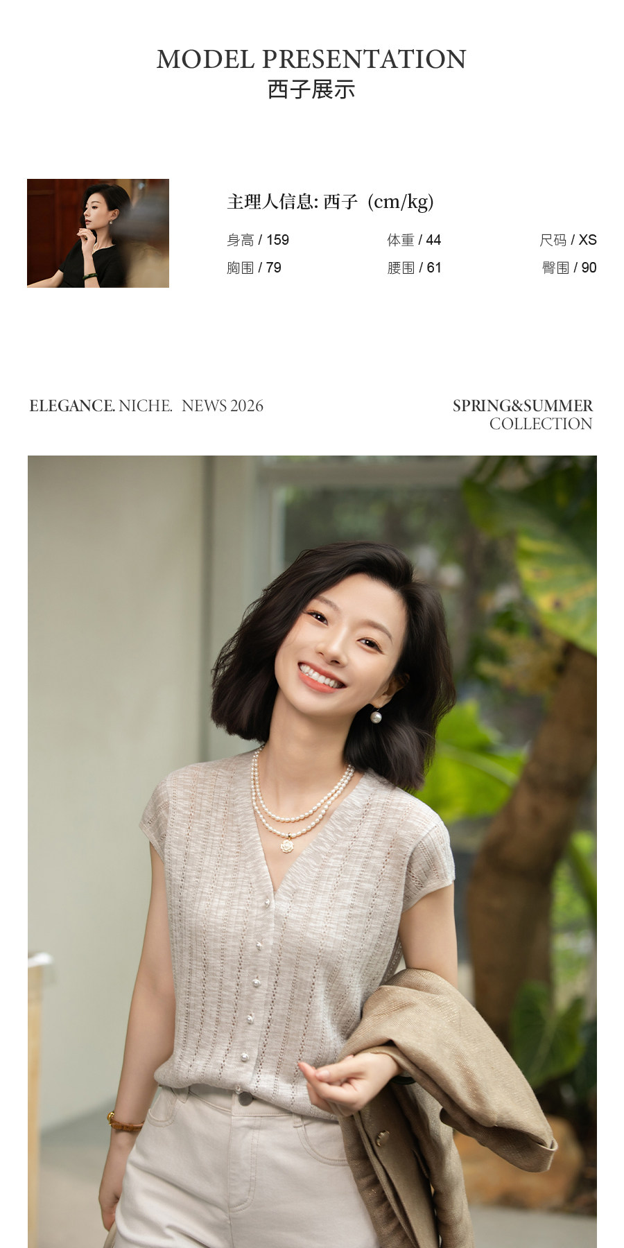 2026 여름 새로운 사람들 실크 혼방 디자이너 품격 섹션 오픈 가디건