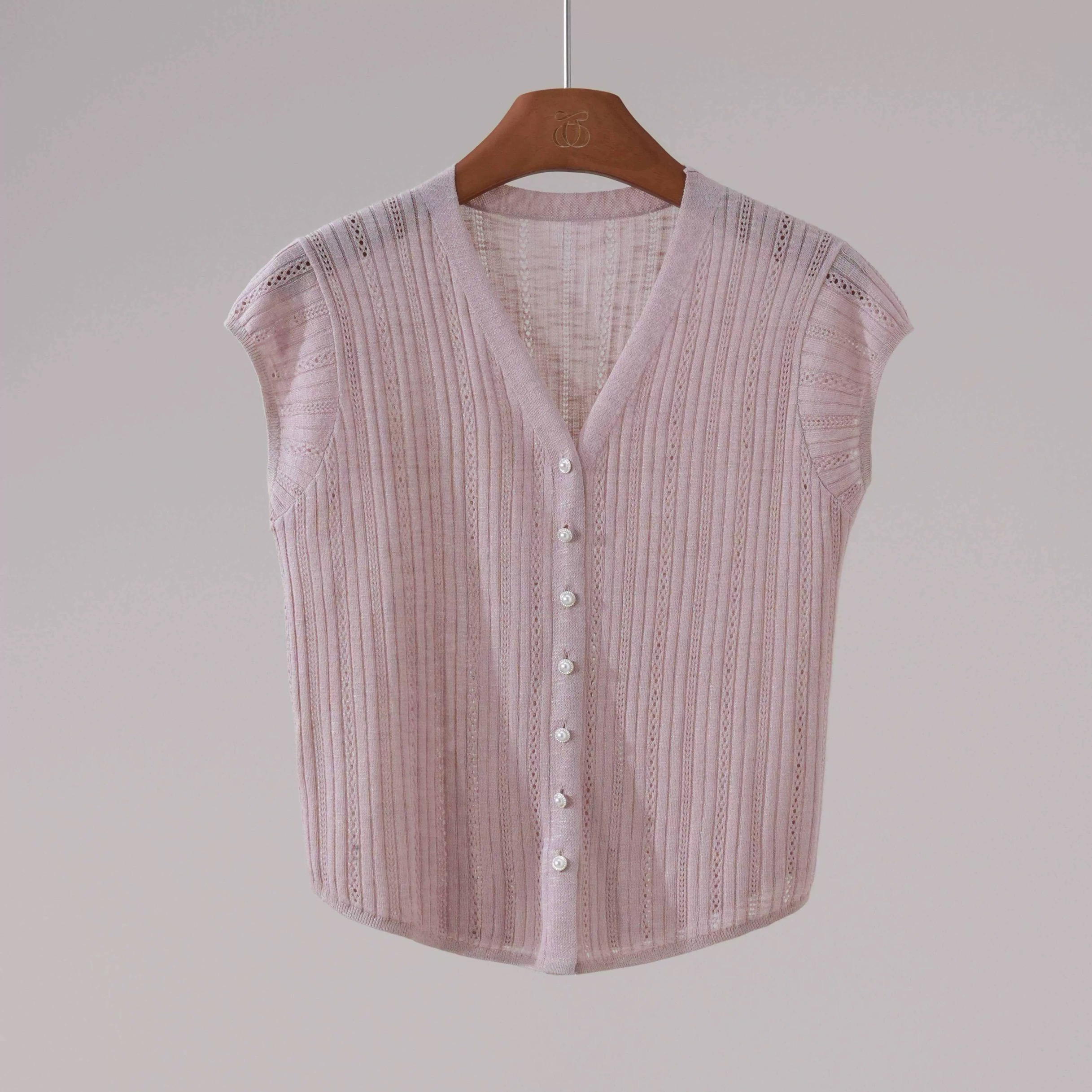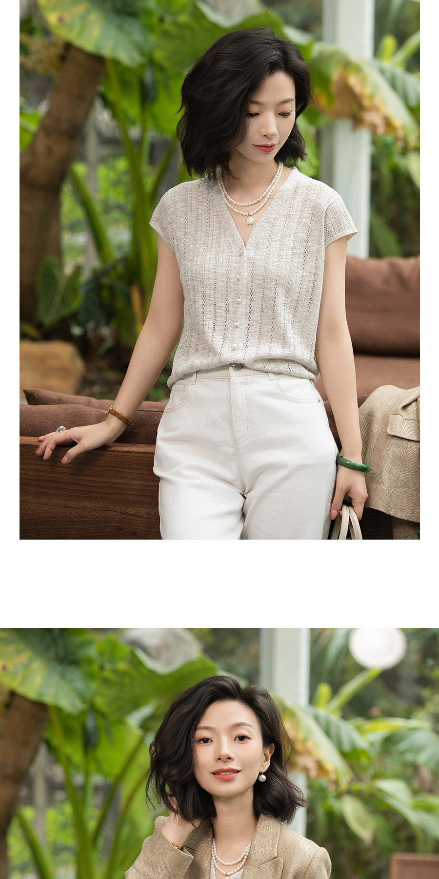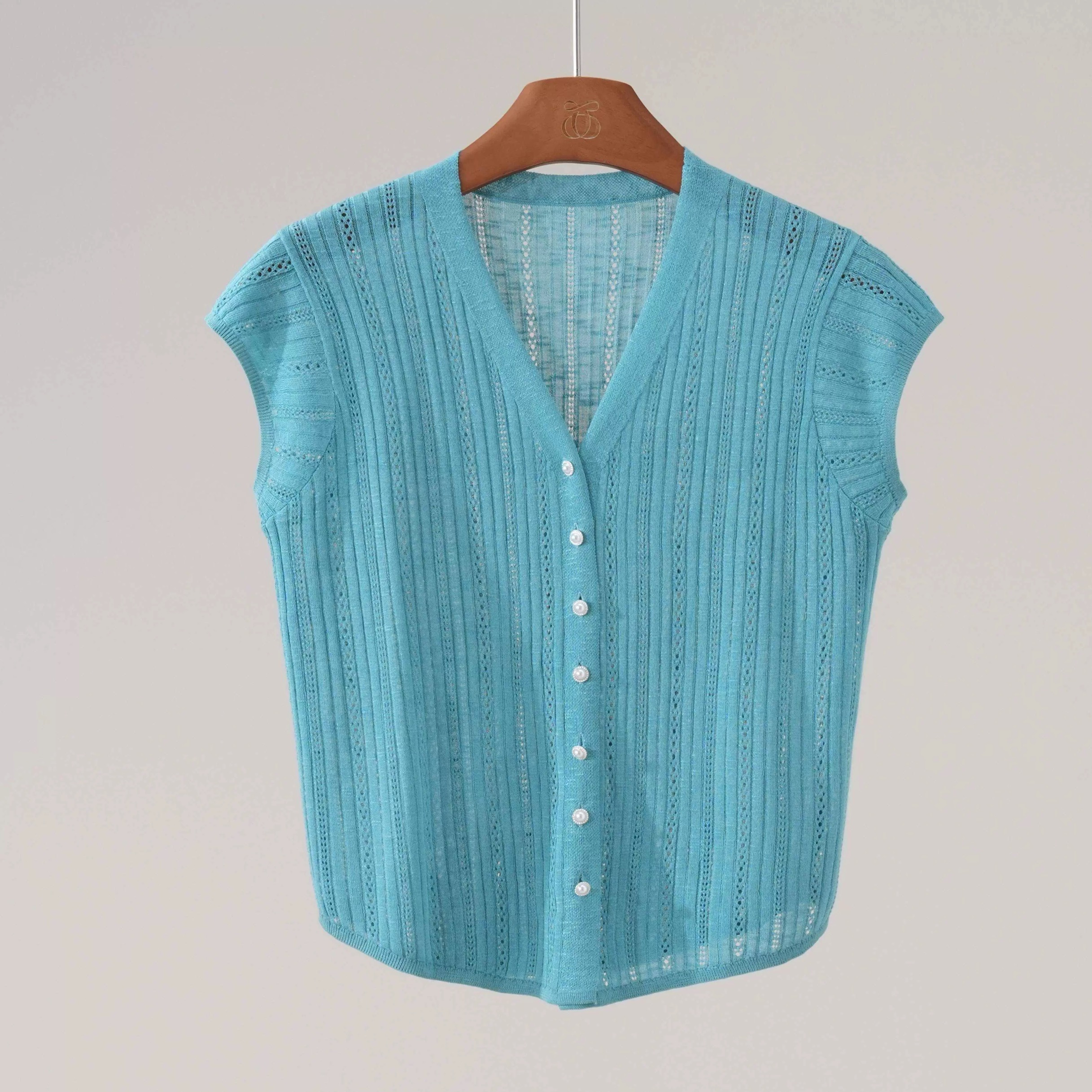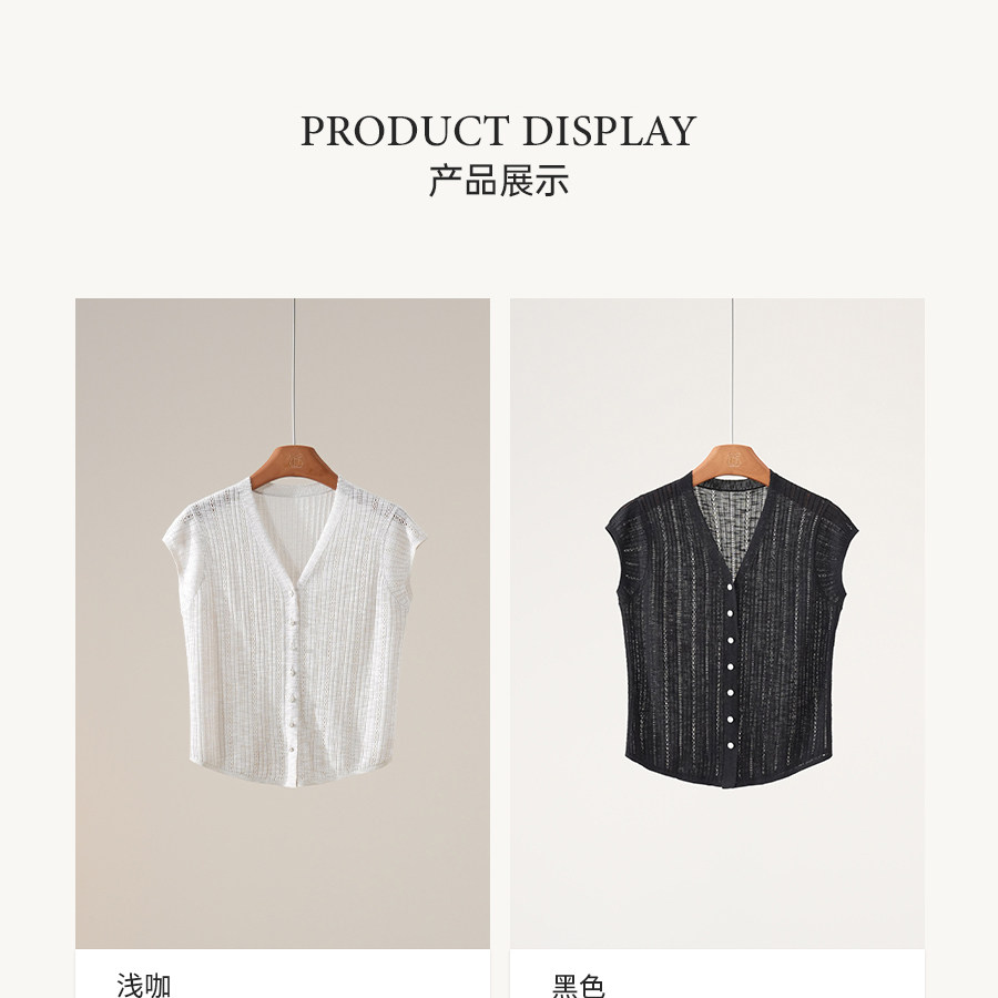뽕나무 누에 실크 유럽 오간자 얇은 스타일 베스트 조끼 여성 여름 2026 스탠드 칼라 단추 레트로 새로운 중식 민소매 맨위