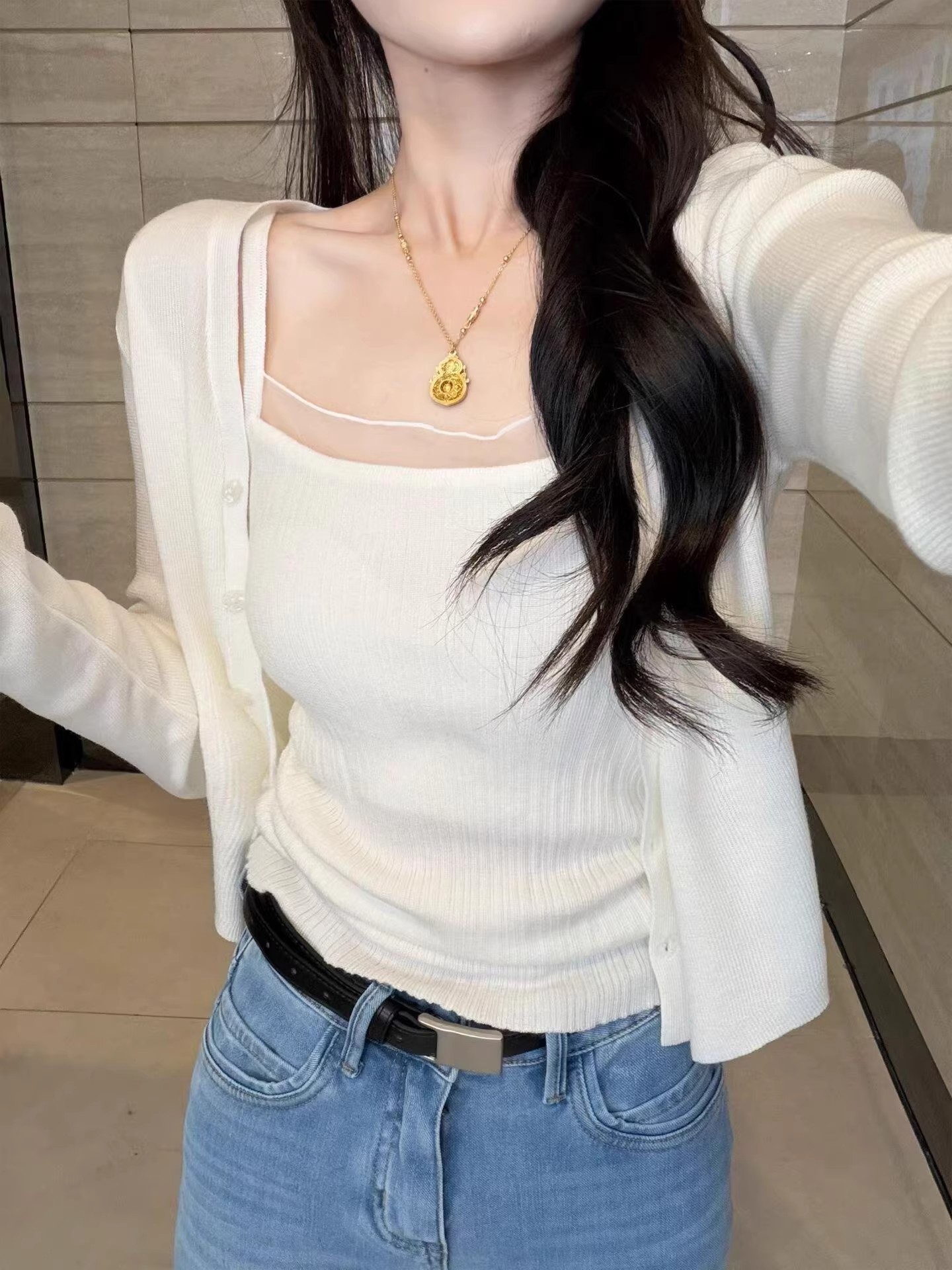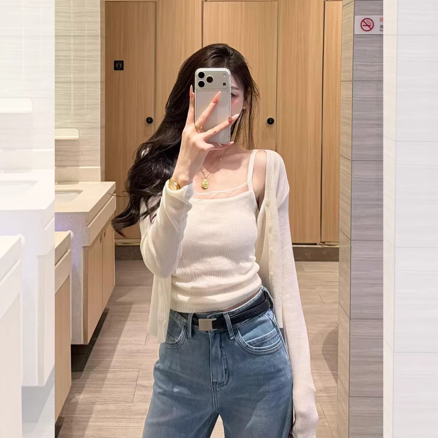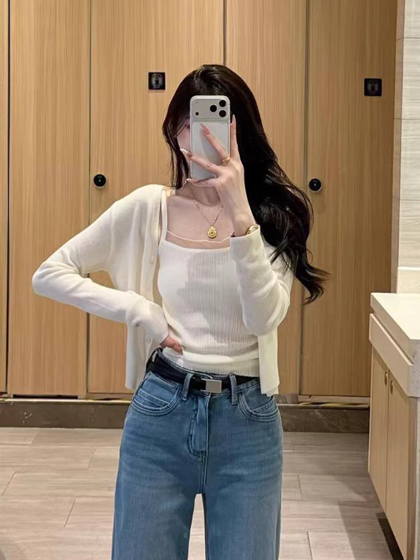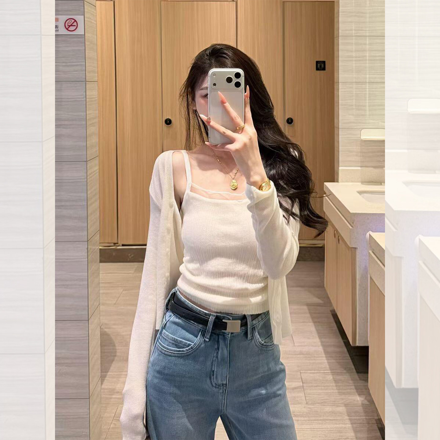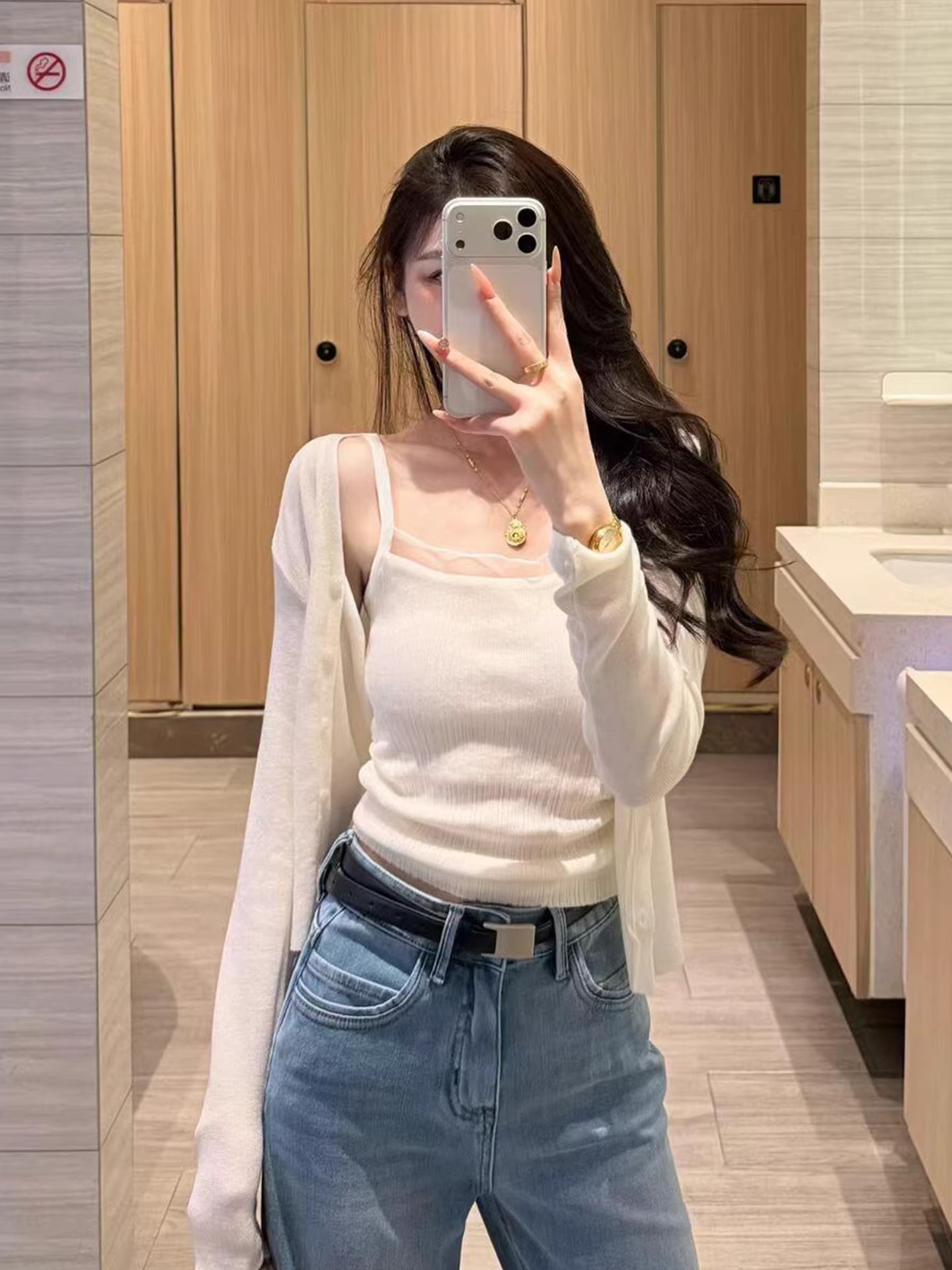 화이트 V넥 레이스 측면 길이 소매 여성 2026 봄 여름 새로운 우아함 바람 패션 품격 고급 센스 맨위