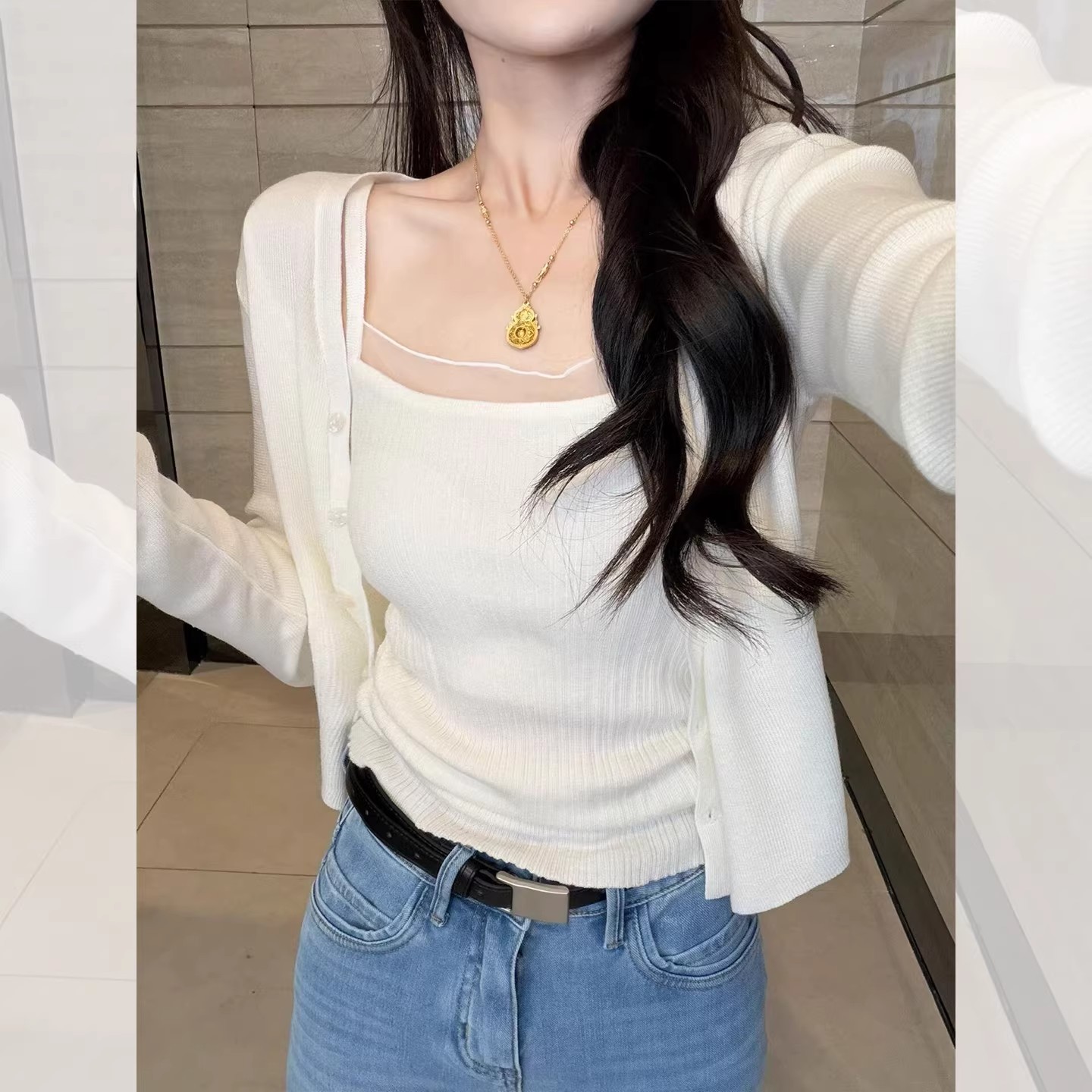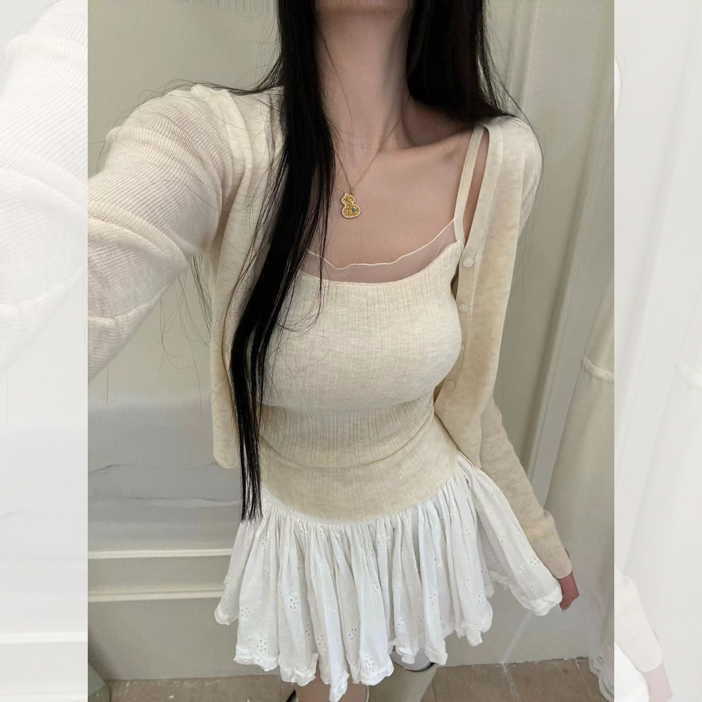 고급 센스 초여름 새로운 한 부서 디자인 센스 작은 대중 패션 품격 여성 의류 고유 한 아름다운 슈퍼 잘 생긴 맨위 여성