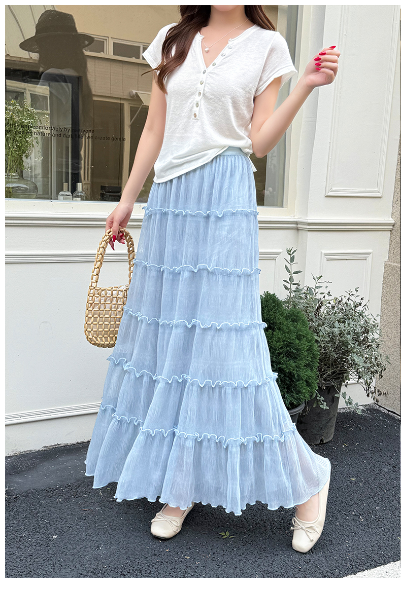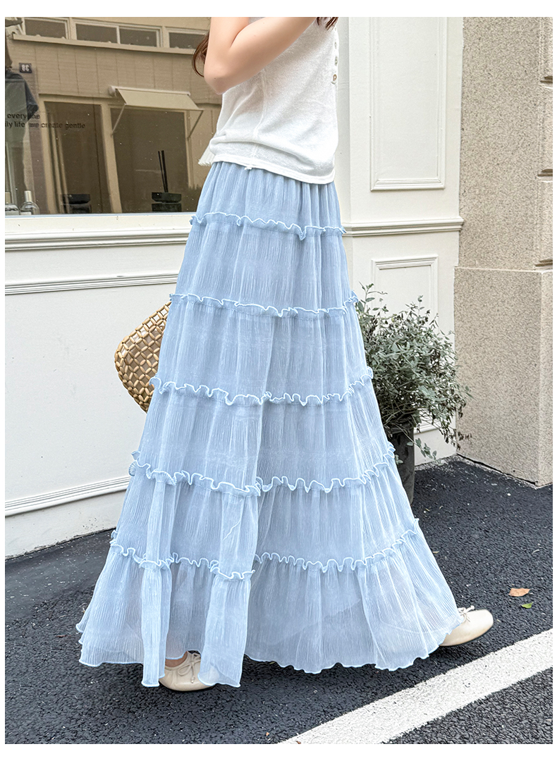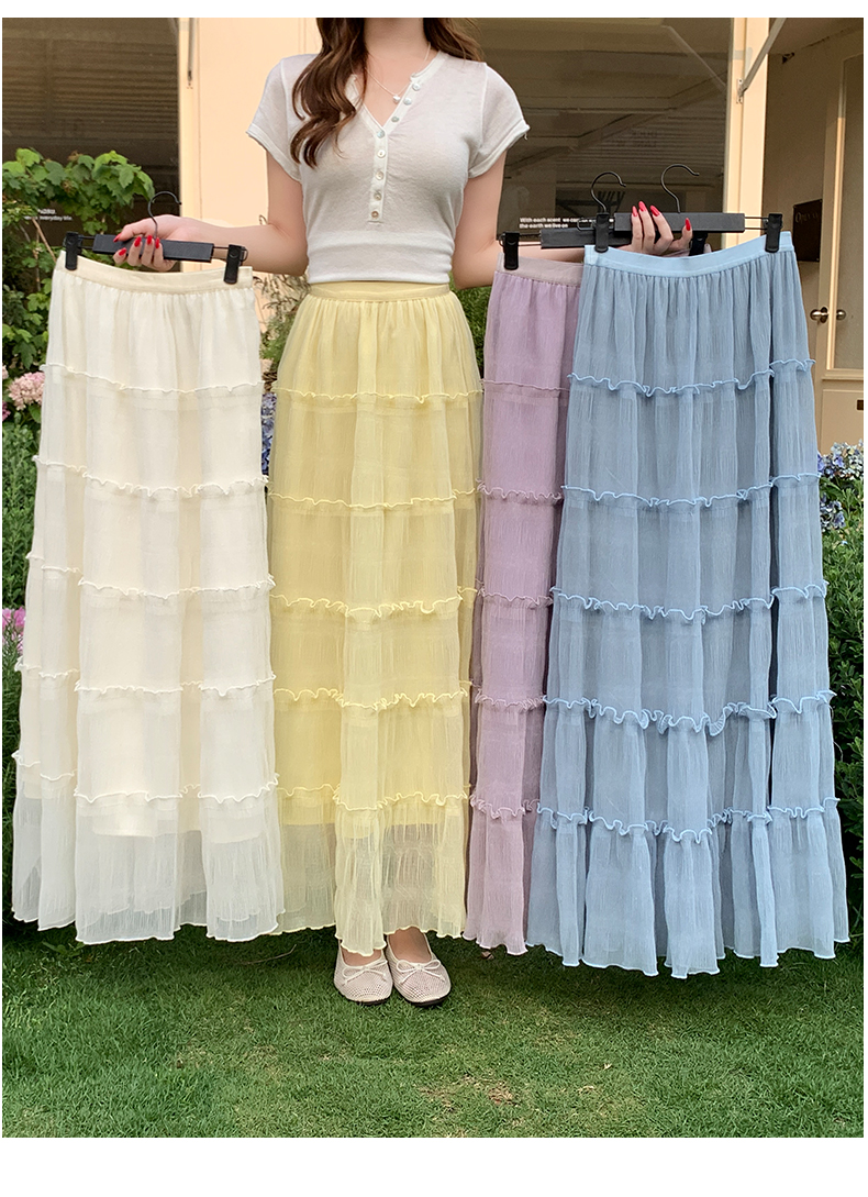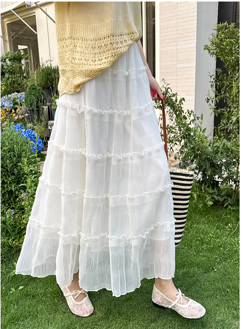 실사 낭만주의 바람 다중 레이어 프릴 케이크 반신 스커트 여성 하이웨이스트 슬림해 보이는 도루 센스 한 마디 큰 진자 슈퍼 요정 롱 스커트