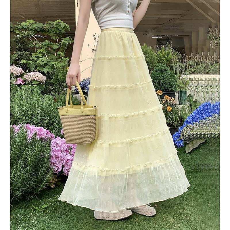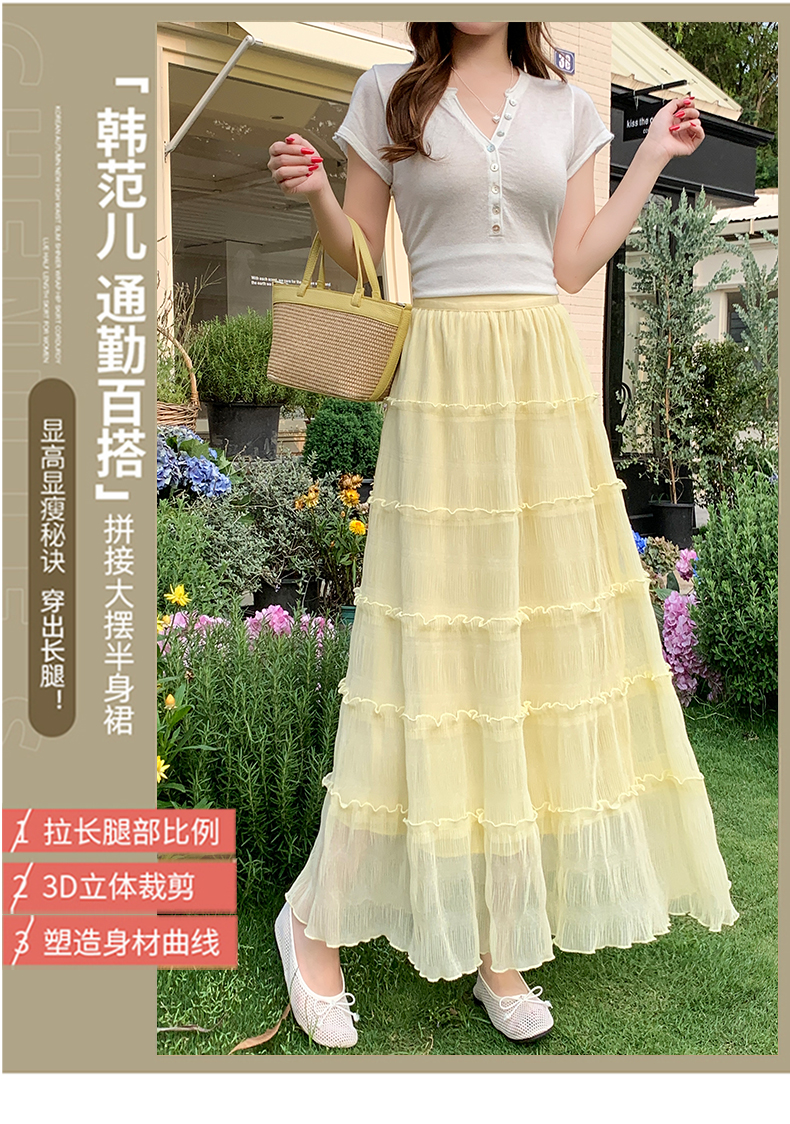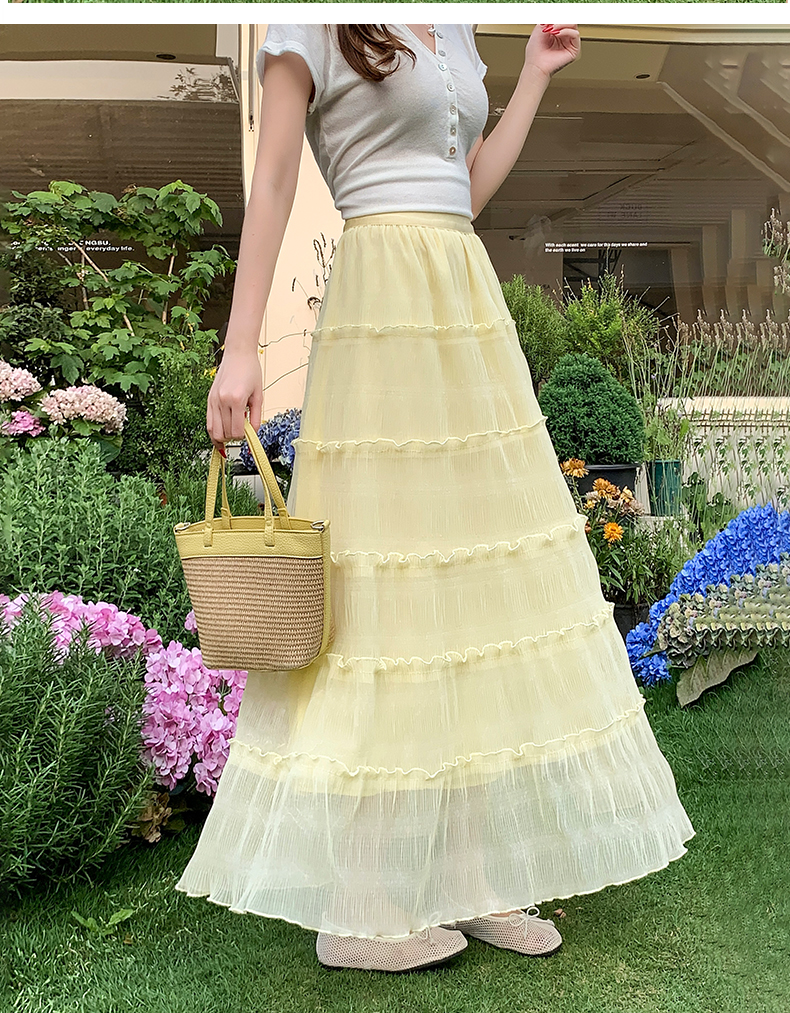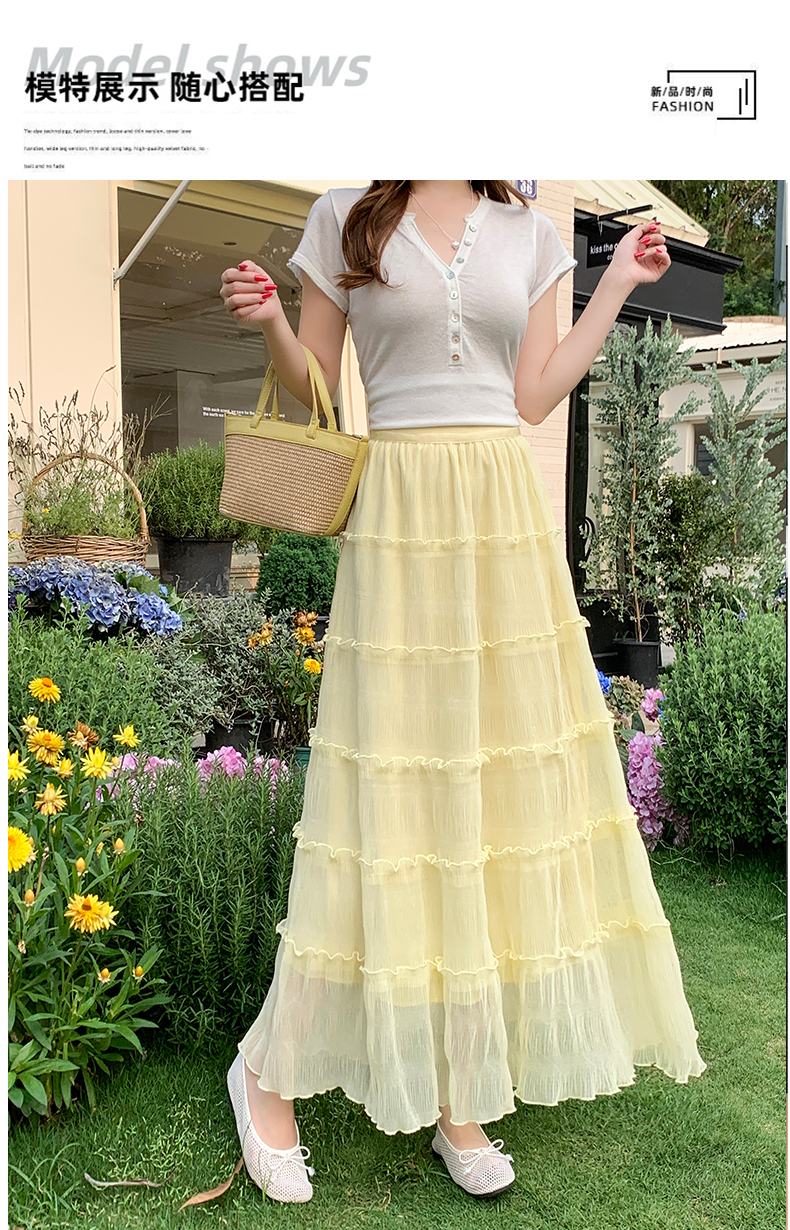 실사 낭만주의 바람 다중 레이어 프릴 케이크 반신 스커트 여성 하이웨이스트 슬림해 보이는 도루 센스 한 마디 큰 진자 슈퍼 요정 롱 스커트