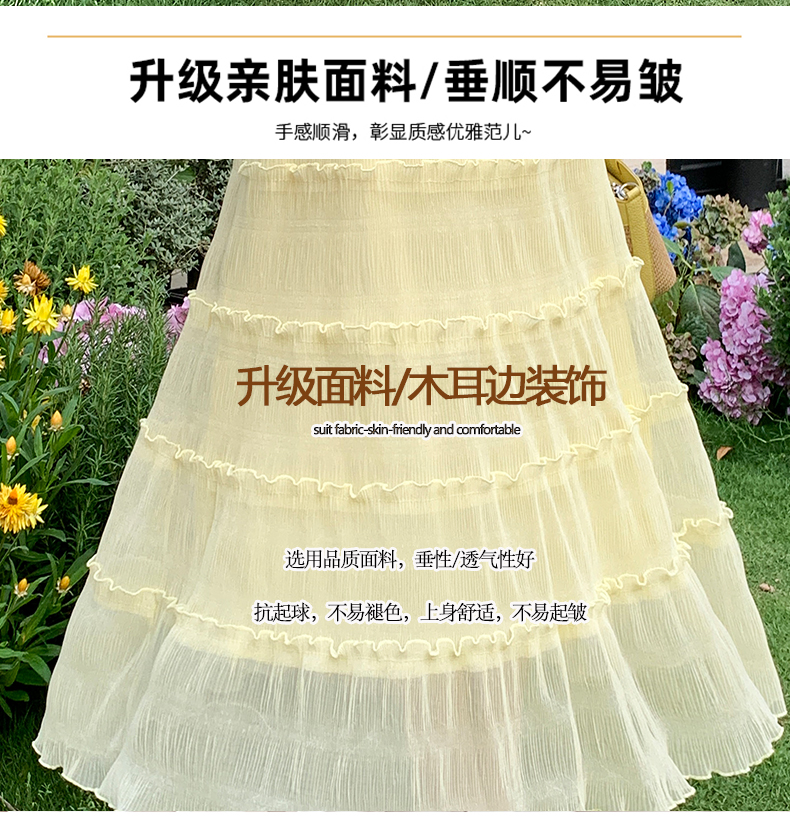 실사 높음 물품 레이스 조각 다시마 치마 한국 스타일 부드러운 품격 슬림해 보이는 중간 길이 거즈 스커트 슈퍼 요정 반신 스커트 여성
