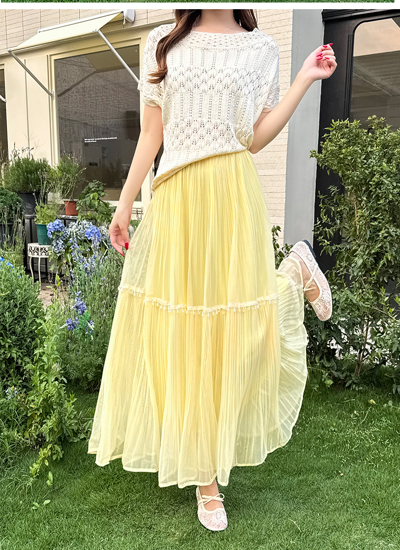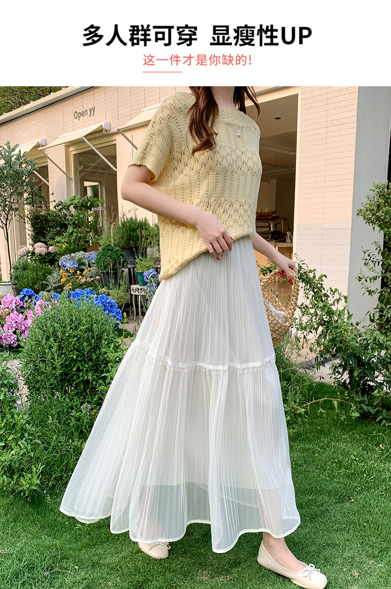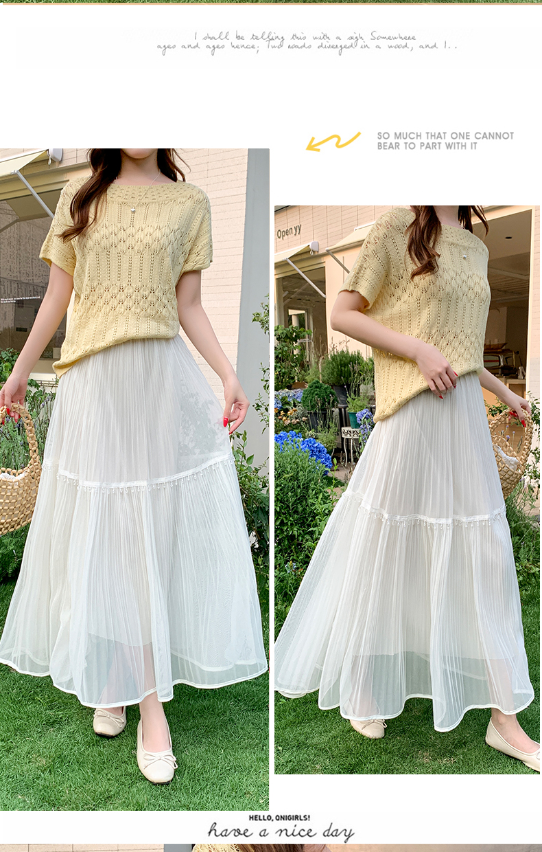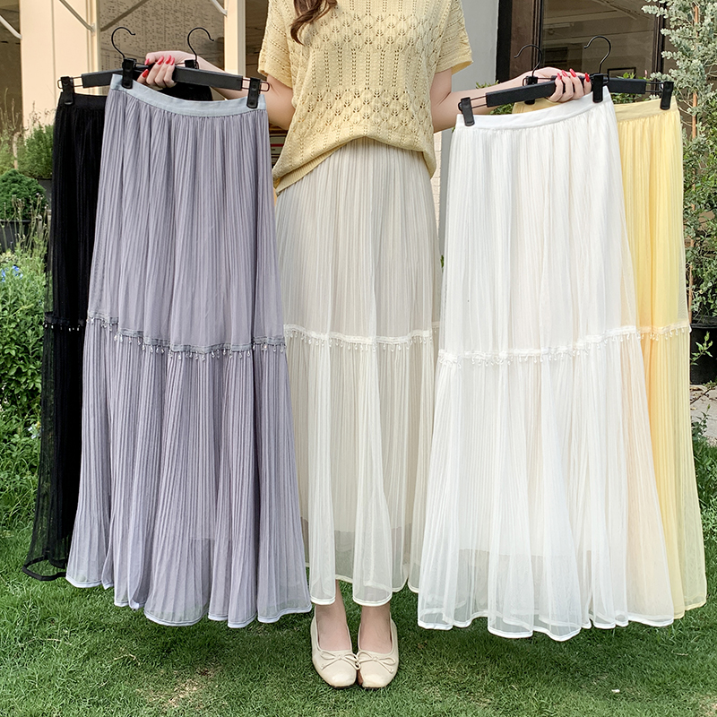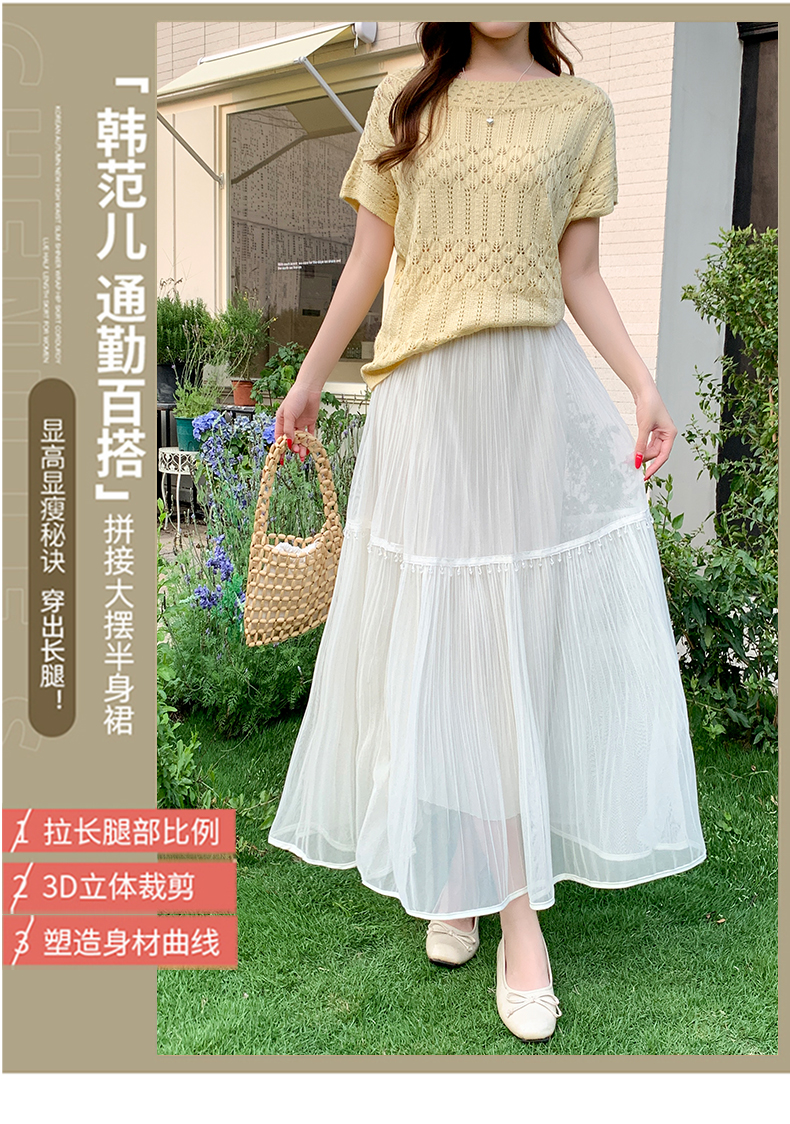 실사 높음 물품 레이스 조각 다시마 치마 한국 스타일 부드러운 품격 슬림해 보이는 중간 길이 거즈 스커트 슈퍼 요정 반신 스커트 여성