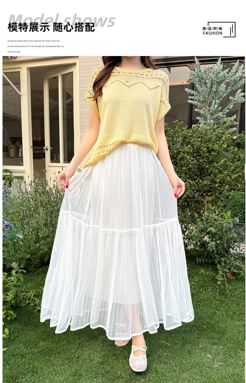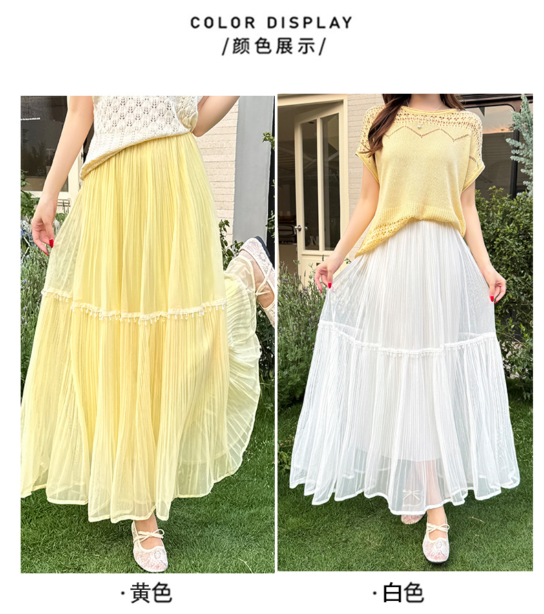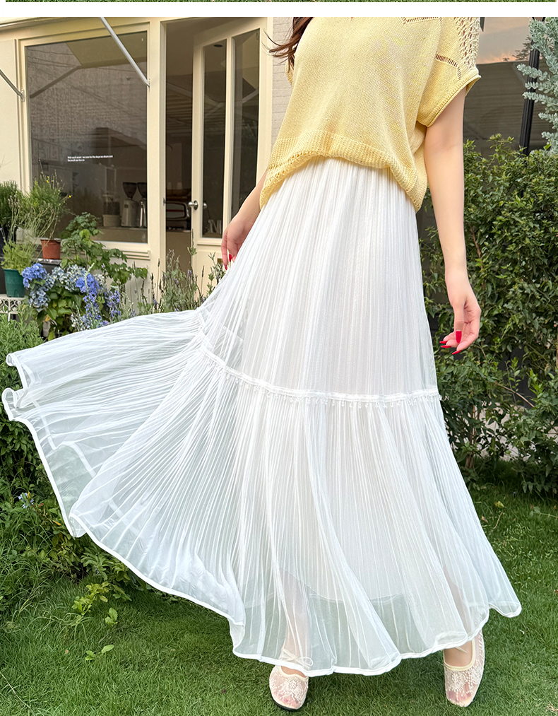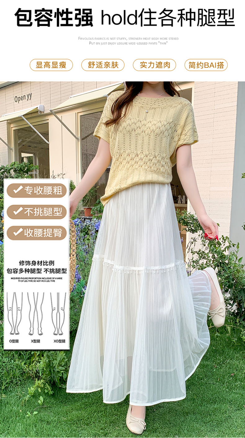 실사 프랑스식 고급 센스 망사 치마 중간 길이 여성 2026 새로운 느슨함 센스 하이웨이스트 한 마디 플리츠 반신 스커트