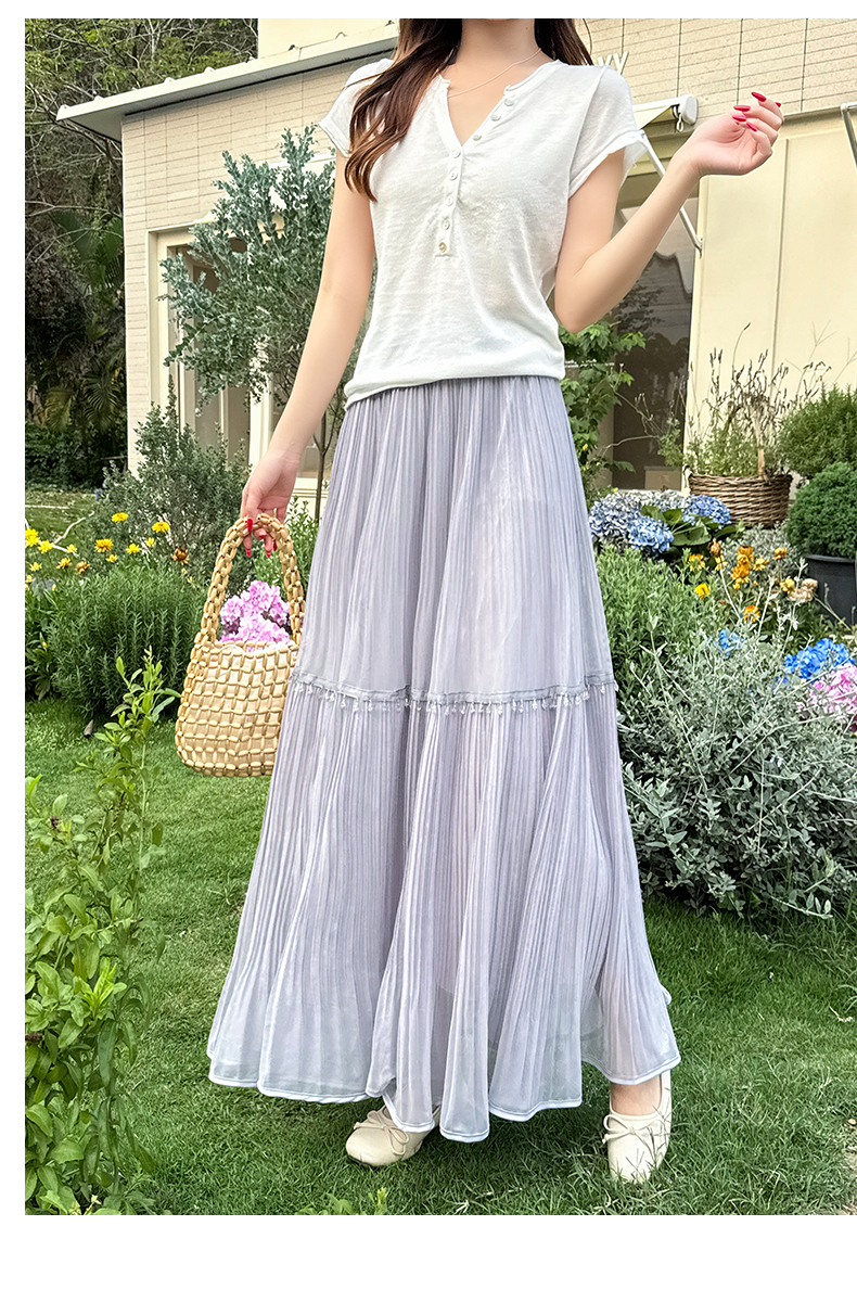 실사 자이언트 잘 생긴 한 부서 플리츠 반신 스커트 여성 26 봄 여름 새로운 중간 길이 하이웨이스트 도루 센스 한 마디 빅 플레어 스커트