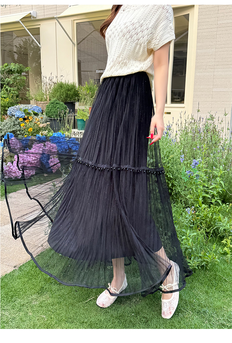 실사 빛 럭셔리 무거운 작업 비즈 박기 망사 반신 스커트 여성 봄 여름 새로운 하이웨이스트 고급 센스 품격 다용도 치마