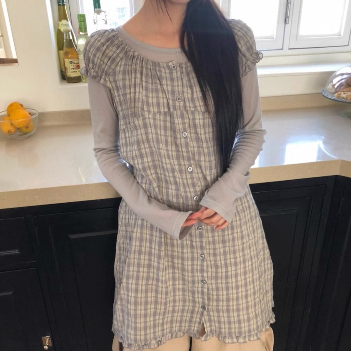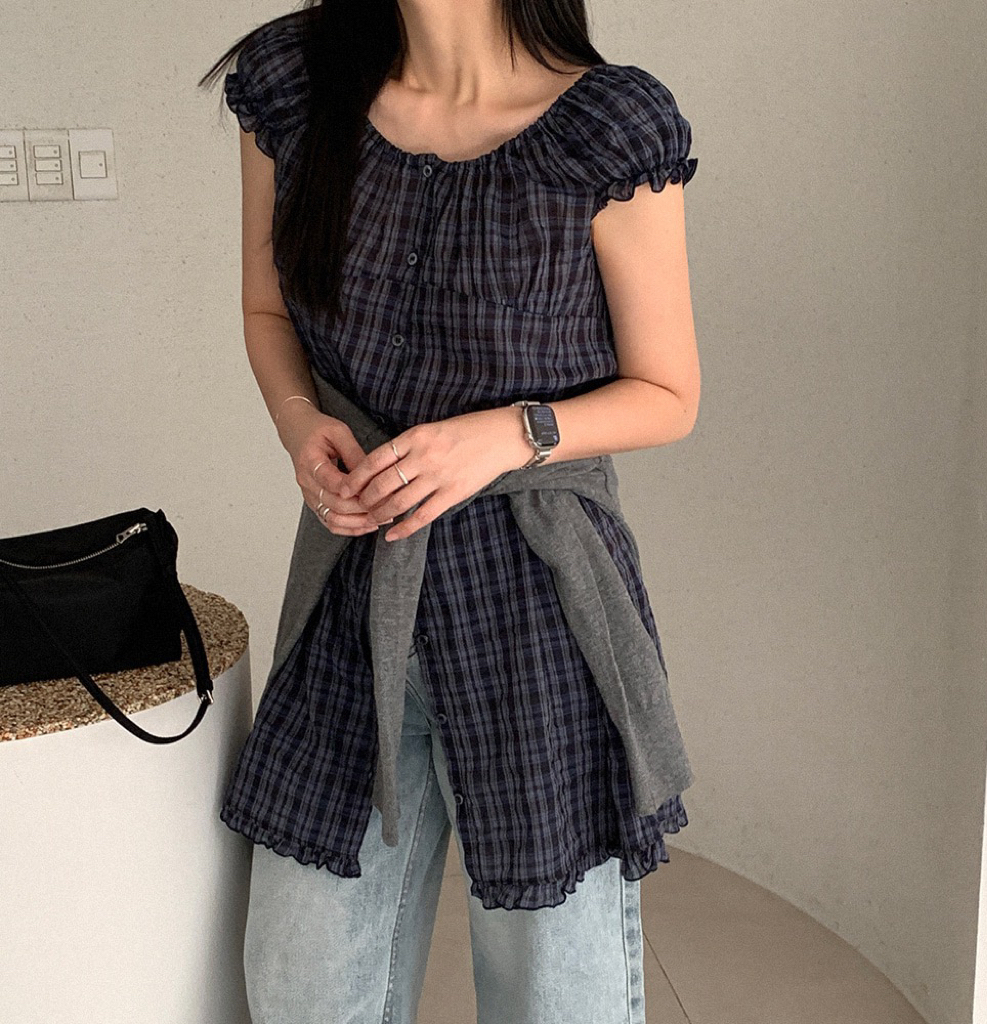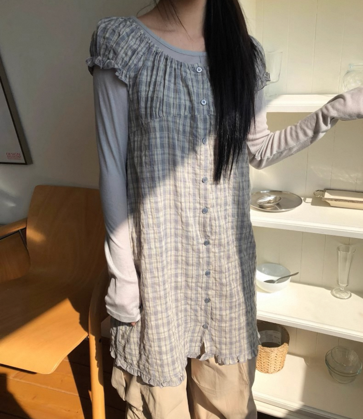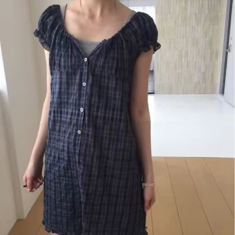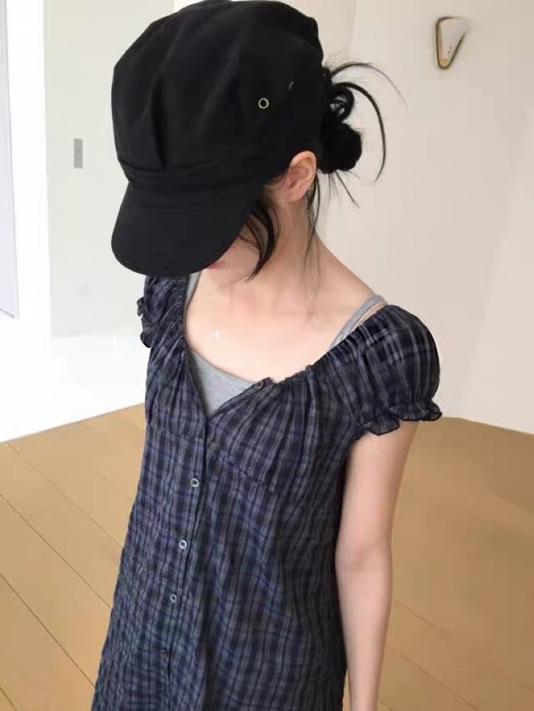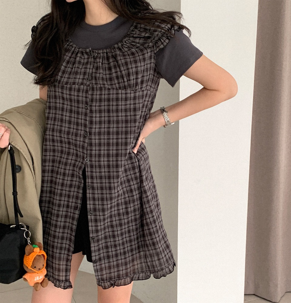 한국 동대문 2026 새로운 한 체크무늬 거품 소매 스택 착용 다용도 드레스 맨위 여성