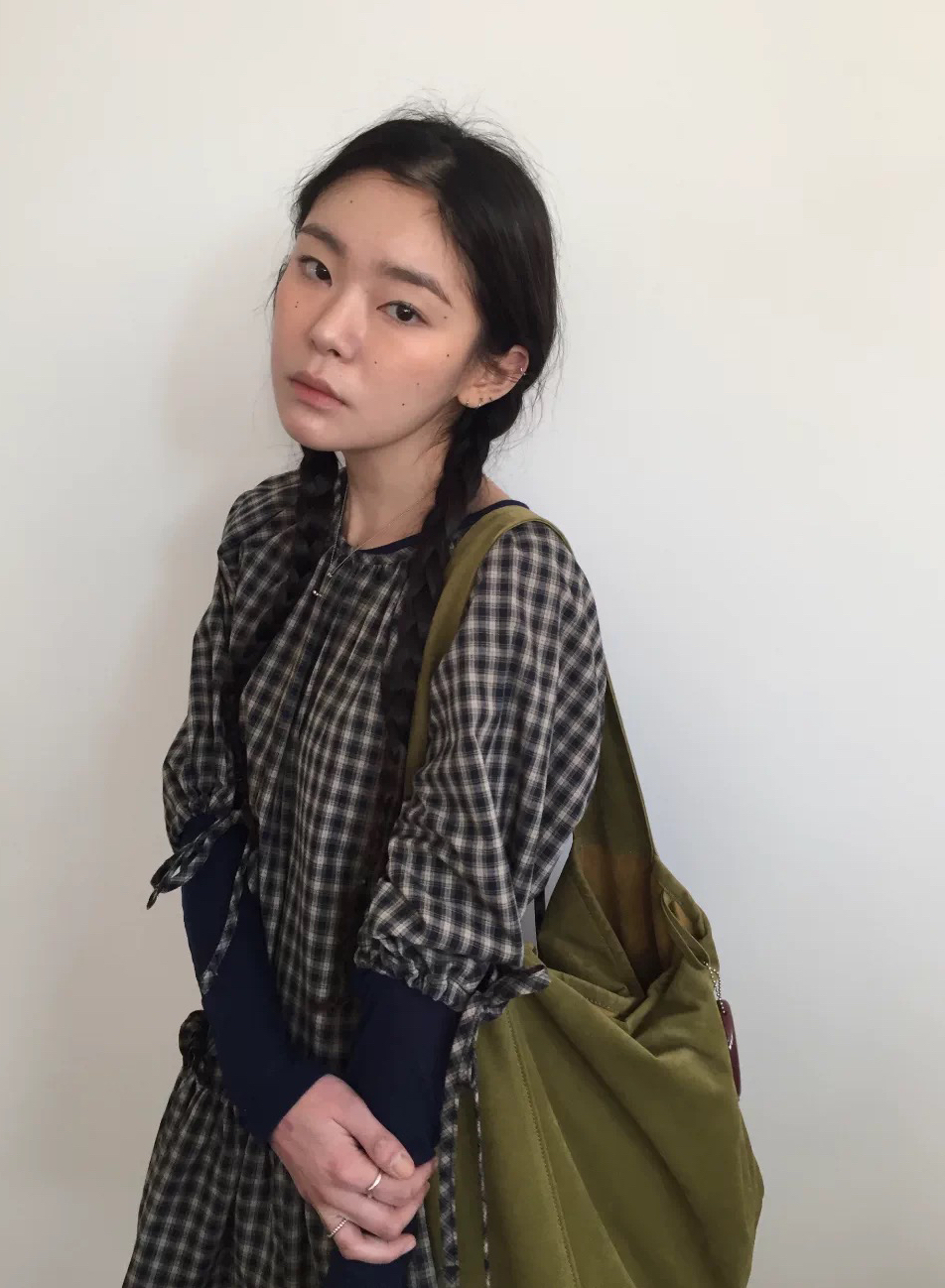 한국 동대문 2026 새로운 한국 스타일 불규칙 체크무늬 슬립 드레스