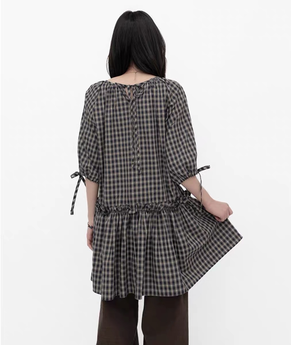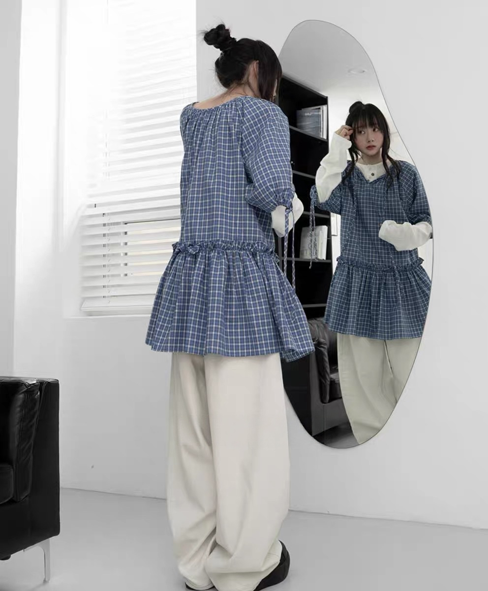 한국 동대문 2026 새로운 한 체크무늬 거품 소매 스택 착용 다용도 드레스 맨위 여성