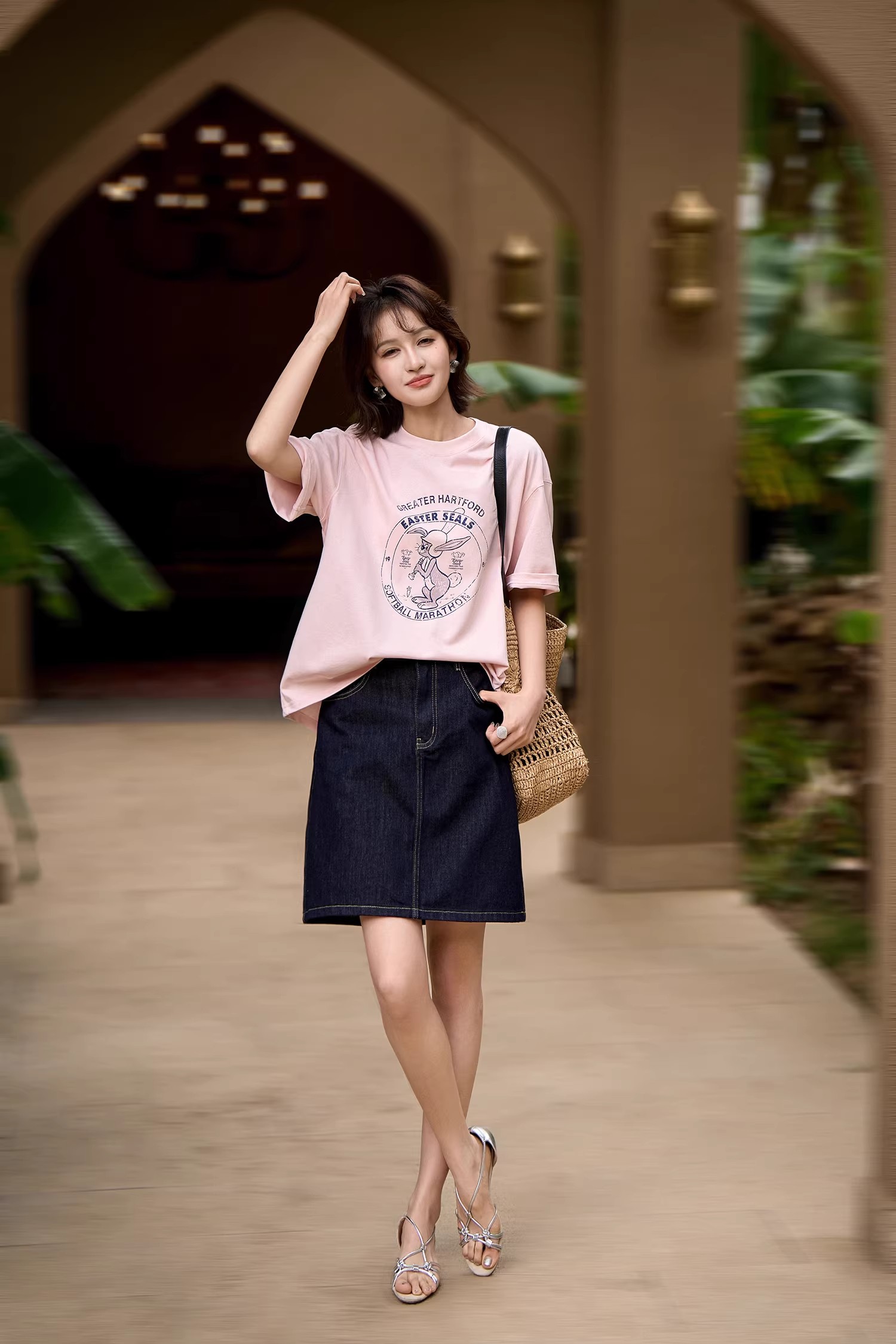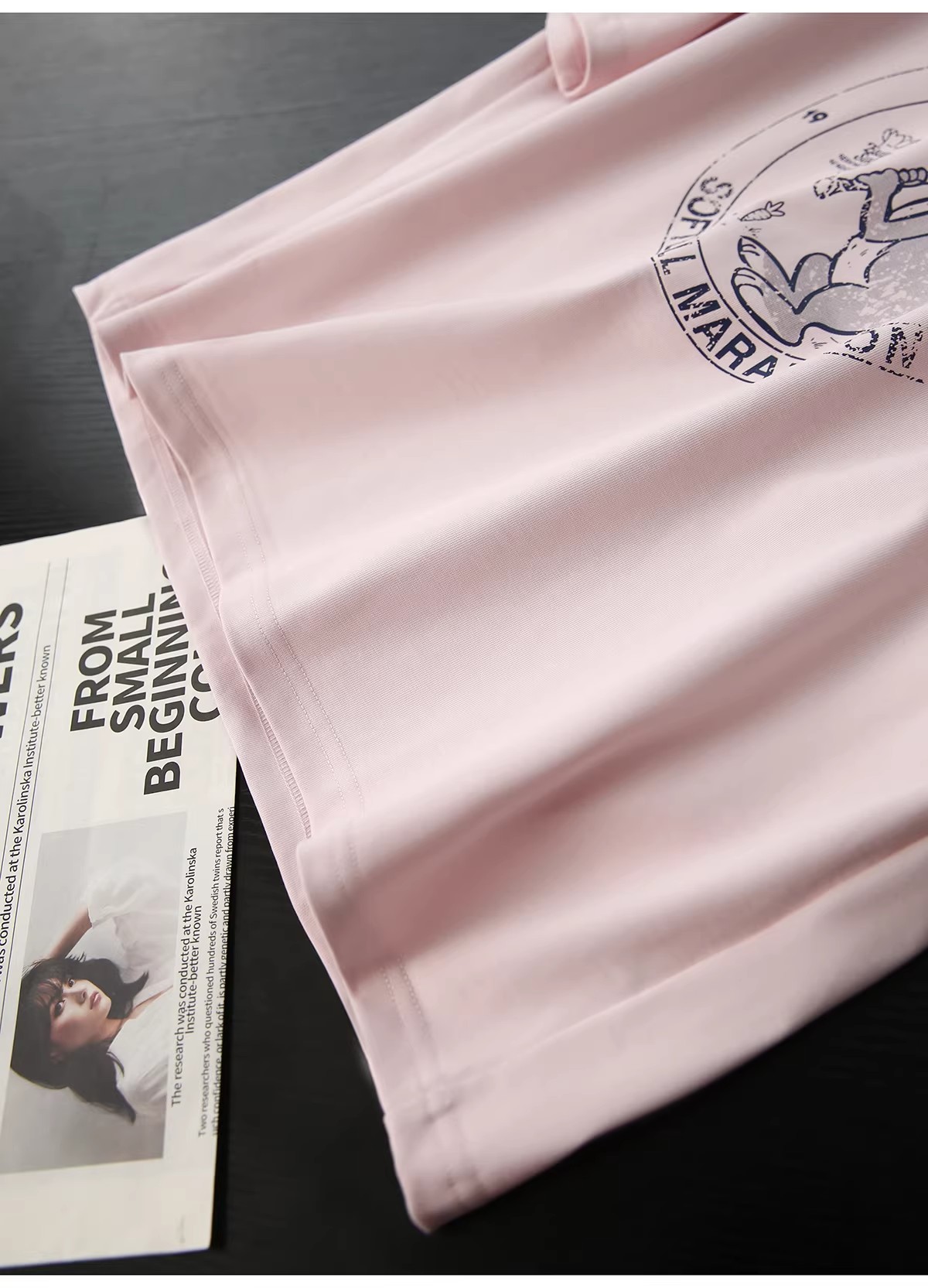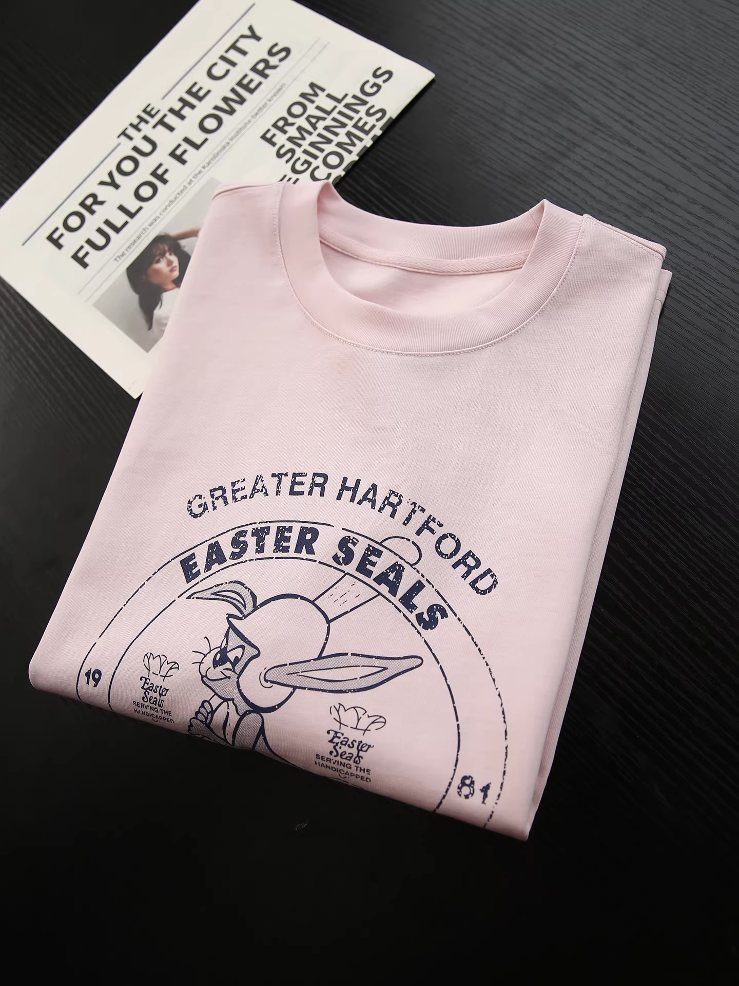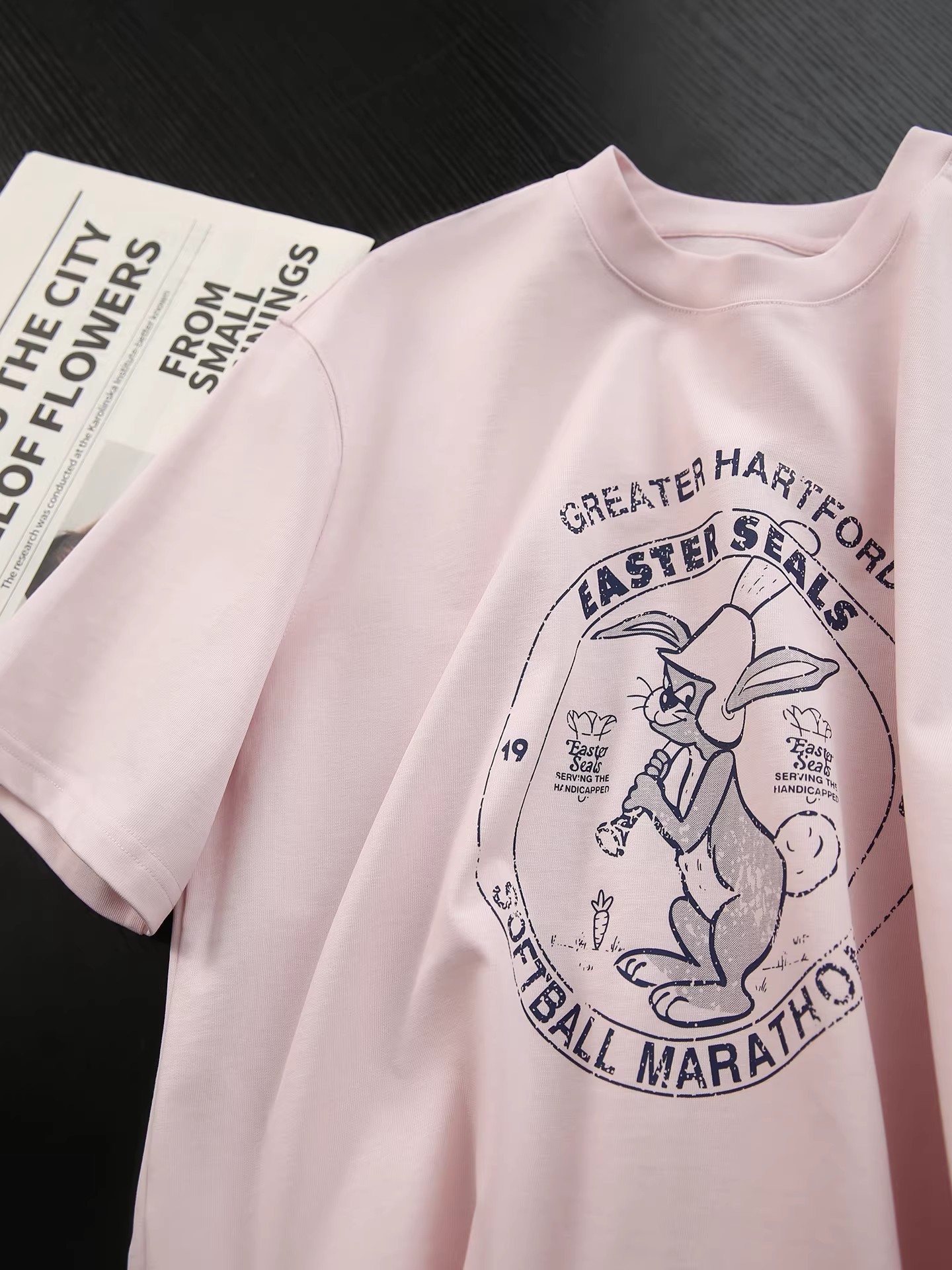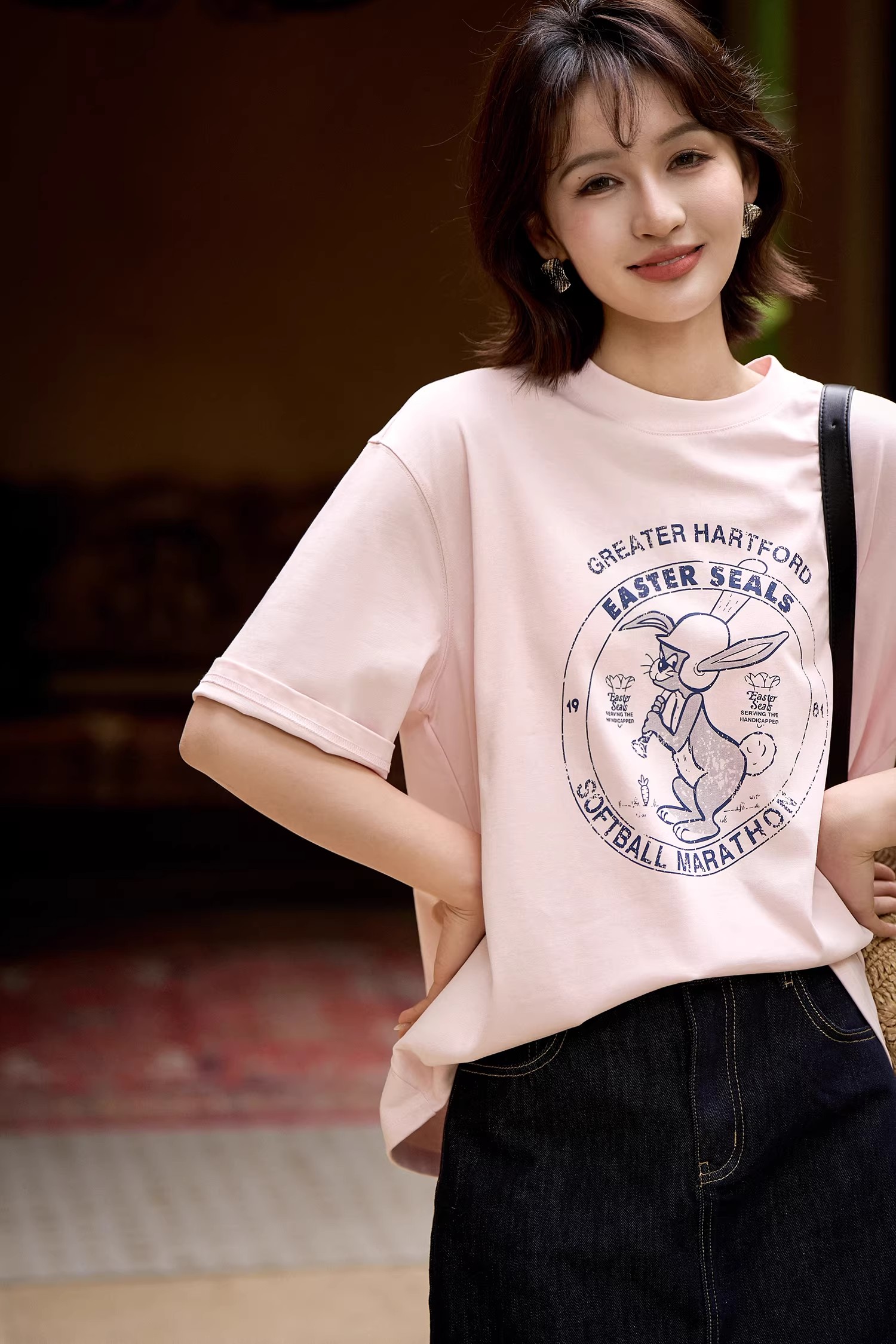 사쿠라 꽃가루 토끼 t 丨 레트로 토끼 프린트 루즈핏 활력 연령 감소 반팔 티셔츠 여성 26 새로운 웃음 한 법원