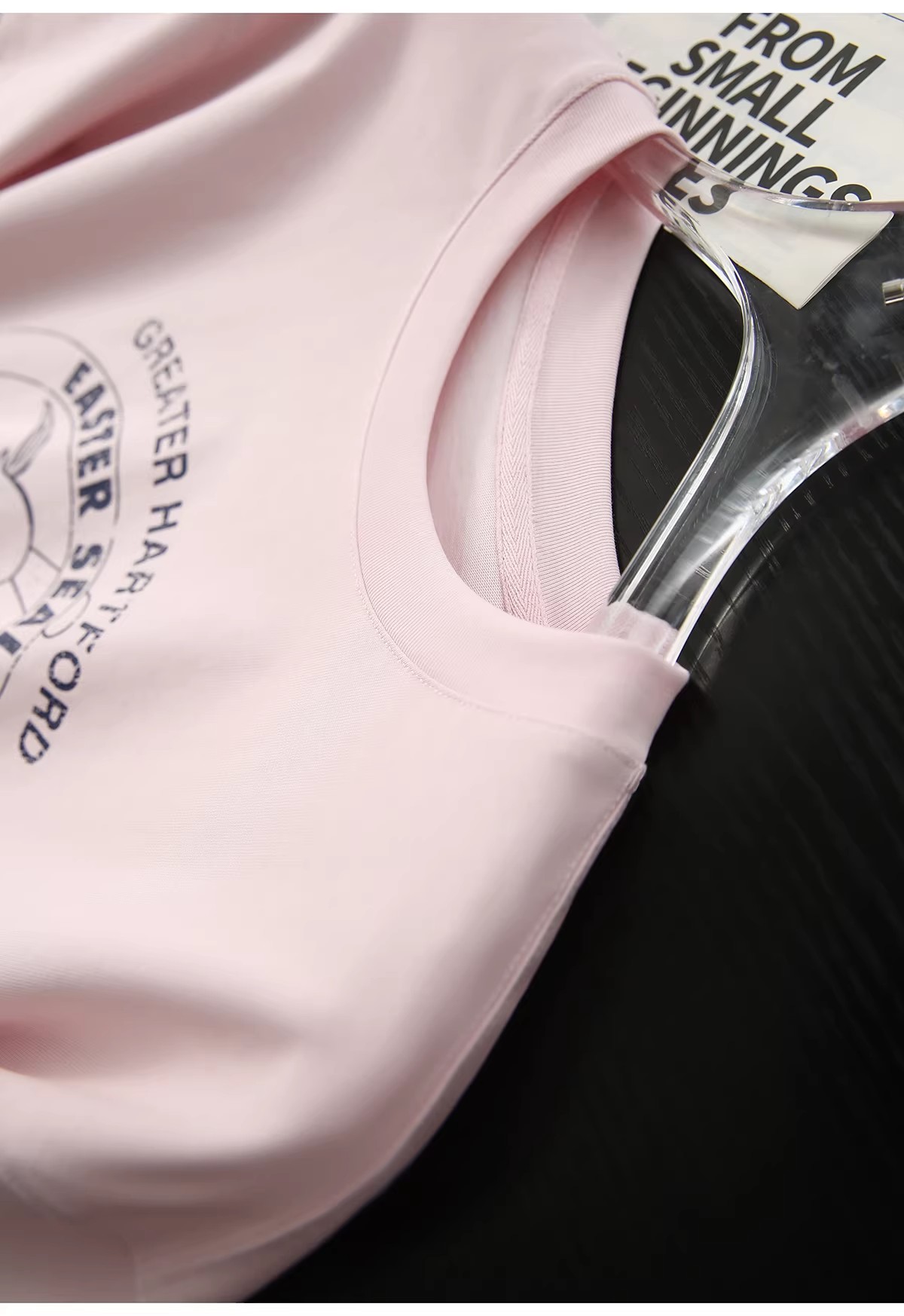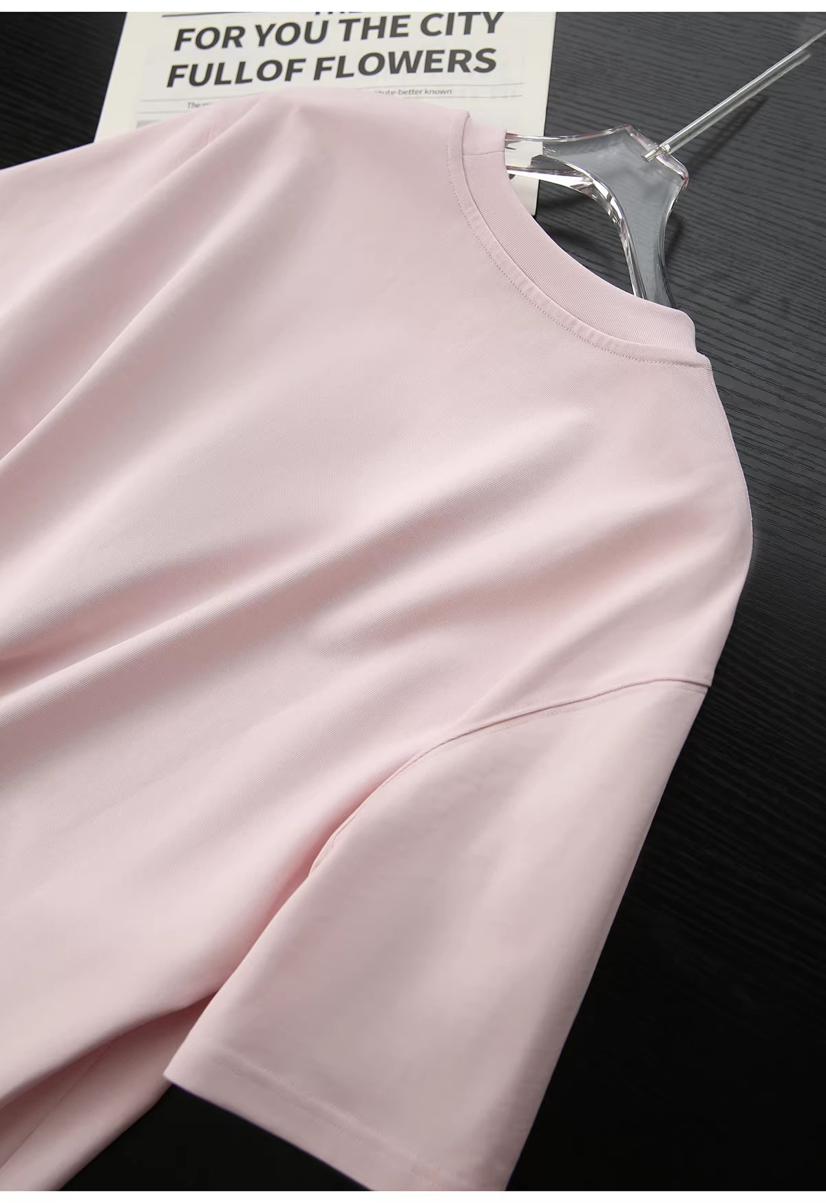 경관 그림 21 순면 210 그램 여름 드레스 한 부서 반팔 티셔츠 여성 한국 스타일 루즈핏 빅 사이즈 프린트