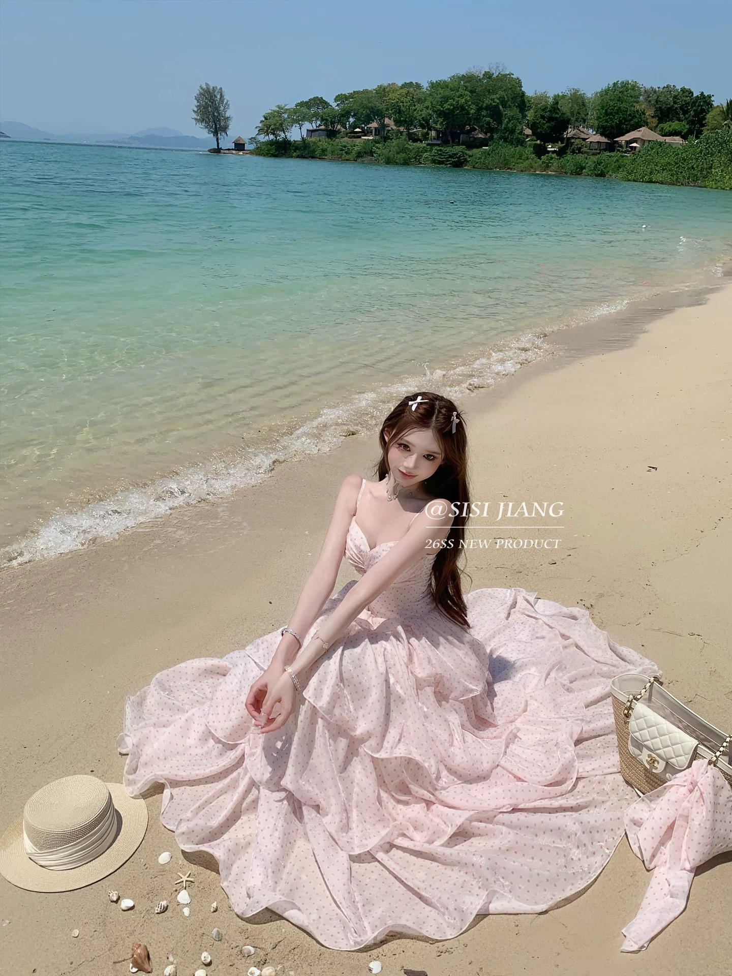 4 15 pm20 신제품 켜기 새로운 하나 달콤한 복숭아 yikett 슬립 꽃무늬 드레스