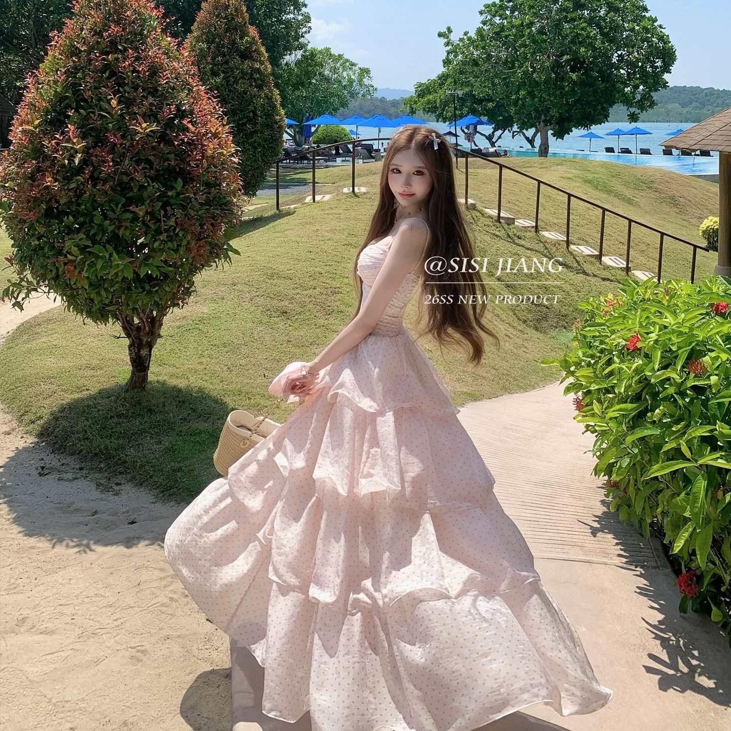 이른 봄 아름다운 여성 드레스 2026 새로운 민소매 패치워크 치마 화이트 조끼 스커트 여름