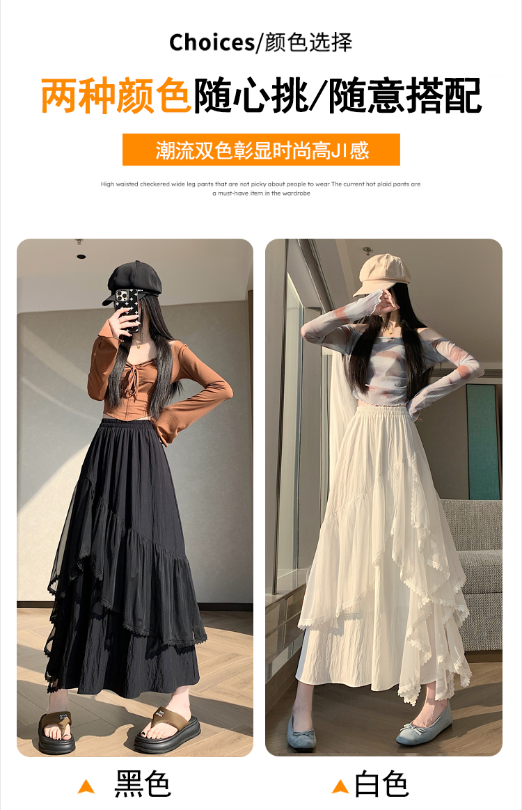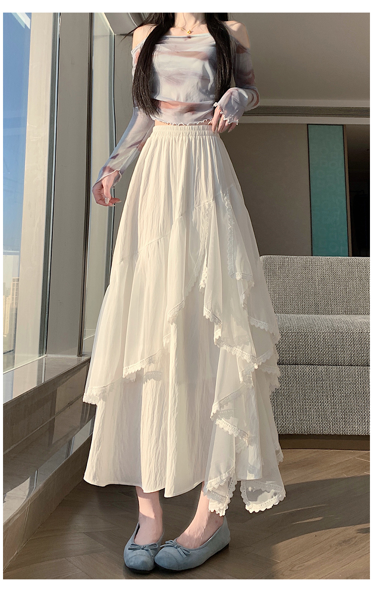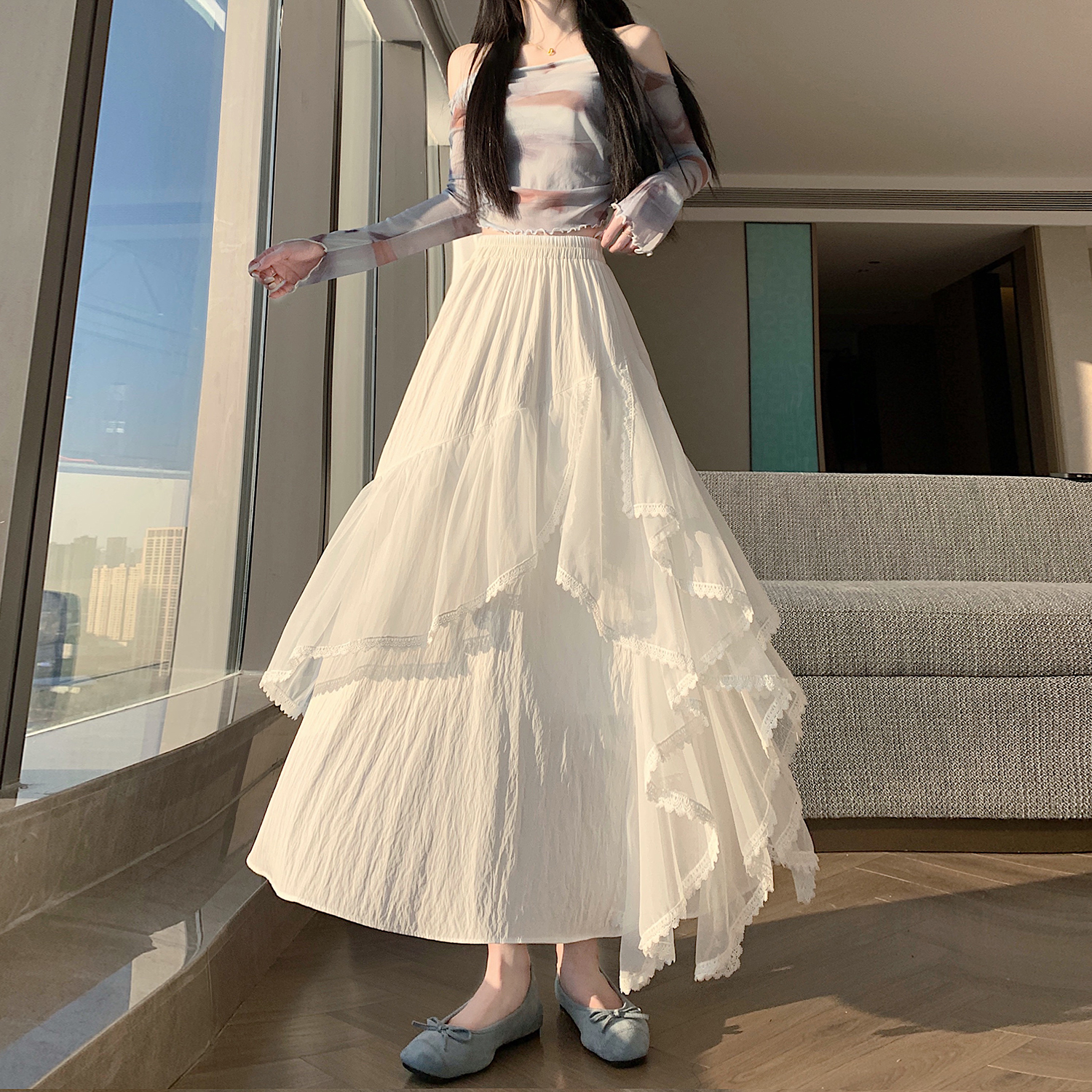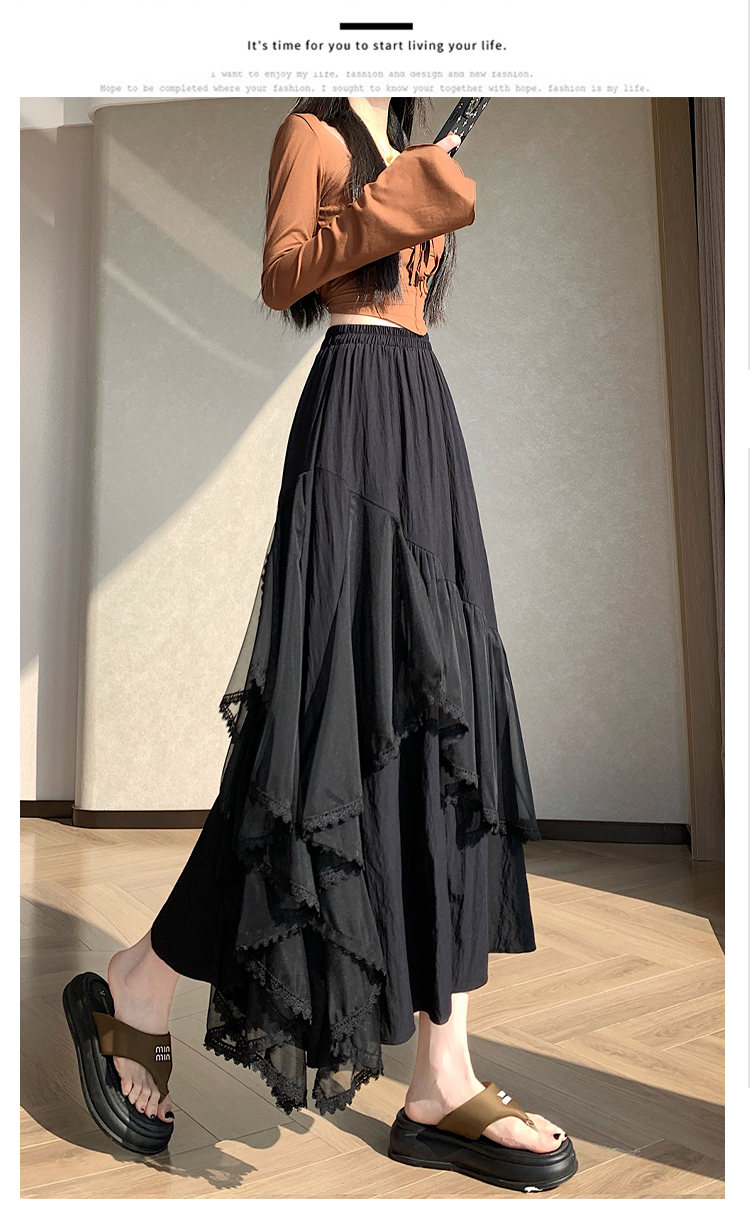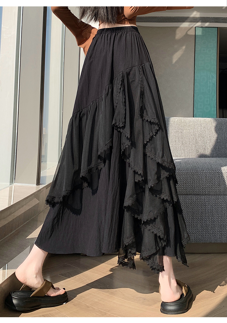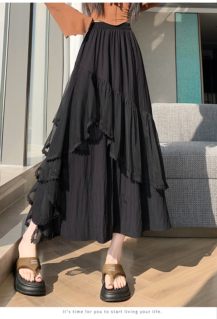 실사 불규칙 패치워크 프릴 반신 스커트 봄 여름 새로운 슬림해 보이는 다용도 레이스 케이크 롱 스커트 A라인 스커트